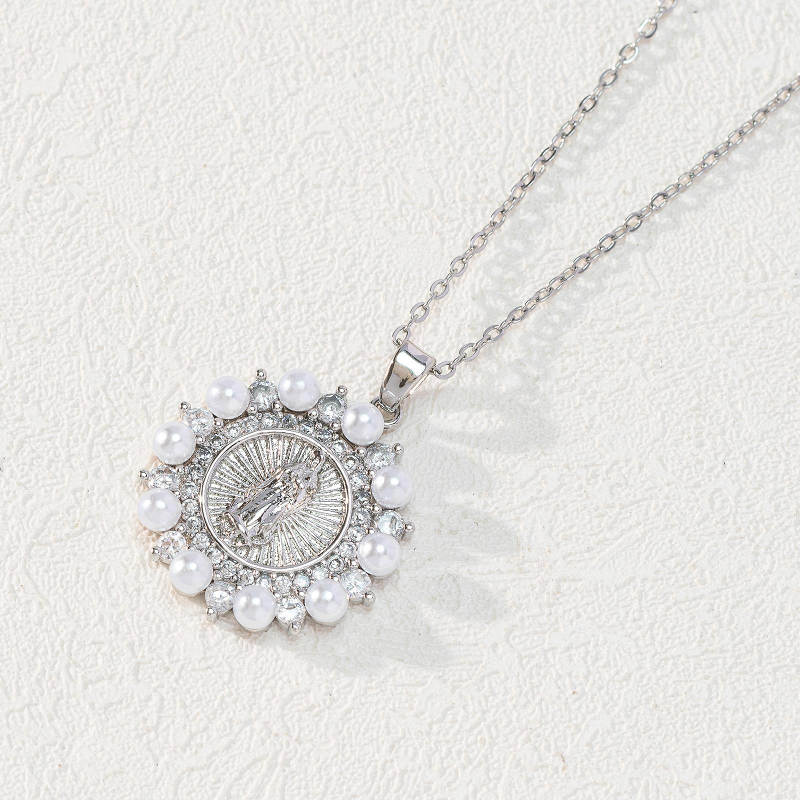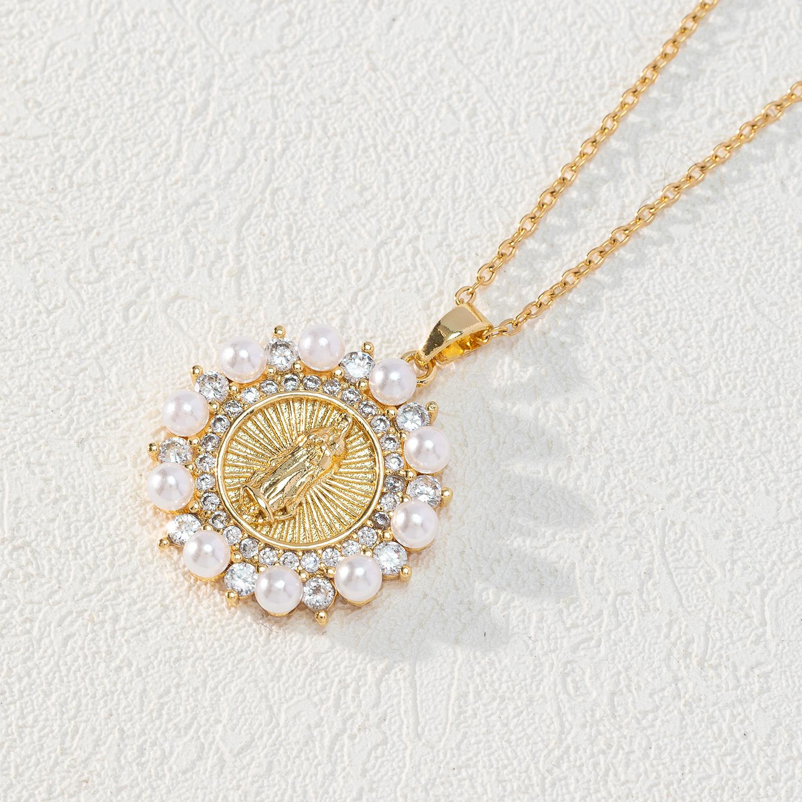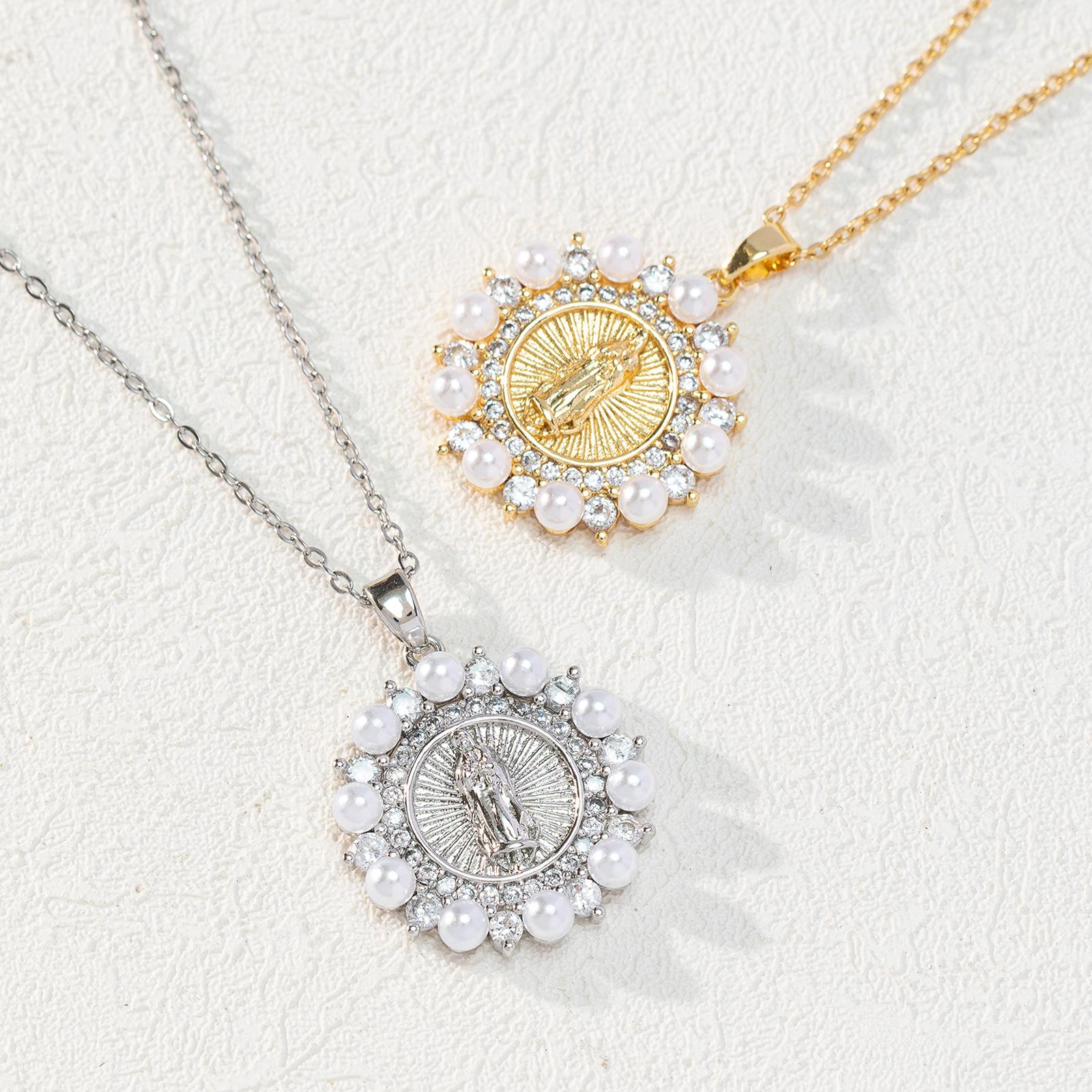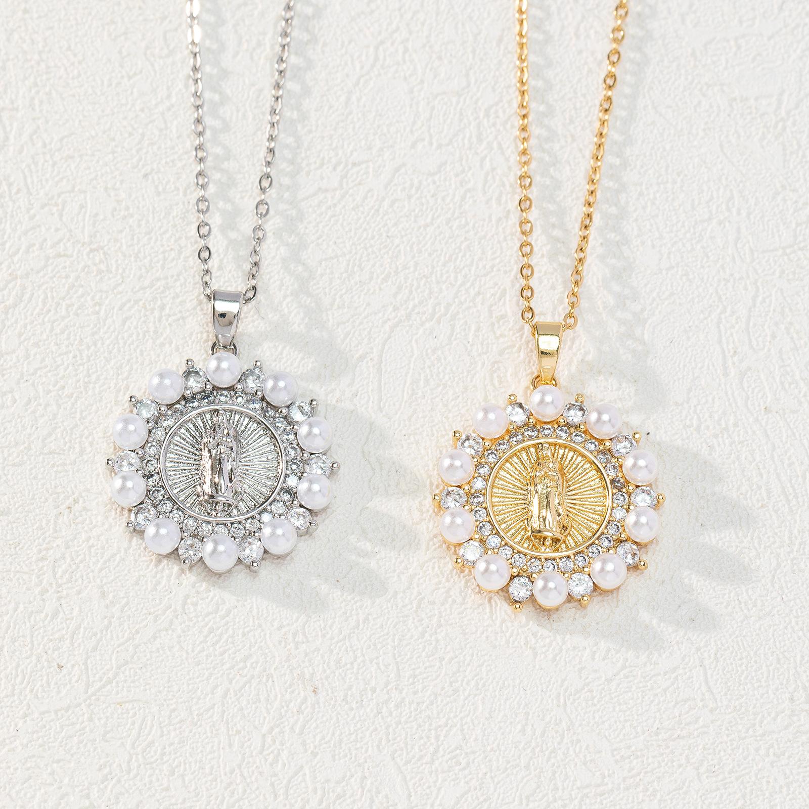 Nuevo colgante transfronterizo de cobre con microincrustaciones de circonita de Madonna, collar de lujo personalizado con luz de nicho, collar de estilo europeo y americano, cadena de clavícula