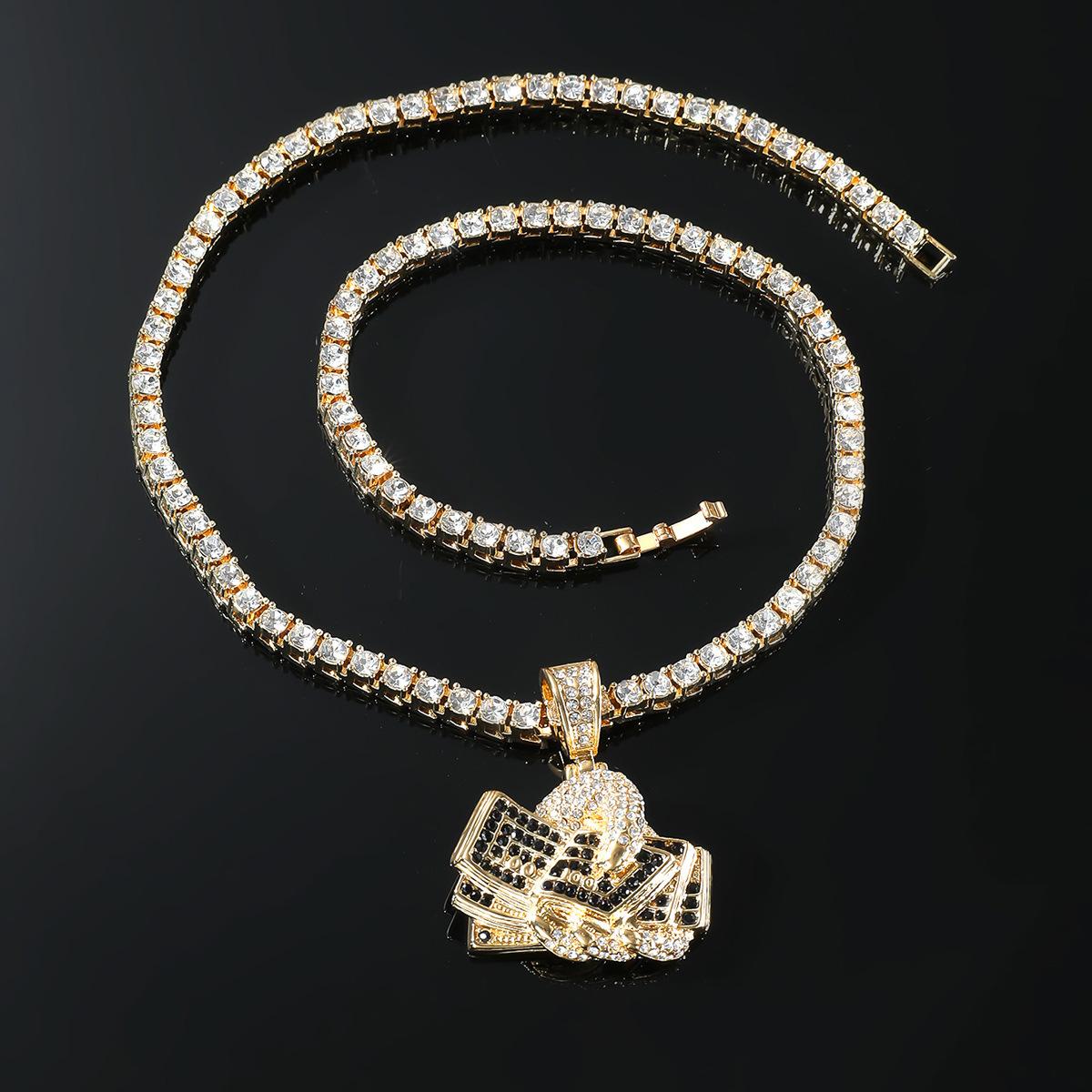 Nuevo collar con colgante de letras de diamantes de hip-hop transfronterizo europeo y americano, joyería exagerada con personalidad moderna de calle para hombres |