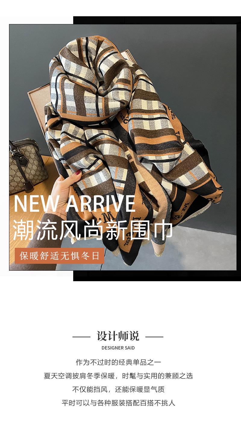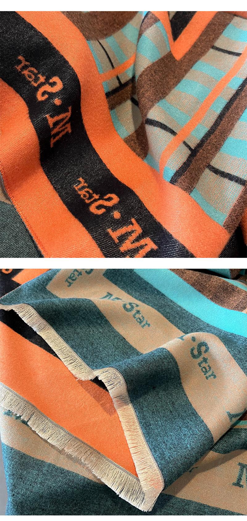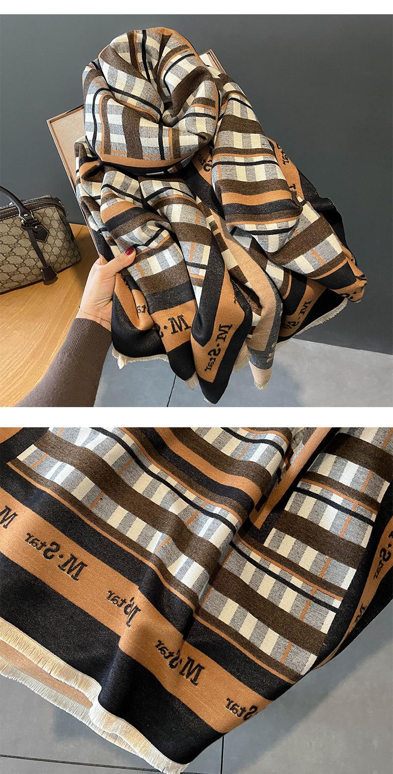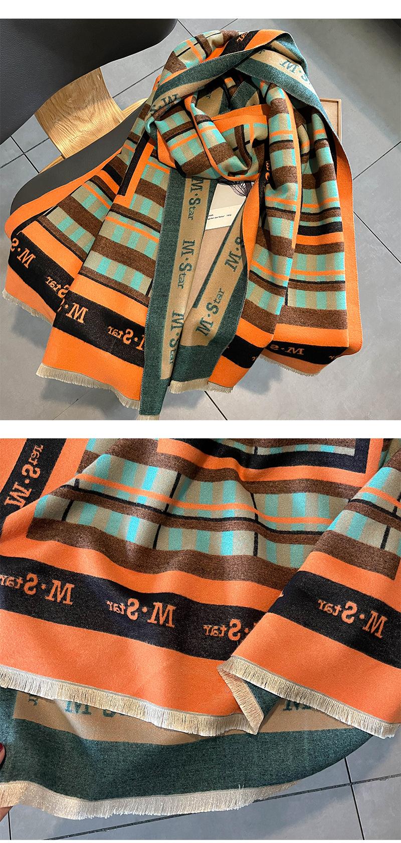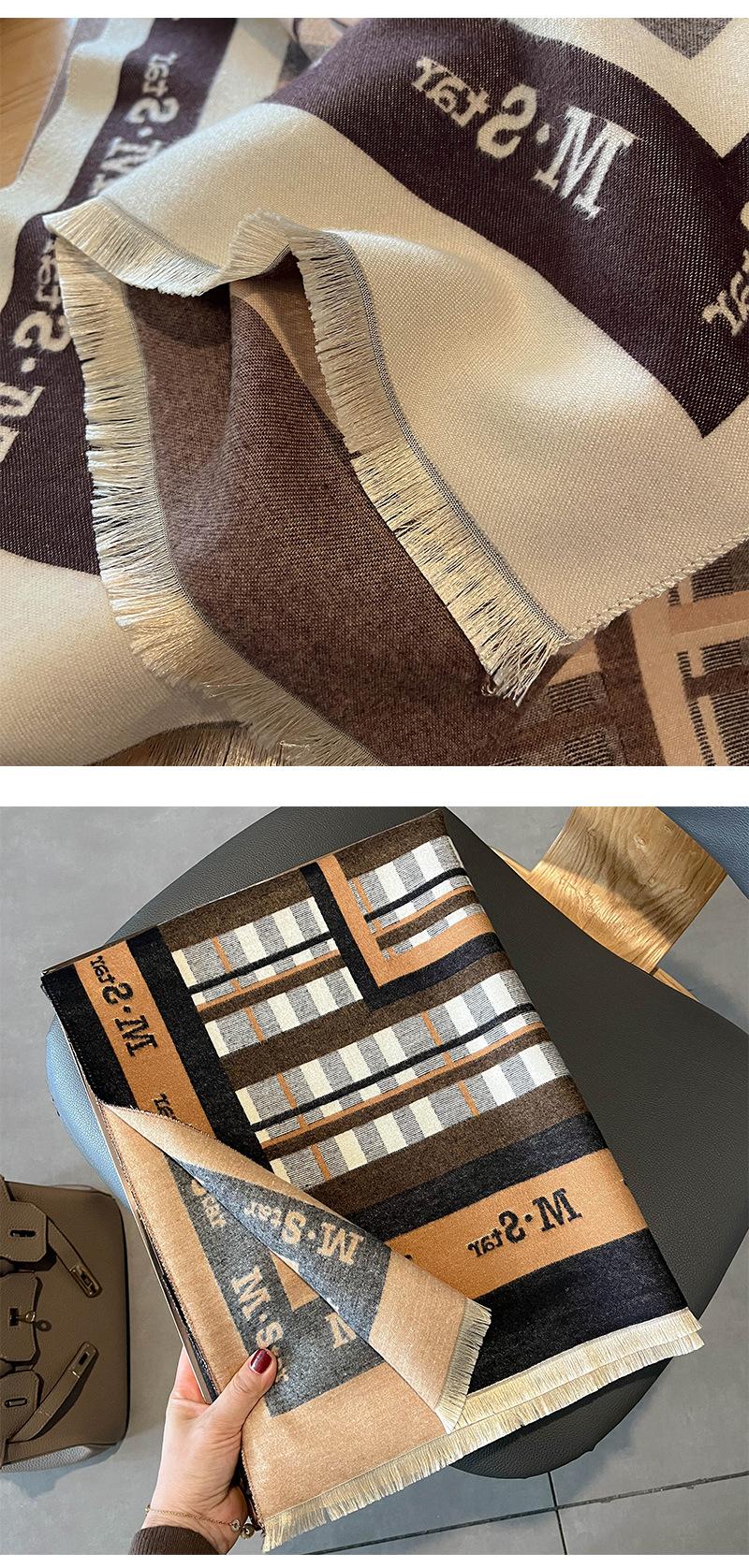 | Bufanda cálida nueva de otoño e invierno con letra H a juego de colores para mujer, chal largo grueso y cálido de doble cara de imitación de cachemira |