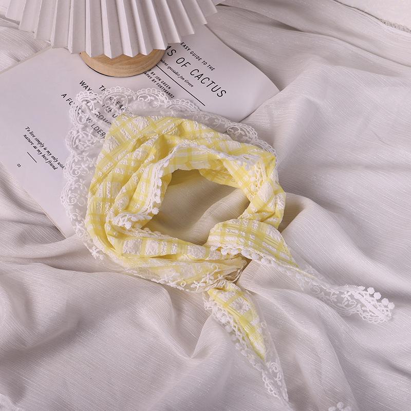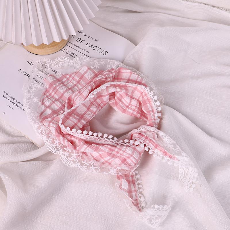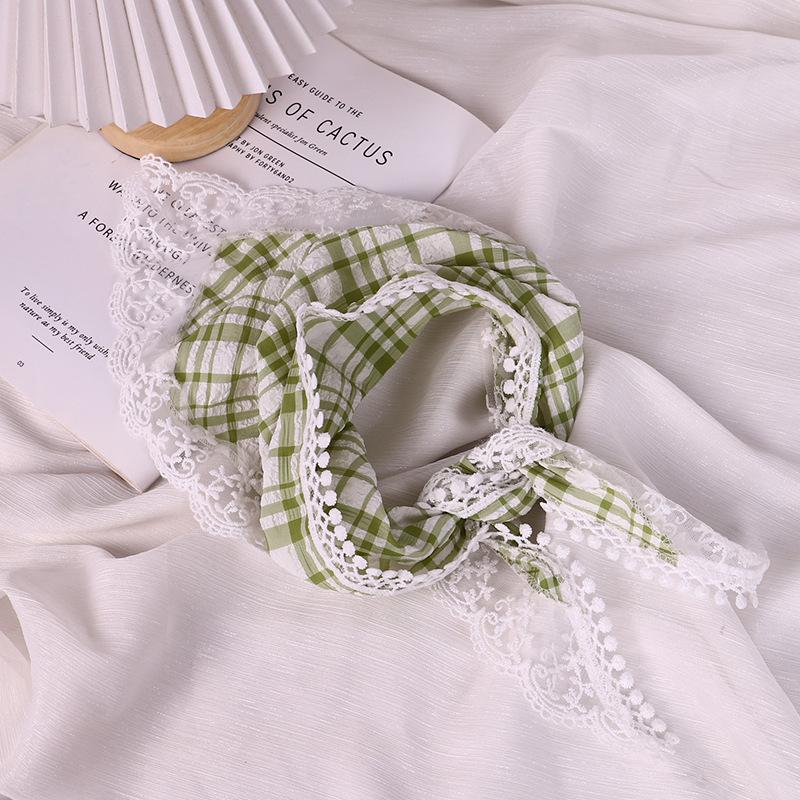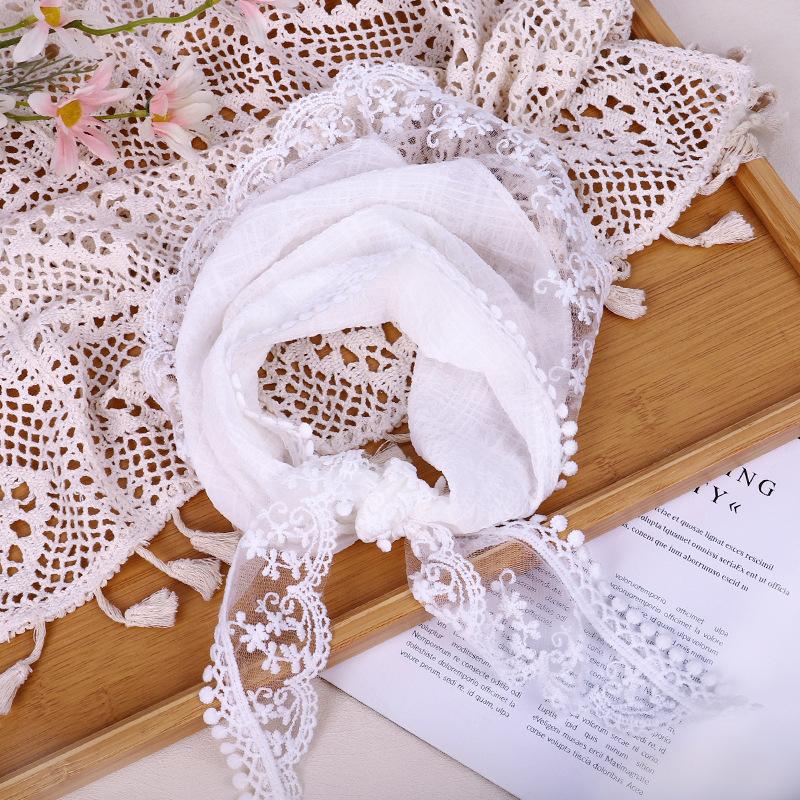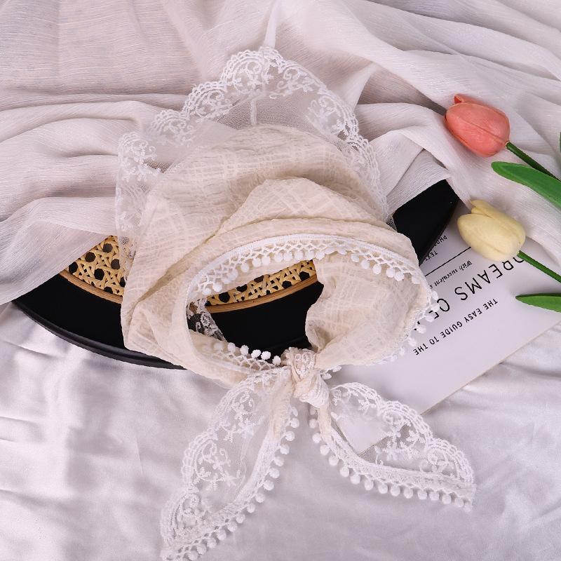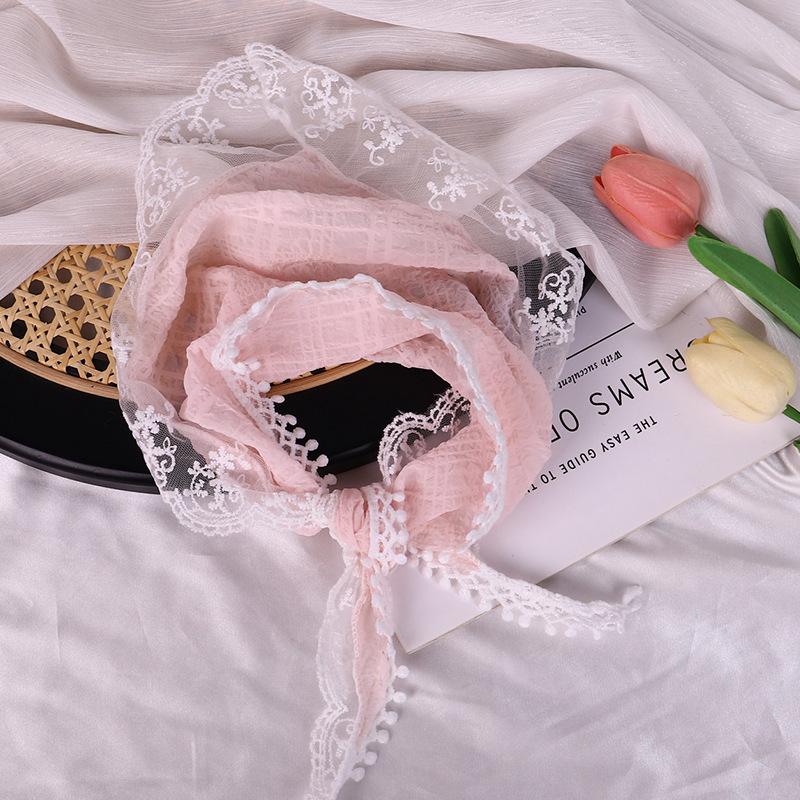 Pañuelo para la cabeza Ins Triángulo de alta calidad Verano para mujer Pastoral Estilo francés Banda para el cabello Lazo Encaje antiguo Triángulo Pañuelo para la cabeza Lazo Cabeza