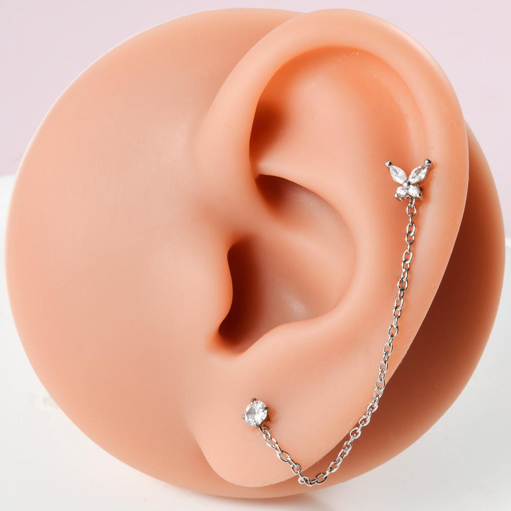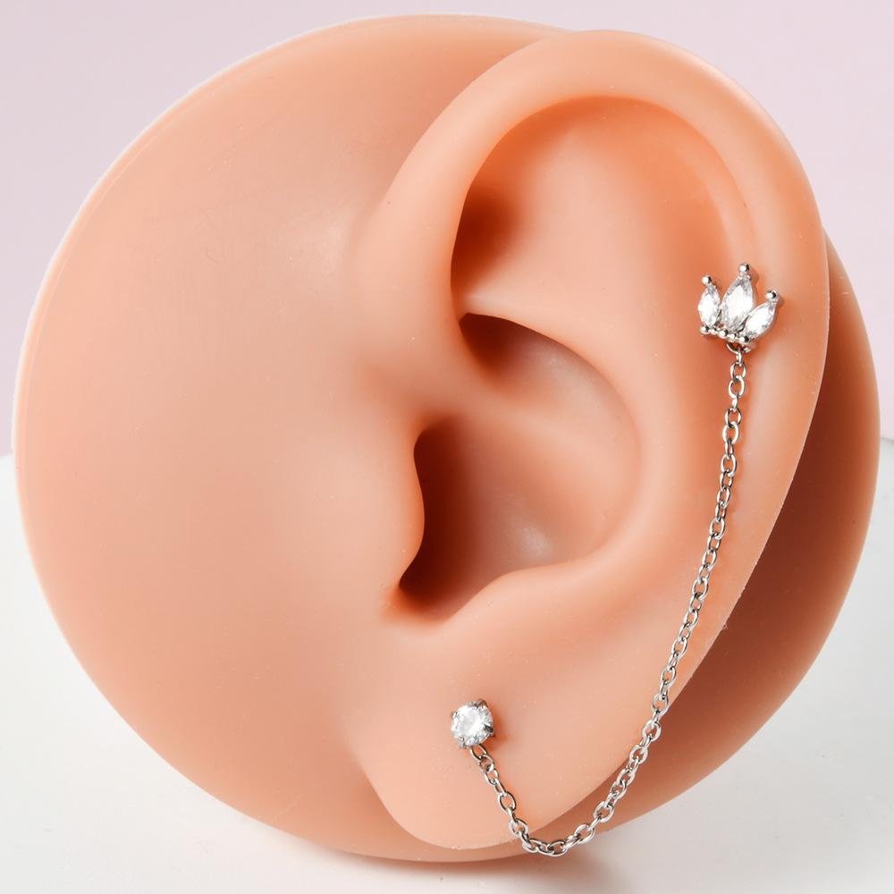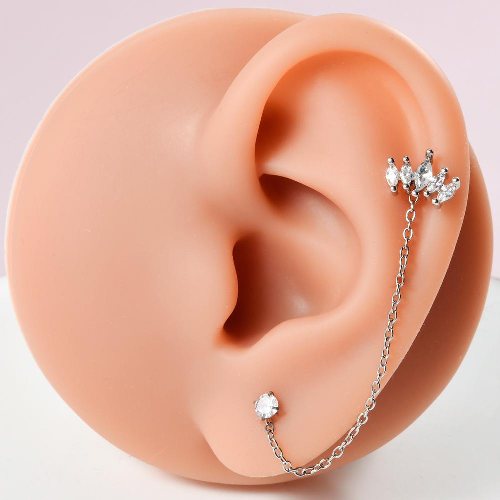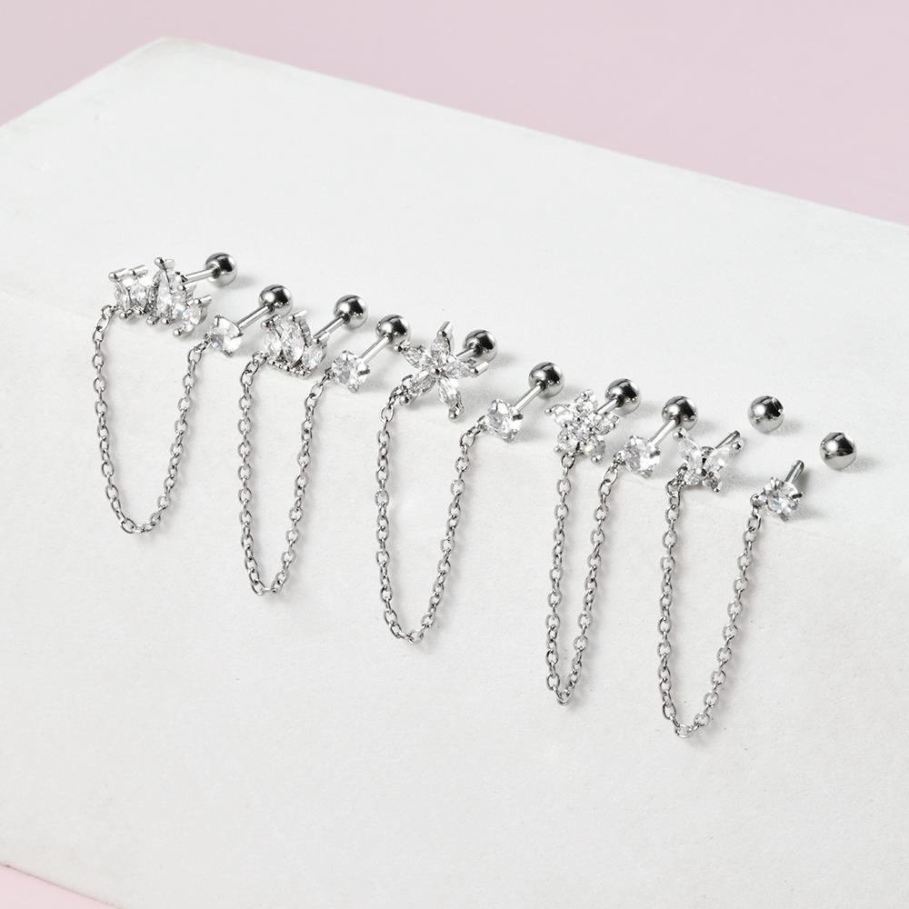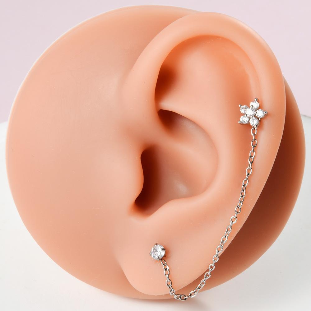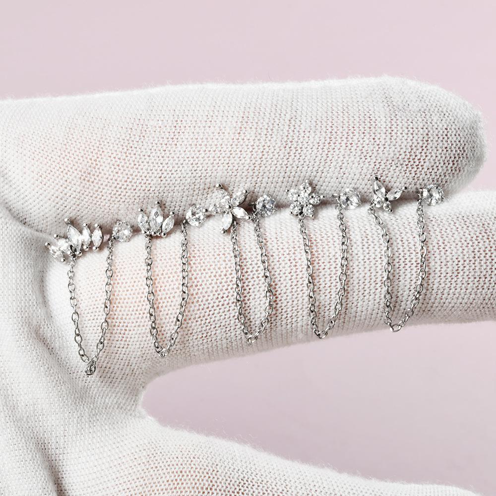 .nombre: Nuevo Puño de Oreja de Flor Transfronterizo Cobre con Incrustaciones Corte Marquesa Barra Recta Arete de Tuerca de Rosca Externa Cadena de Acero Inoxidable Joyería para la Oreja