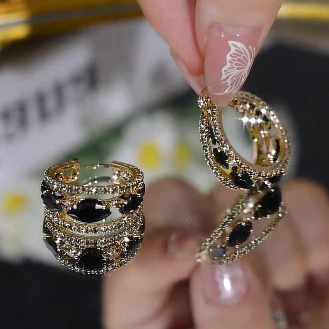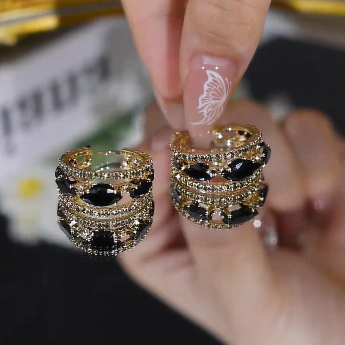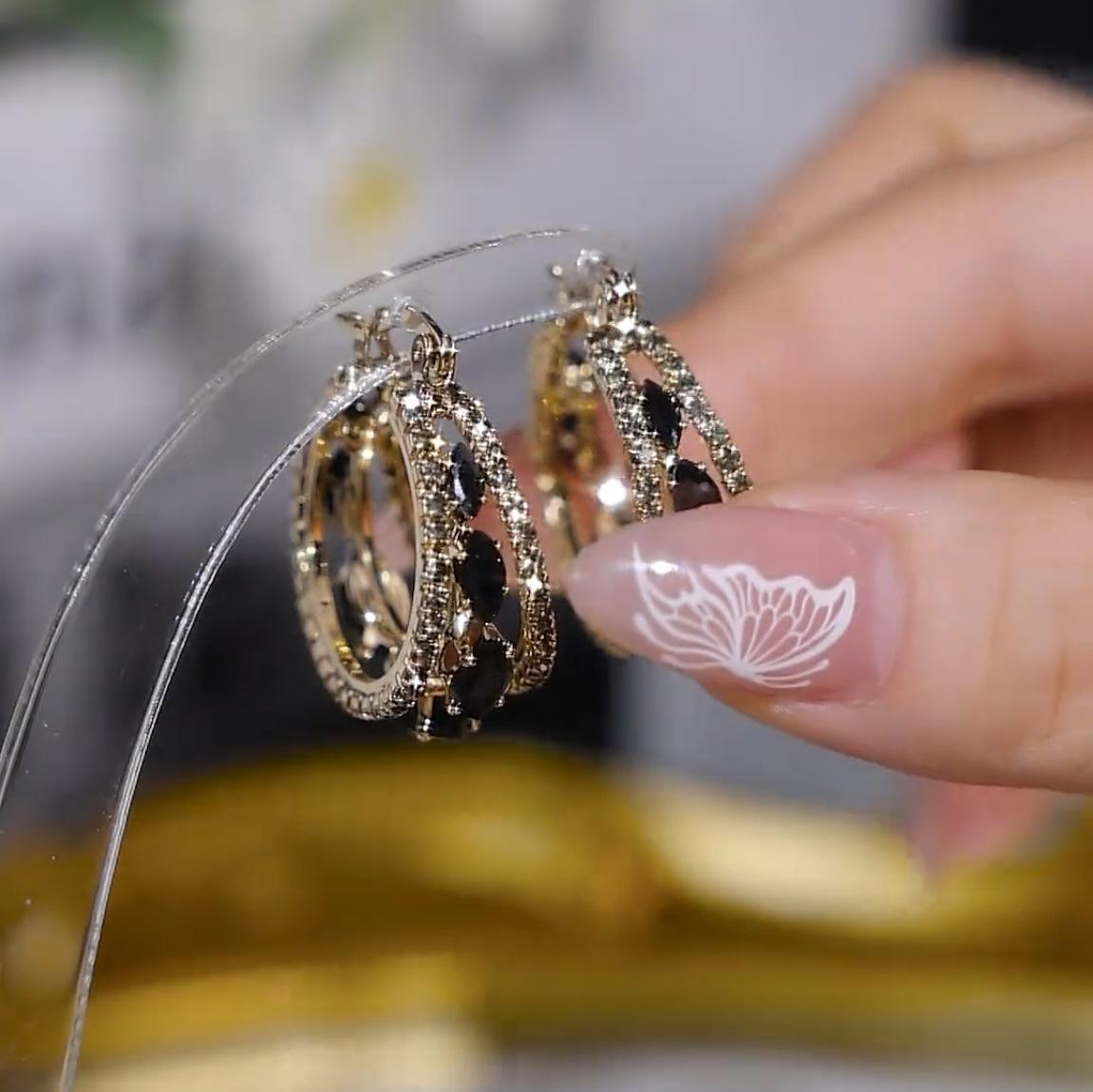 Nuevos pendientes de cristal de moda, ligeros, de lujo, elegantes, de estilo frío, estilo francés, con circonita negra, elegantes pendientes de alta calidad para mujer.