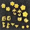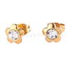 Pendientes de acero inoxidable dorados con forma de corazón de melocotón y diamantes, pendientes de estrella de cinco puntas con flor de ciruelo, joyería de traje al por mayor