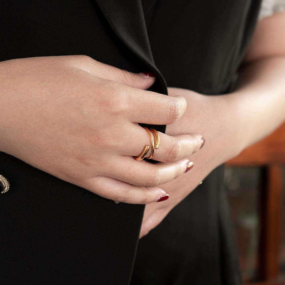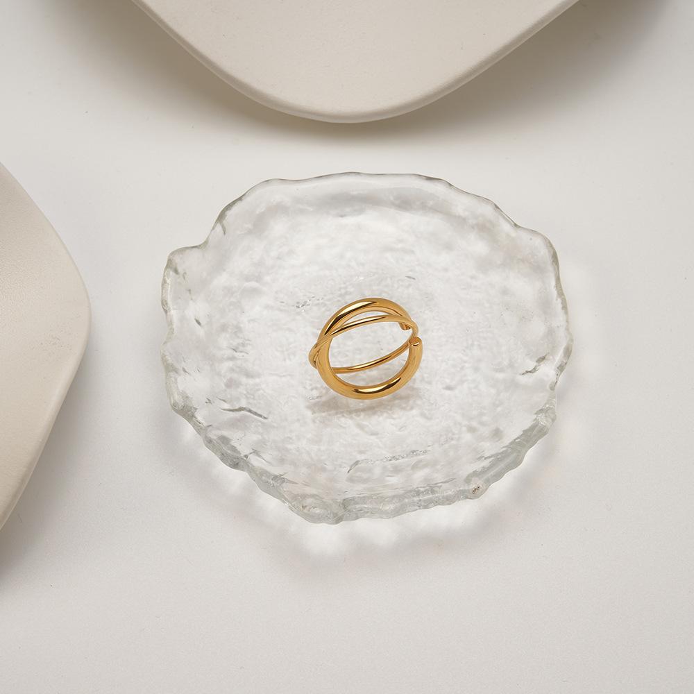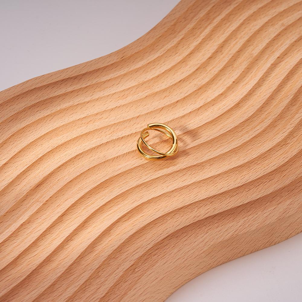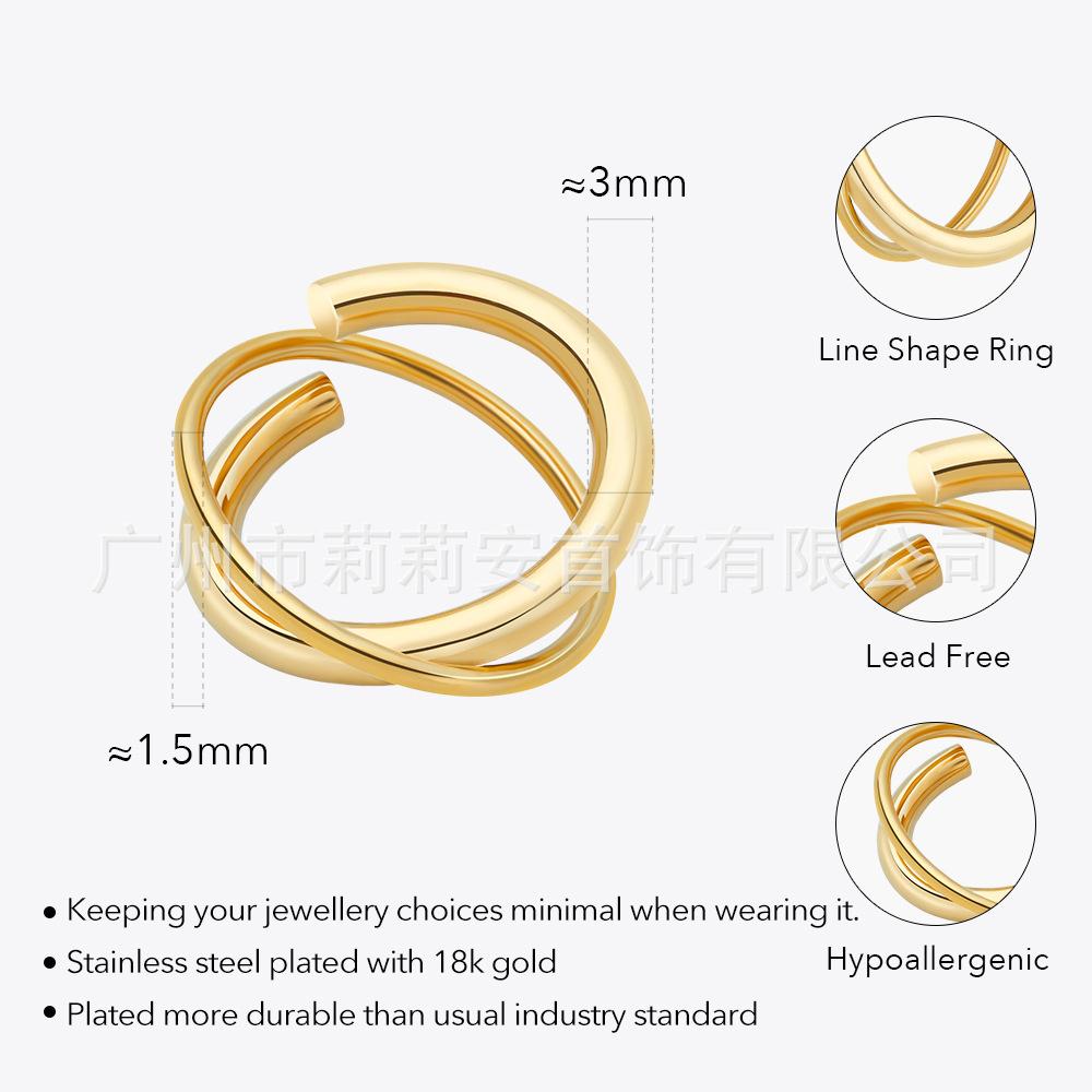 Anillo de dedo índice de doble capa con cruz redonda, diseño personalizado europeo y americano, de acero de titanio bañado en oro de 18 quilates, anillo de moda INS R234192