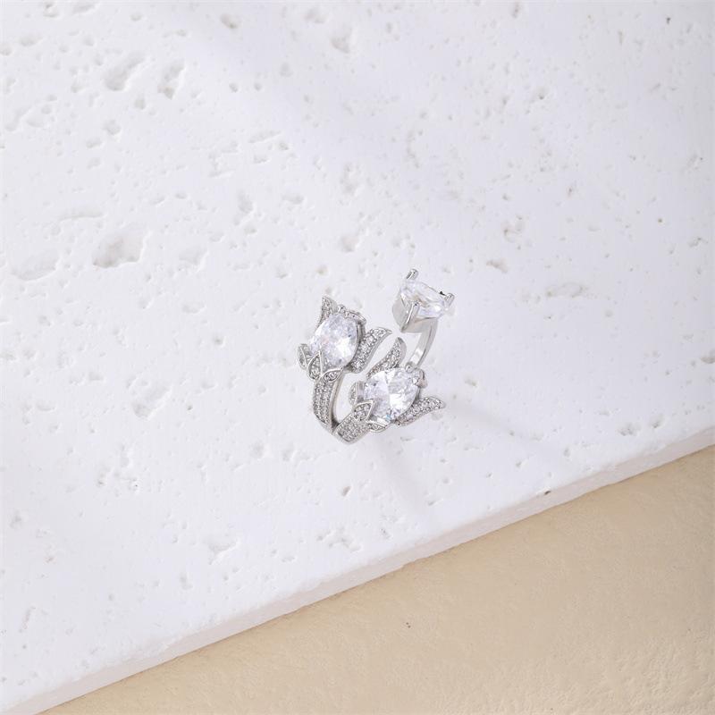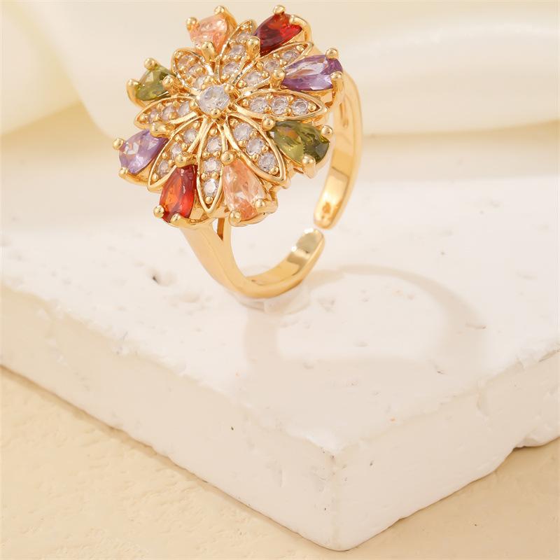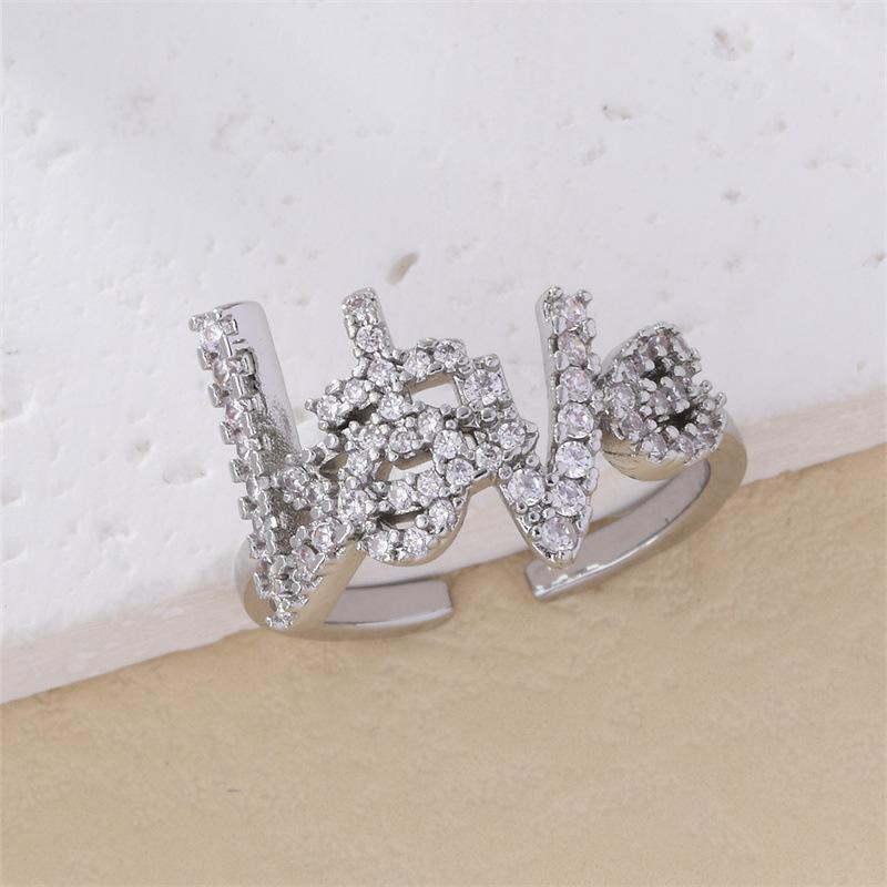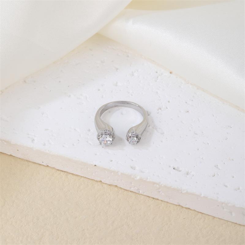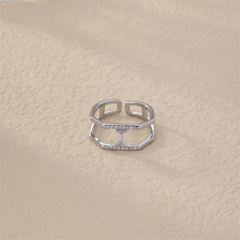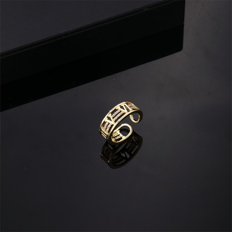Anillo unisex exquisito, de nueva moda, versátil, con incrustaciones de cobre y circonitas, de Moxi, sencillo, ligero y de lujo, abierto.