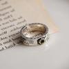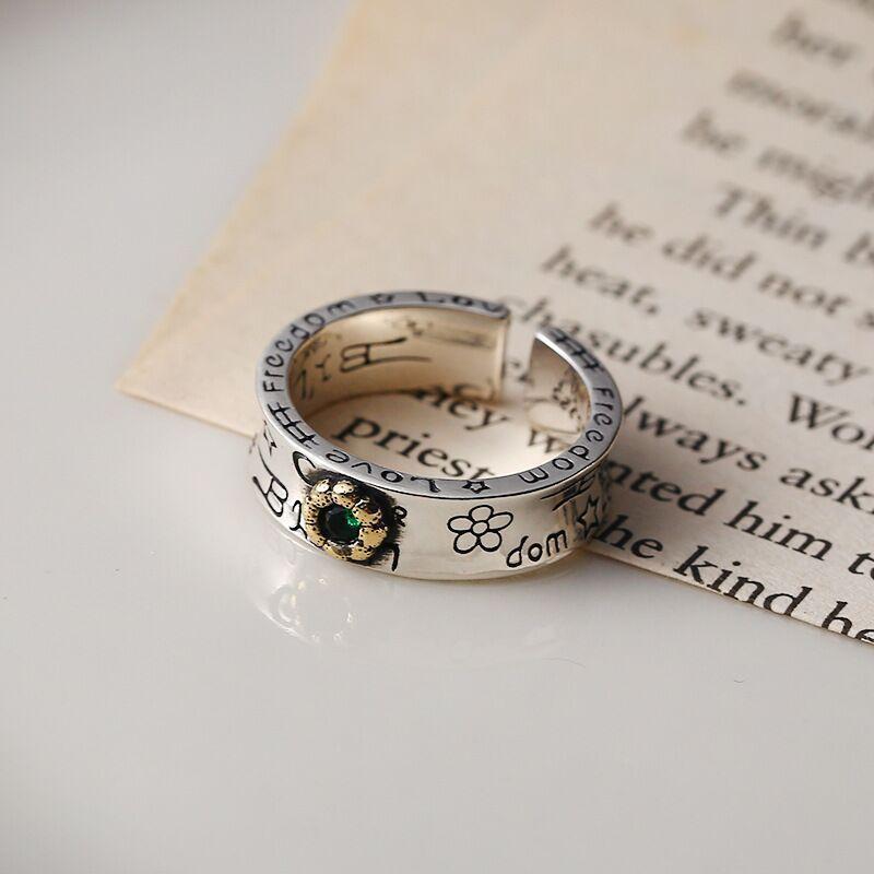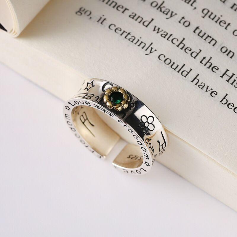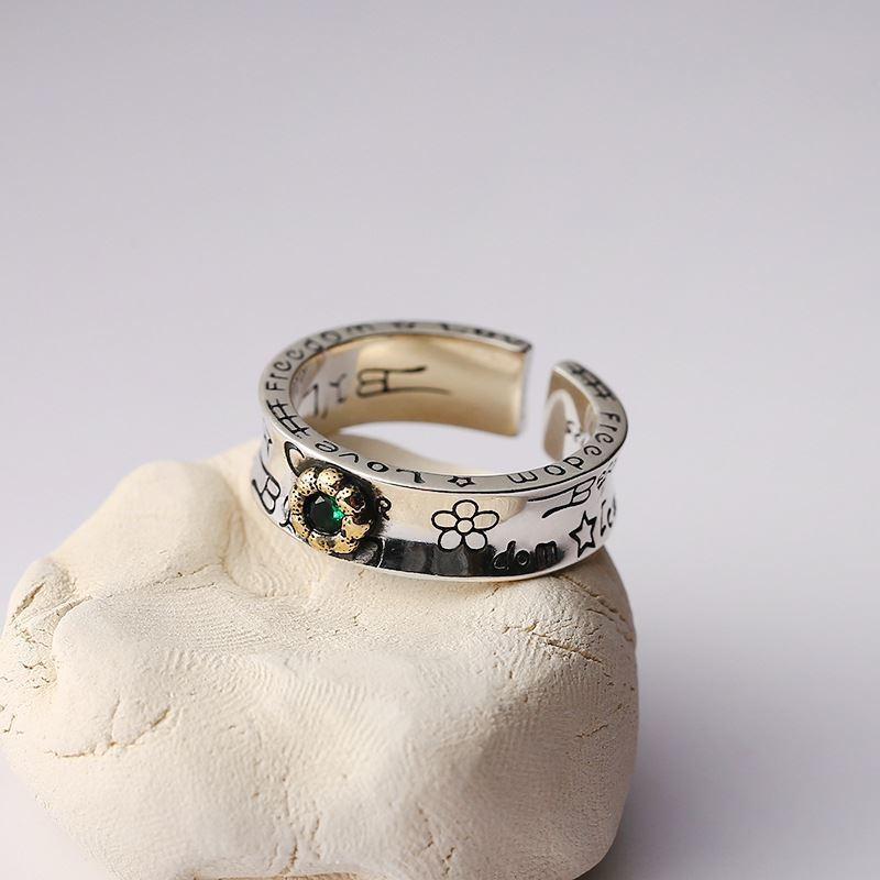 Anillo Esmeralda de Estilo Japonés-Coreano Vintage con Graffiti de Letras y Flores, Joyería de Moda para Mujer, Personalidad, Tendencia, Más Vendida