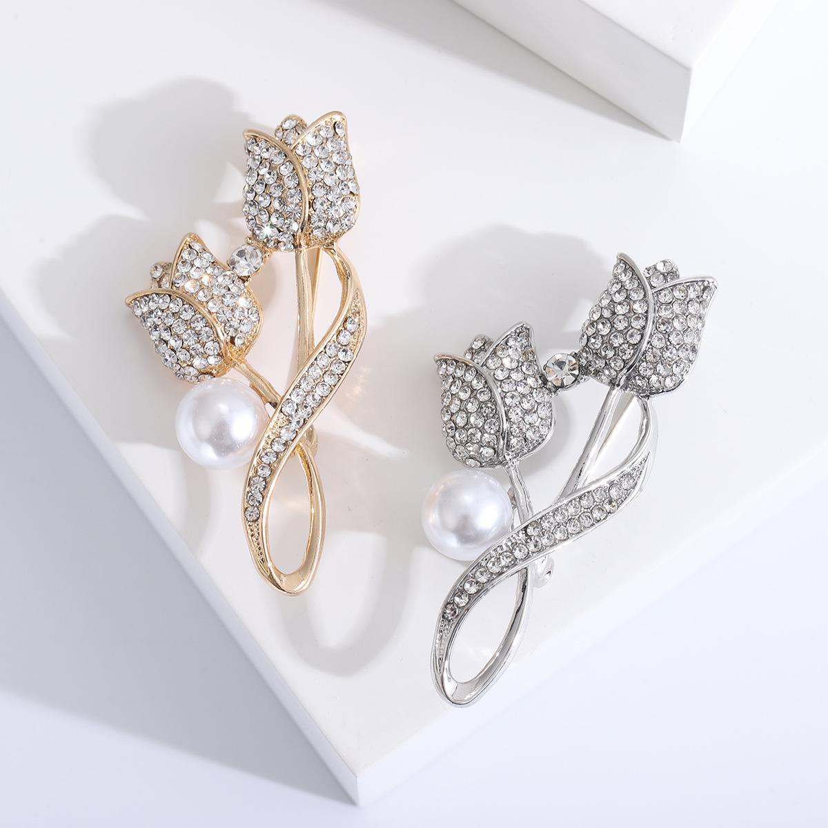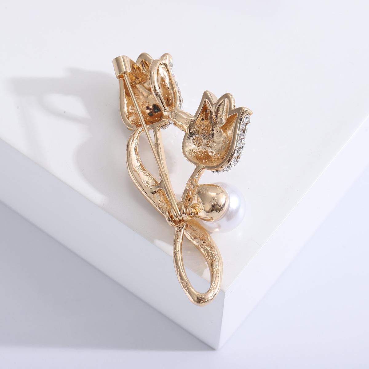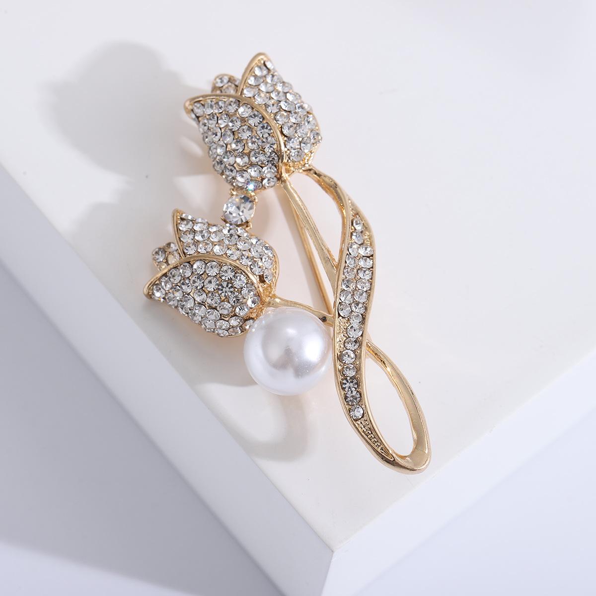Broche de tulipán con perla y diamante de aleación coreana, accesorio para camisa, diseño de abrigo con ramillete, nueva moda
