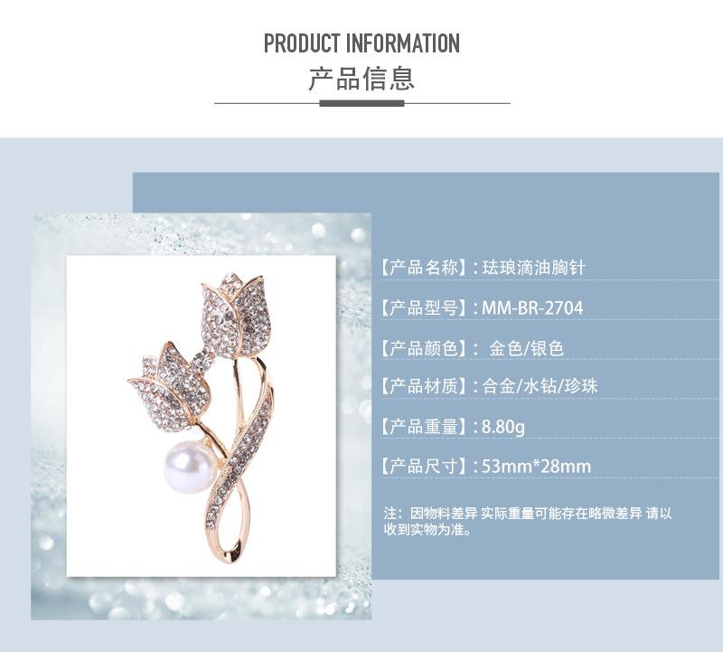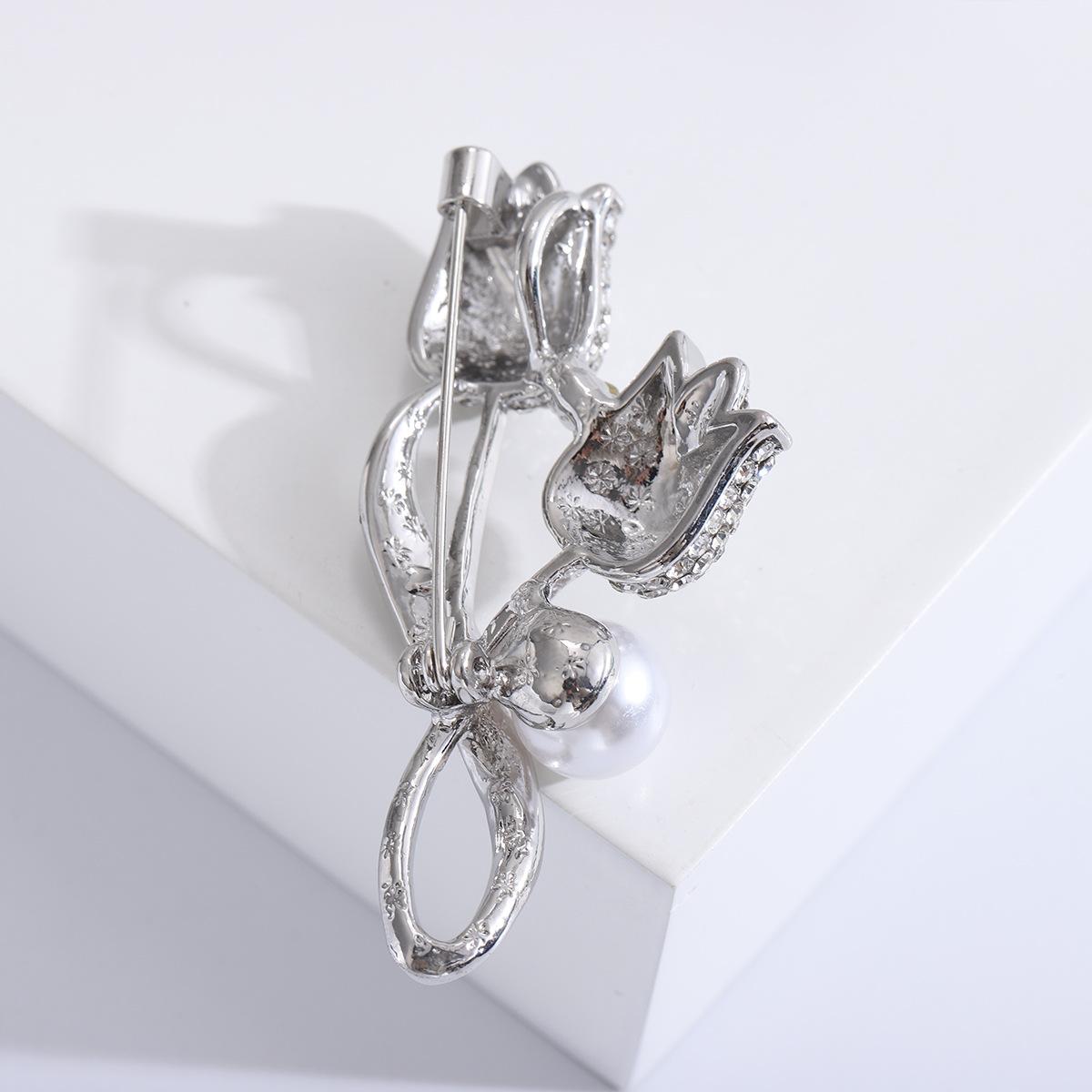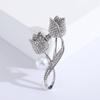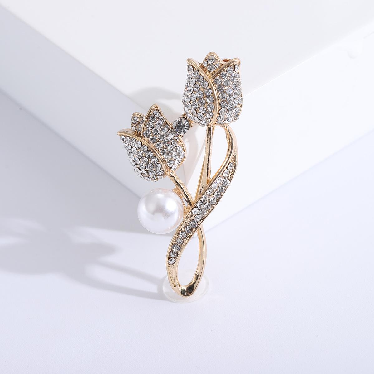 Broche de tulipán con perla y diamante de aleación coreana, accesorio para camisa, diseño de abrigo con ramillete, nueva moda