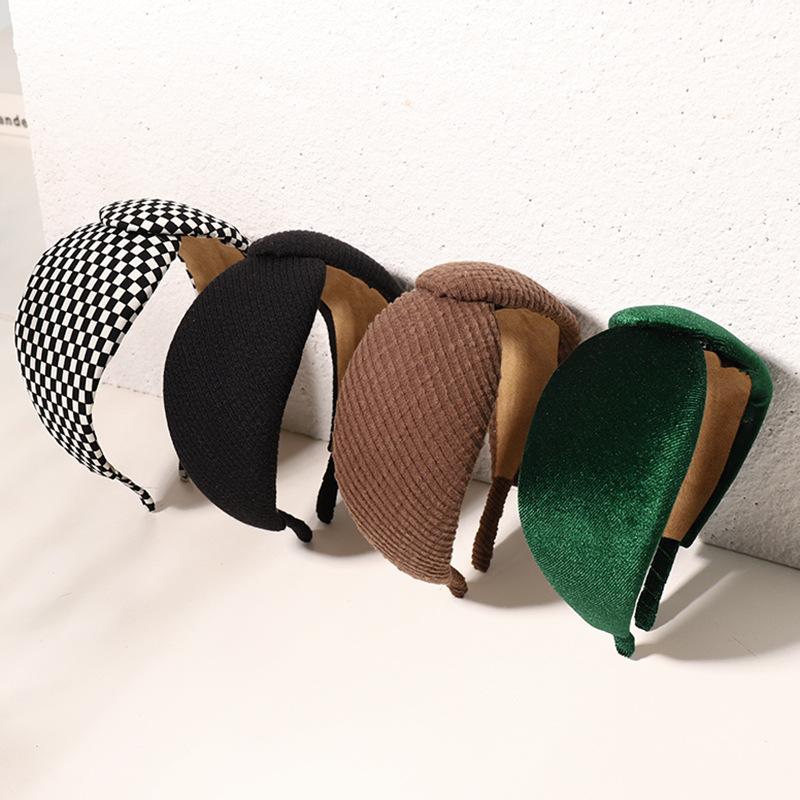 Nombre del producto: Diadema coreana retro de color sólido de ala ancha, temperamento versátil, sencilla, para celebridad de internet, de terciopelo, tejida, R276