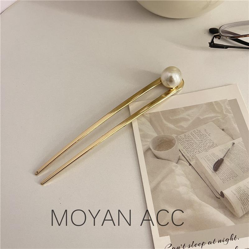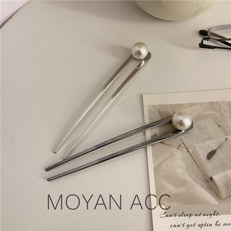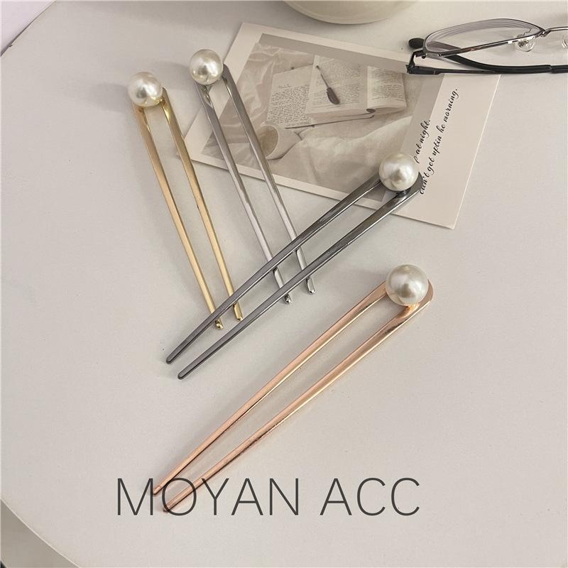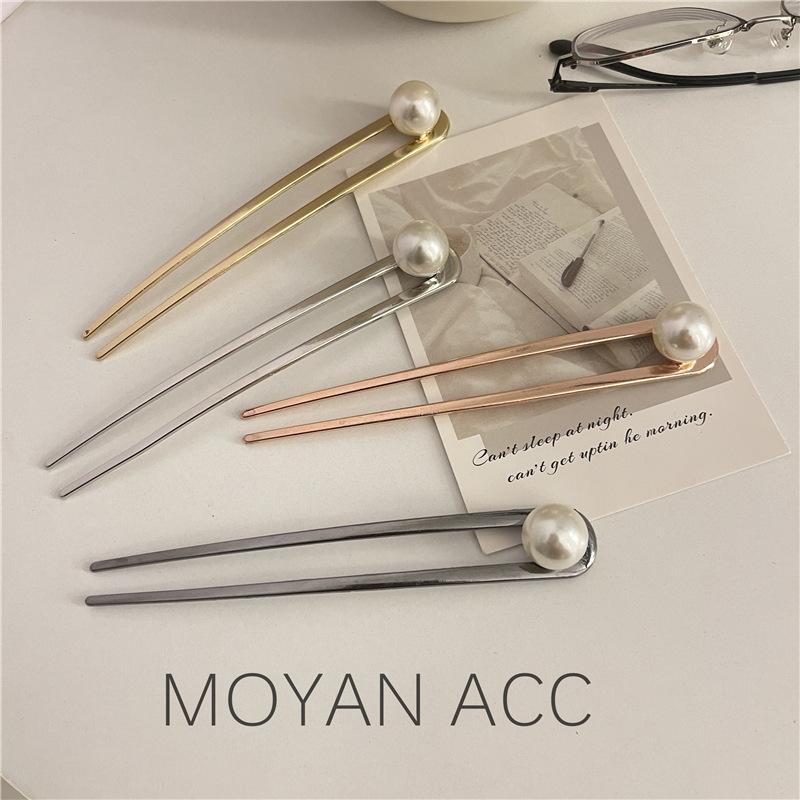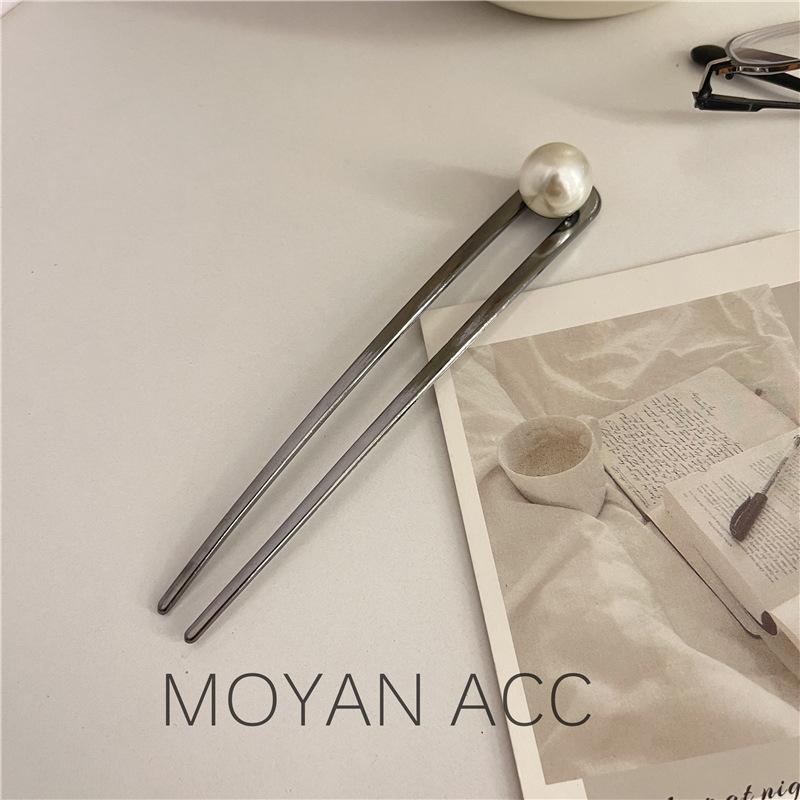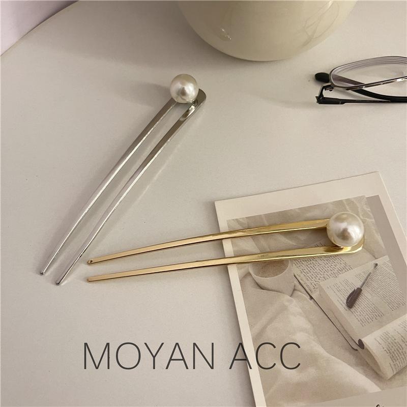 Horquilla de metal con forma de U y perlas, estilo coreano, elegante, estilo antiguo, estilo coreano, de alta gama.