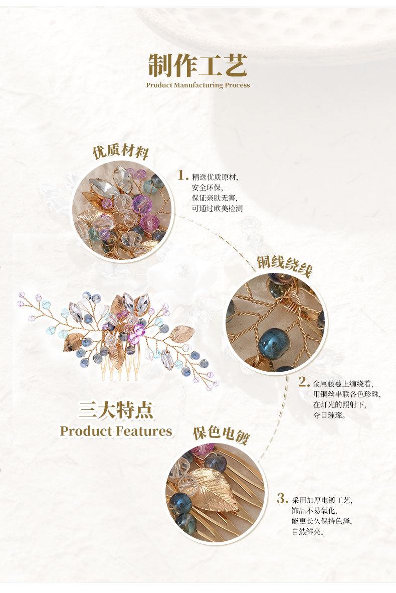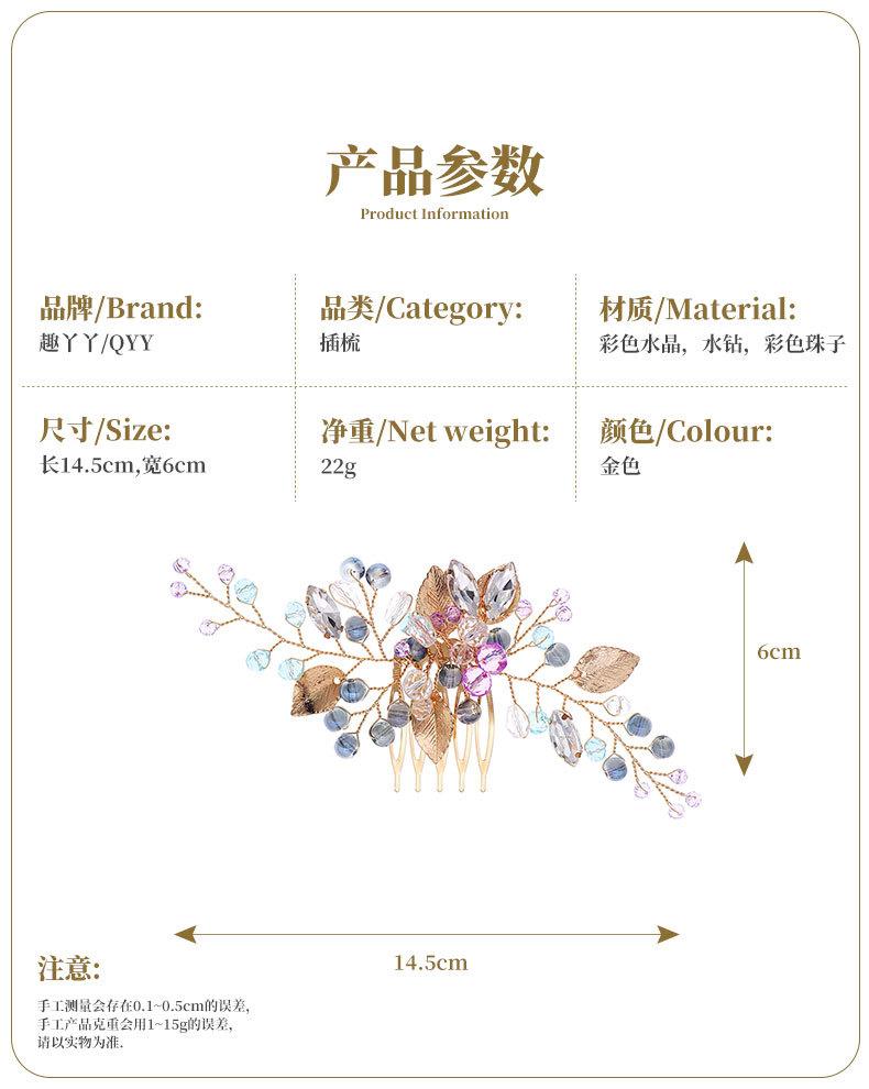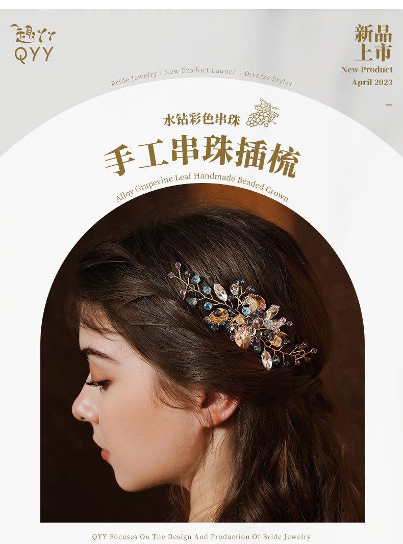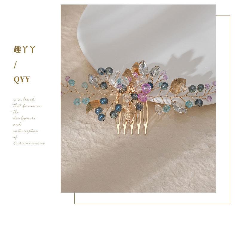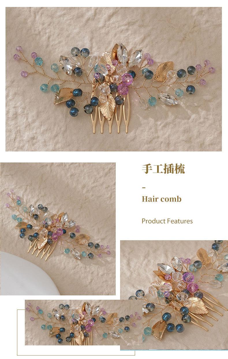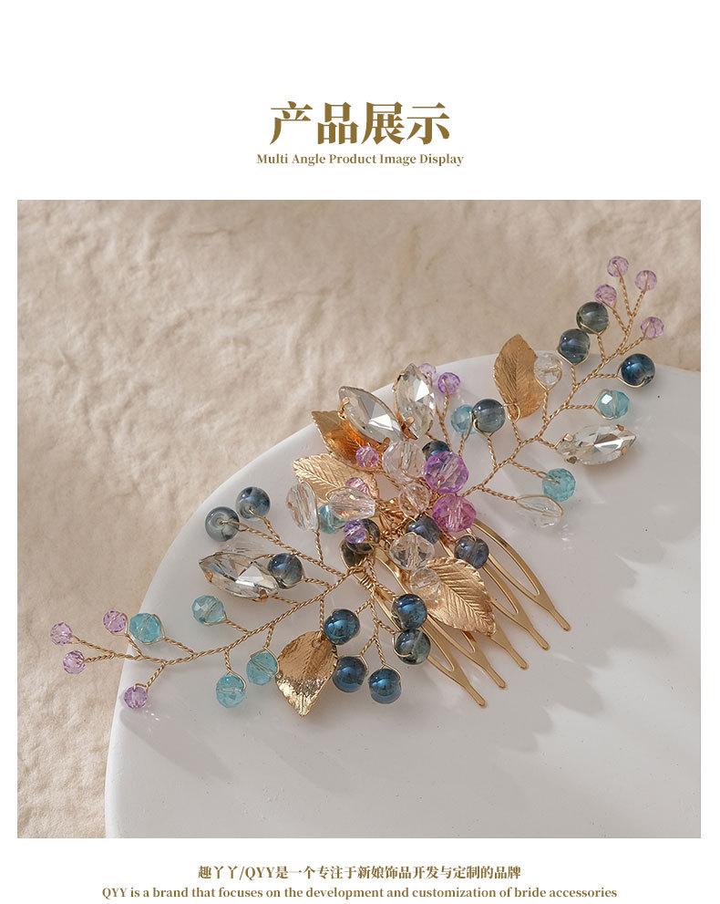Accesorios para el cabello de novia antiguos transfronterizos, peine de mano con cuentas de color hoja Mori, placa de cristal para el cabello, venta al por mayor