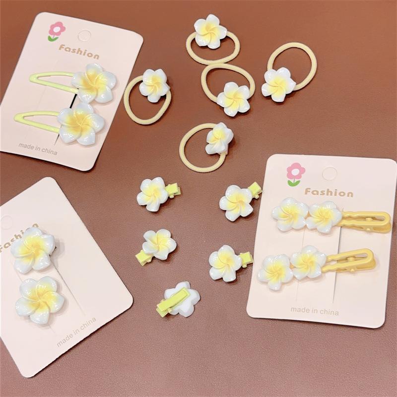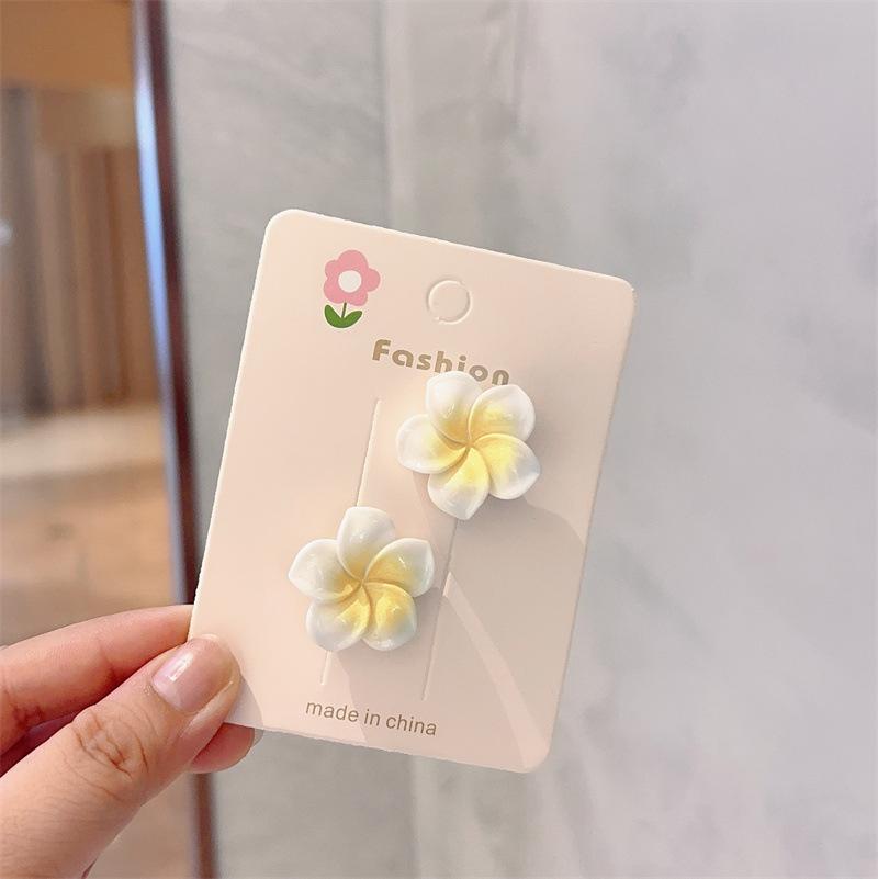 Egg flower-a pair of duckbill clips, Plumeriana-a pair of drops, Egg flower-a pair of big side clips, Egg flow...