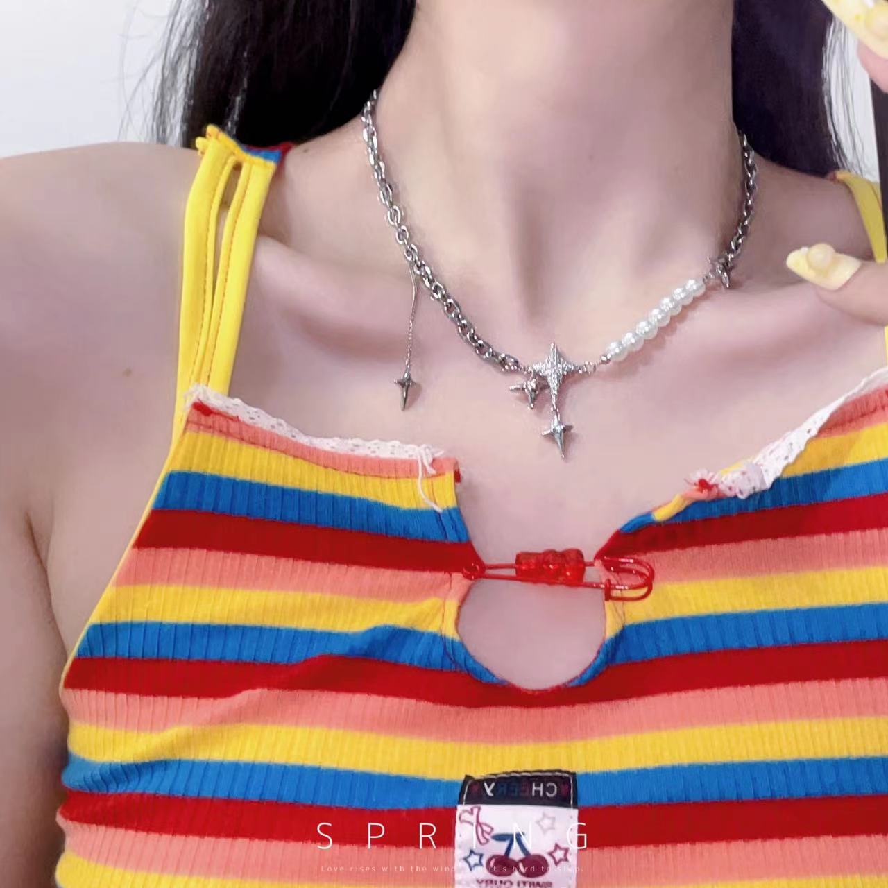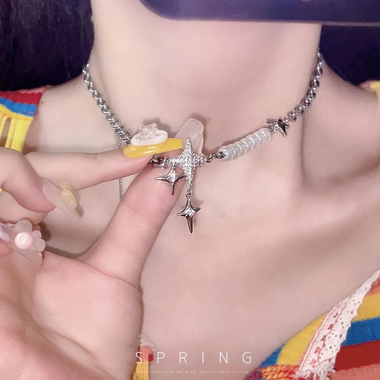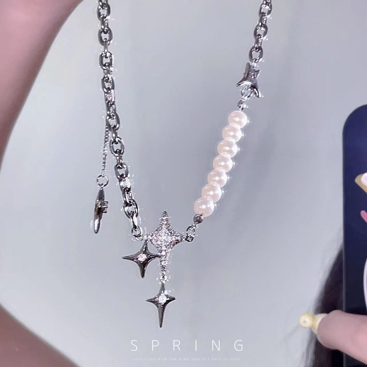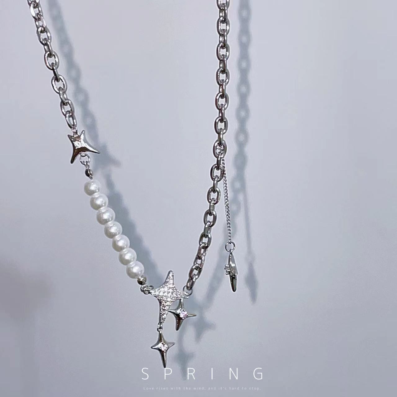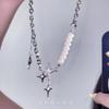 Collar de cadena corta para clavícula con colgante de perlas multicapa de estrella de circonio micro incrustado, estilo nicho simple y fresco para mujer