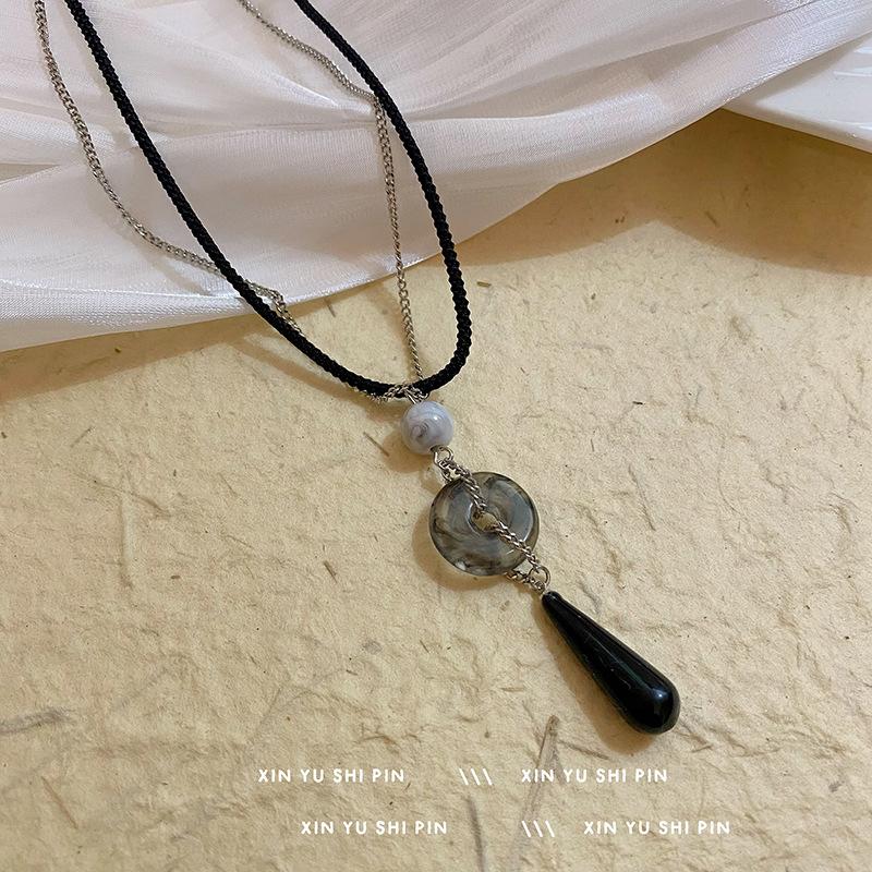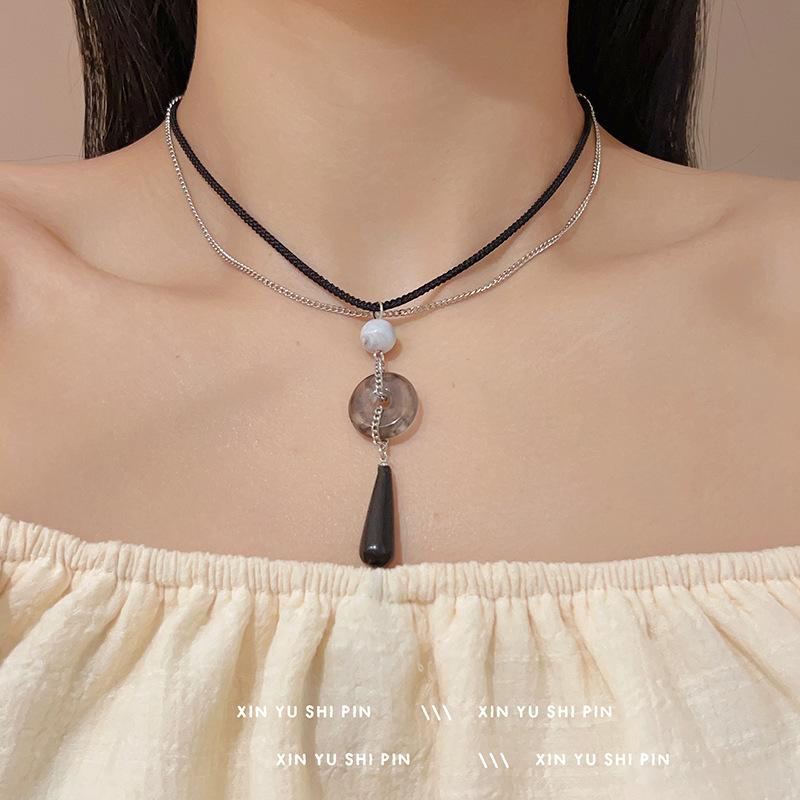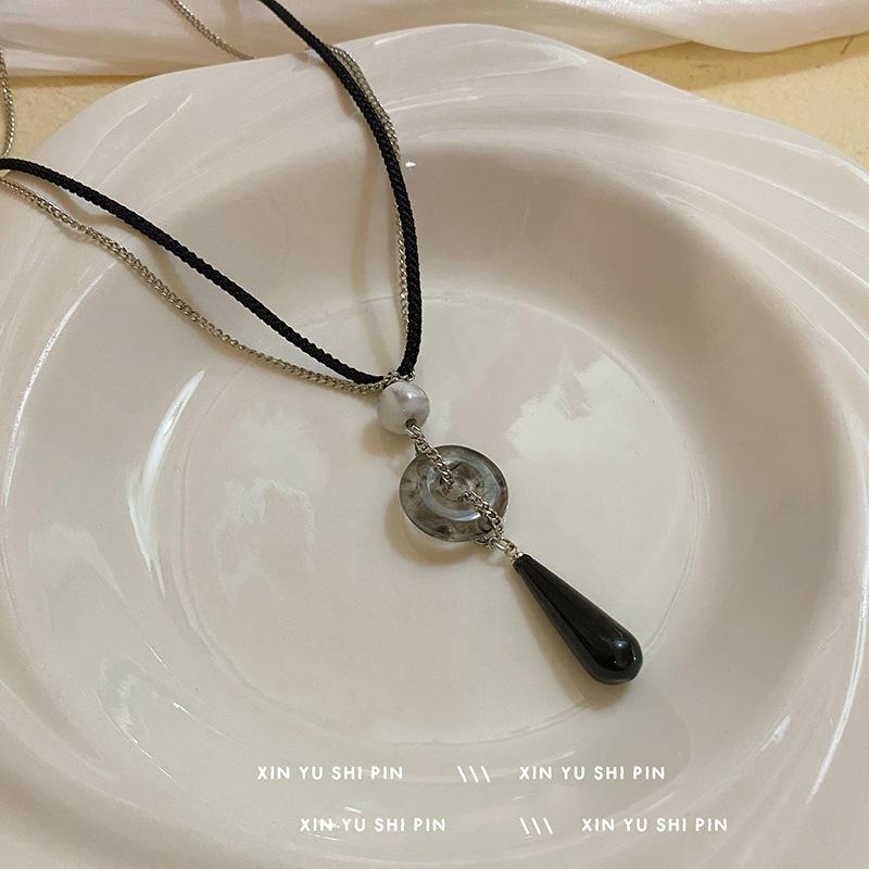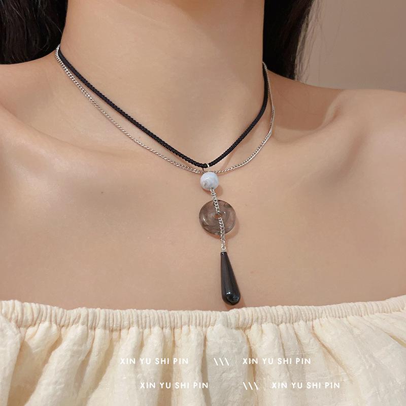 Collar con colgante de gota de agua, estilo chino antiguo, con hebilla de seguridad, estilo nicho, a la moda, combina con todo, sencillo, con cadena para clavícula.