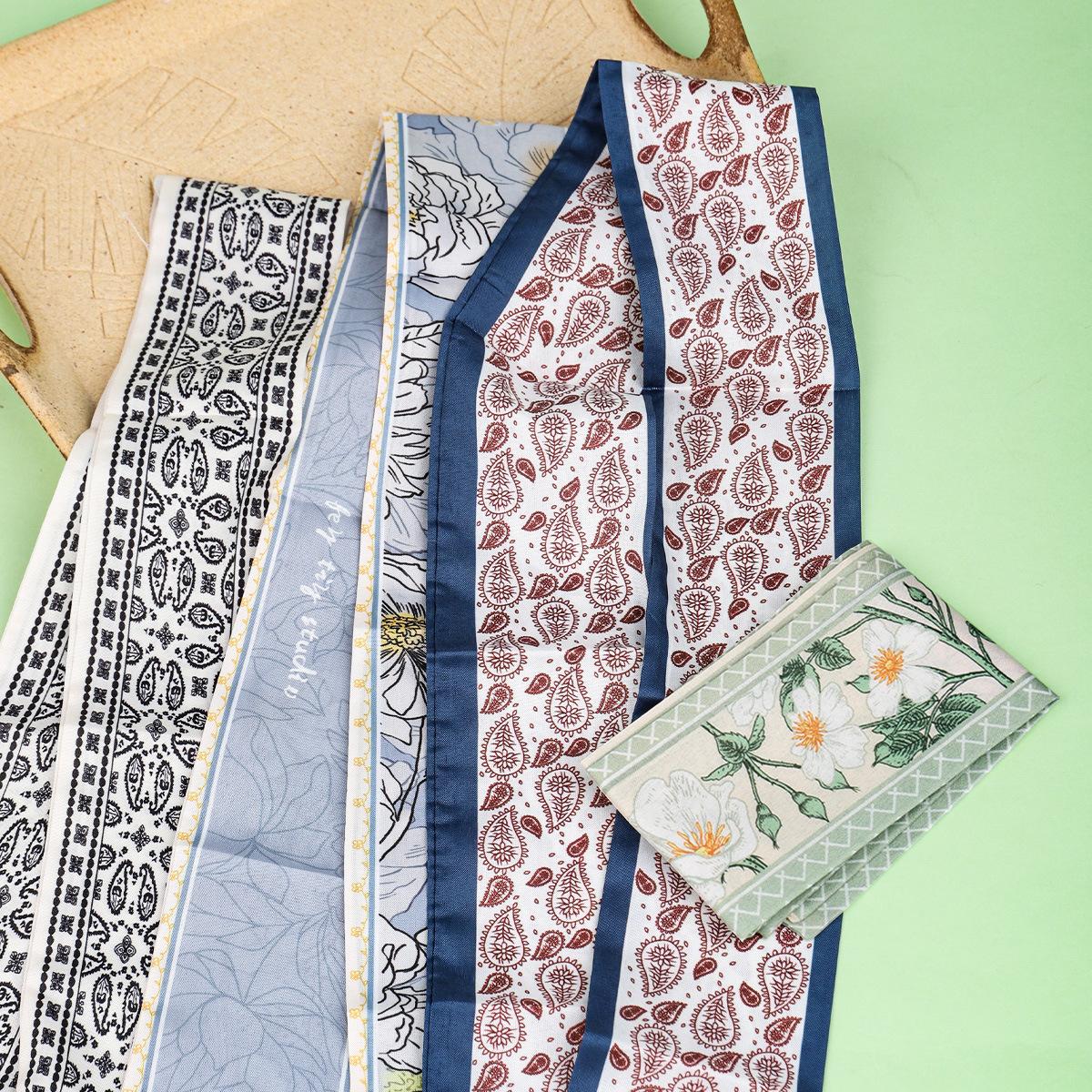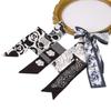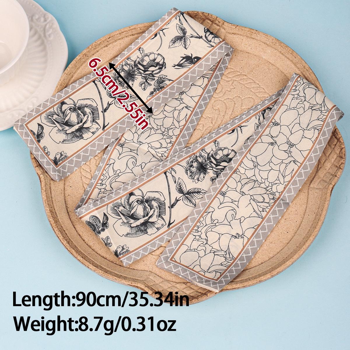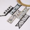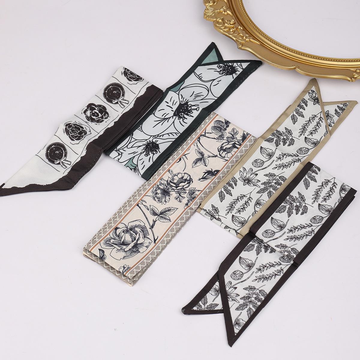 Banda para el cabello estilo viento Cinta para cola de caballo Bufanda larga de seda Elegante bolso Cinta delgada para envolver bolsa Camelia de flor pequeña