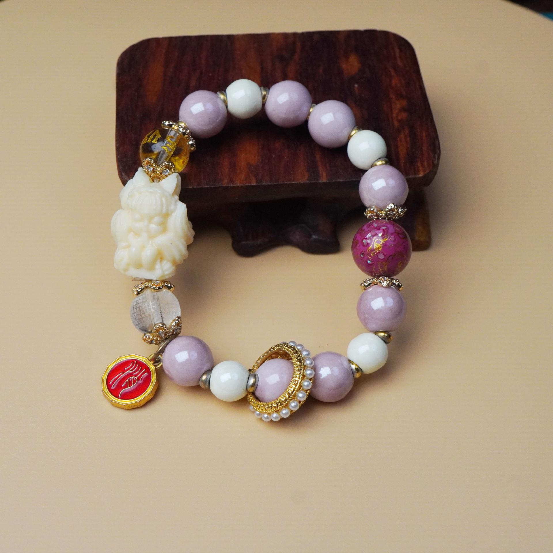 Pulsera de Porcelana Esmaltada en Ceniza Estilo Similar Hangzhou Xiangji para Mujer, Pulsera de Cristal Multicolor de Porcelana Rosa, Accesorios de Joyería Xiaofengji