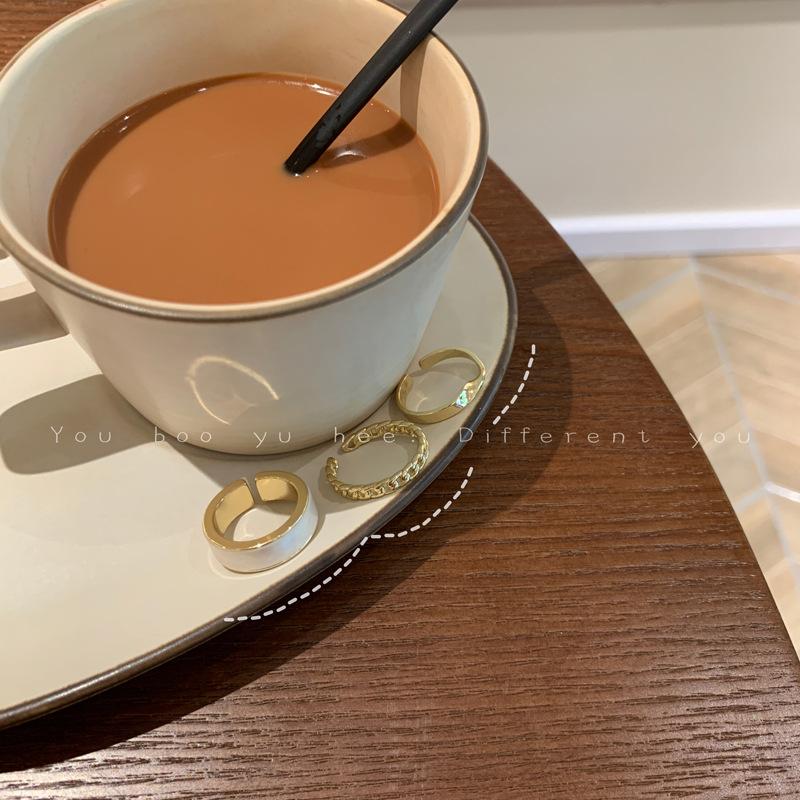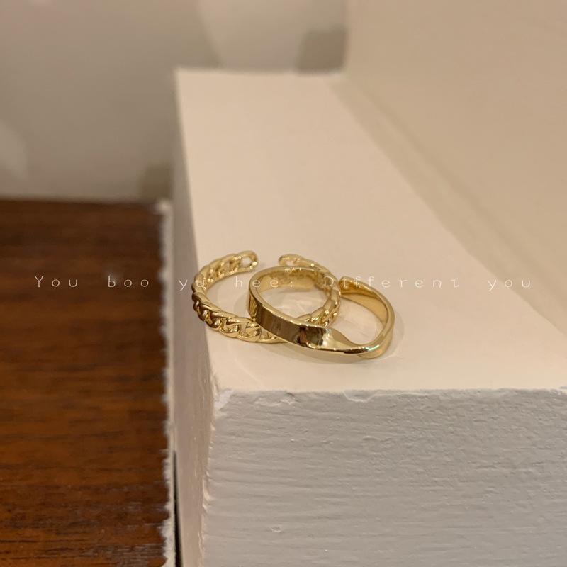 Conjunto de três peças de anel liso da moda, combinação de terno, personalidade ins, moderno, vento frio, aberto, ajustável, anel de dedo para dieta, feminino