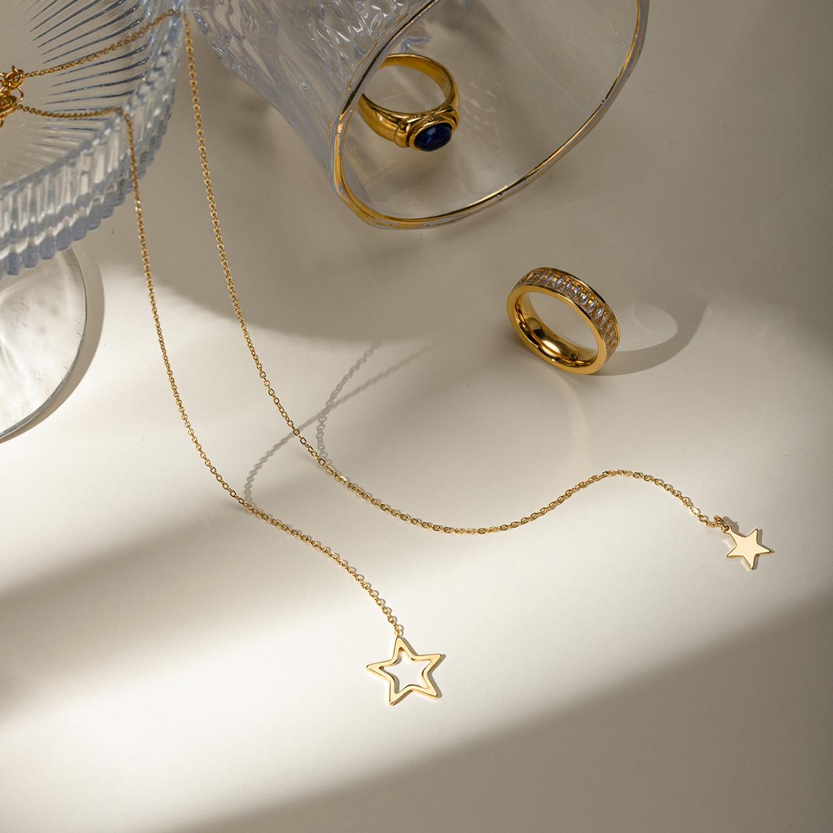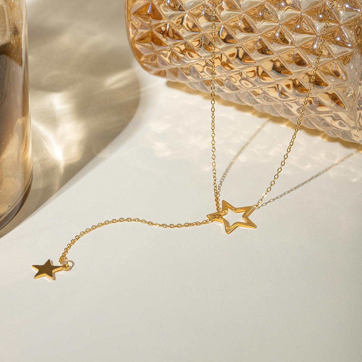 Collar con colgante de estrella de cinco puntas, cadena en Y, estilo nicho de lujo ligero de acero inoxidable y oro de 18 quilates, transfronterizo entre Europa y Estados Unidos.