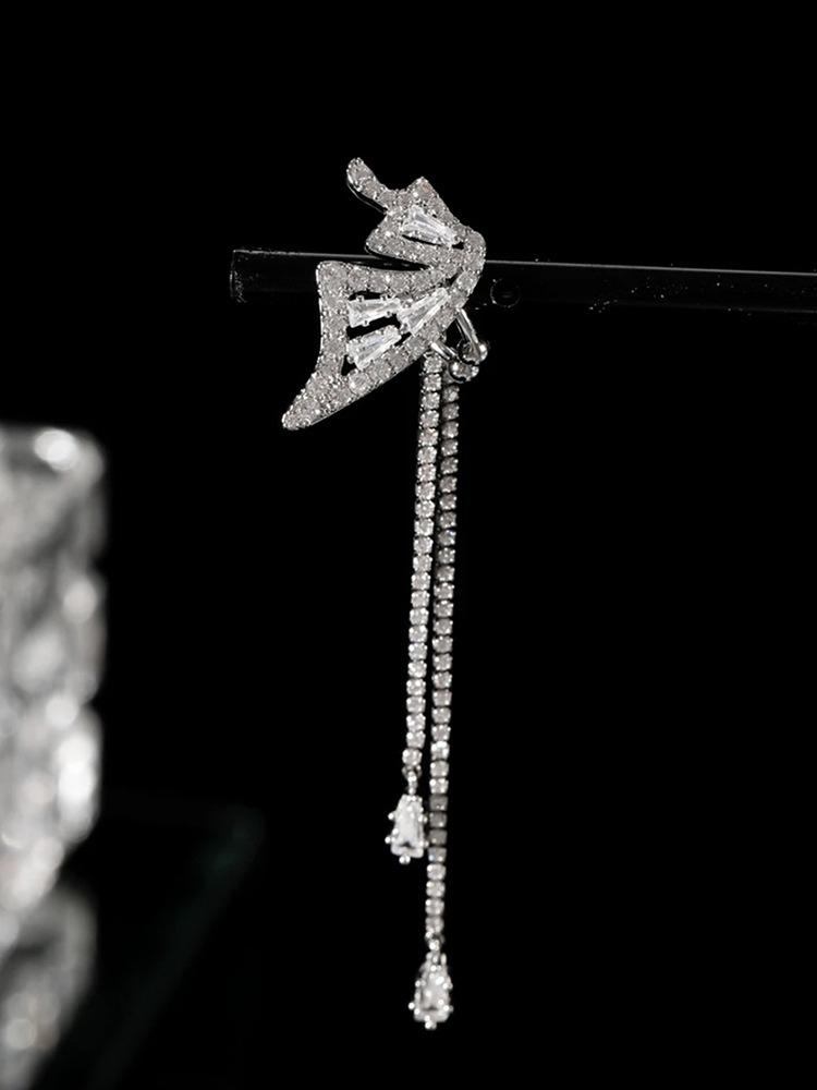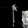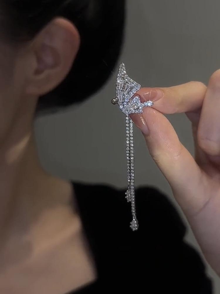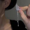 Pendientes de borla con clip de hueso de oreja de mariposa con micro incrustaciones de circonita, sin perforaciones, largos, de lujo, ligeros, para mujer, diseño de nicho, temperamento