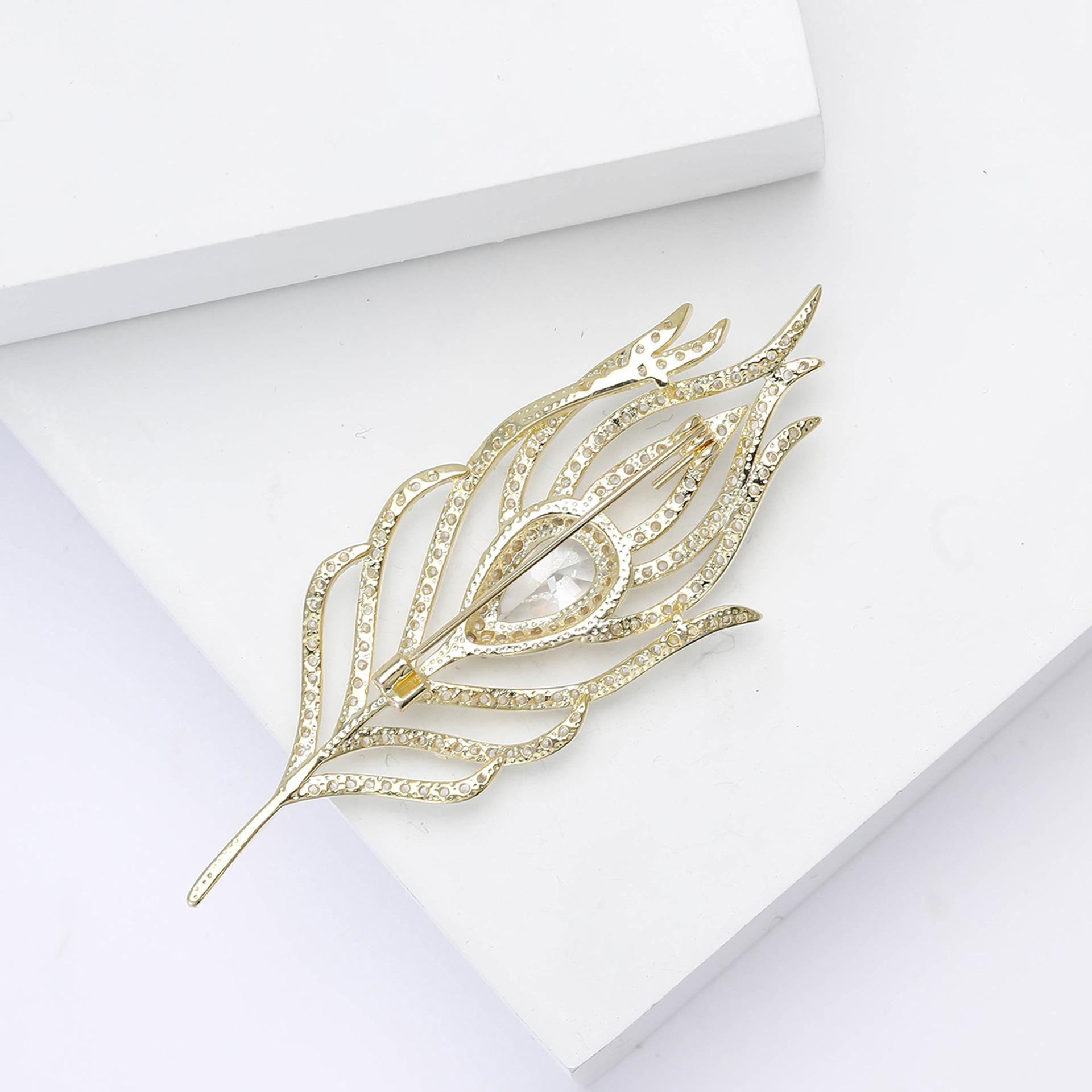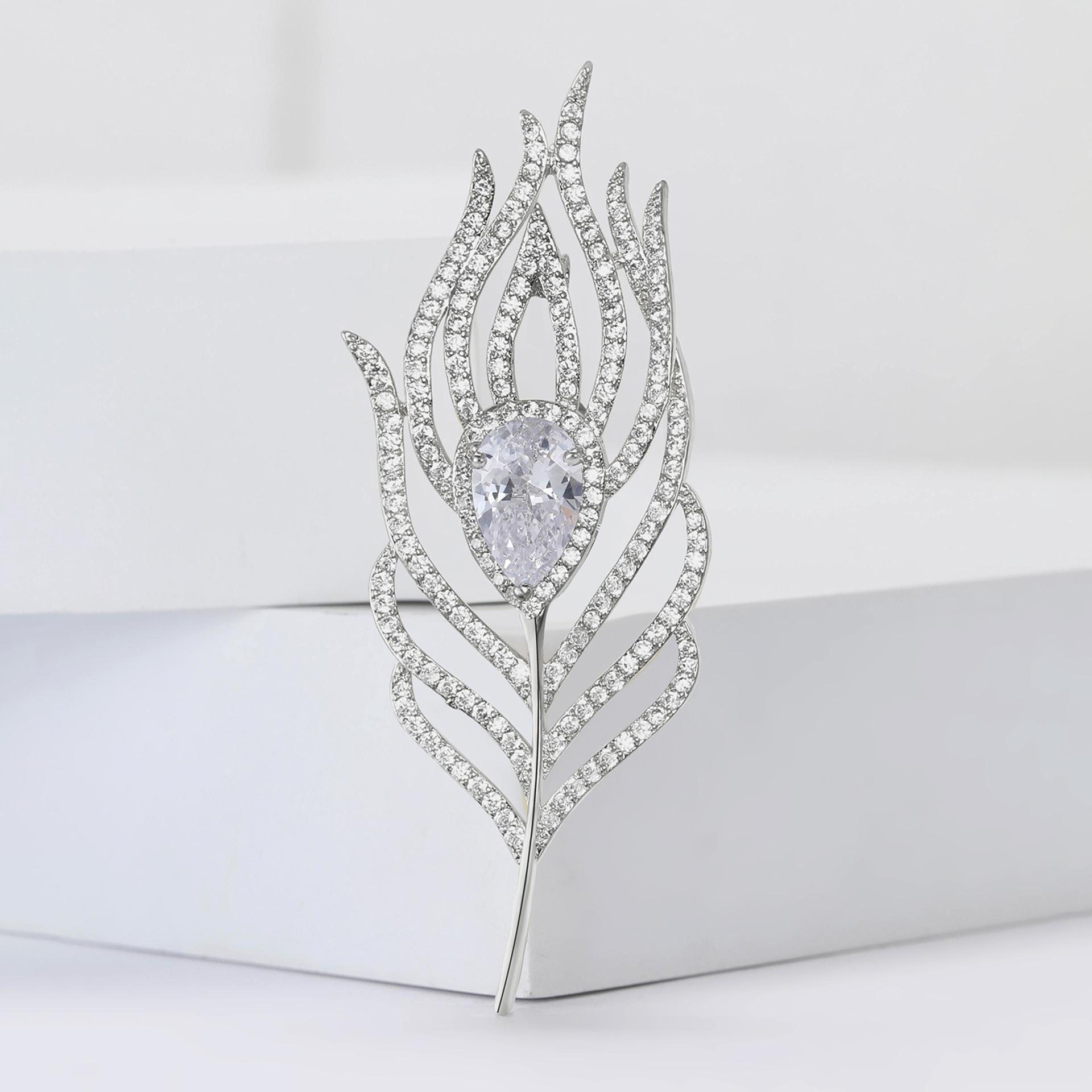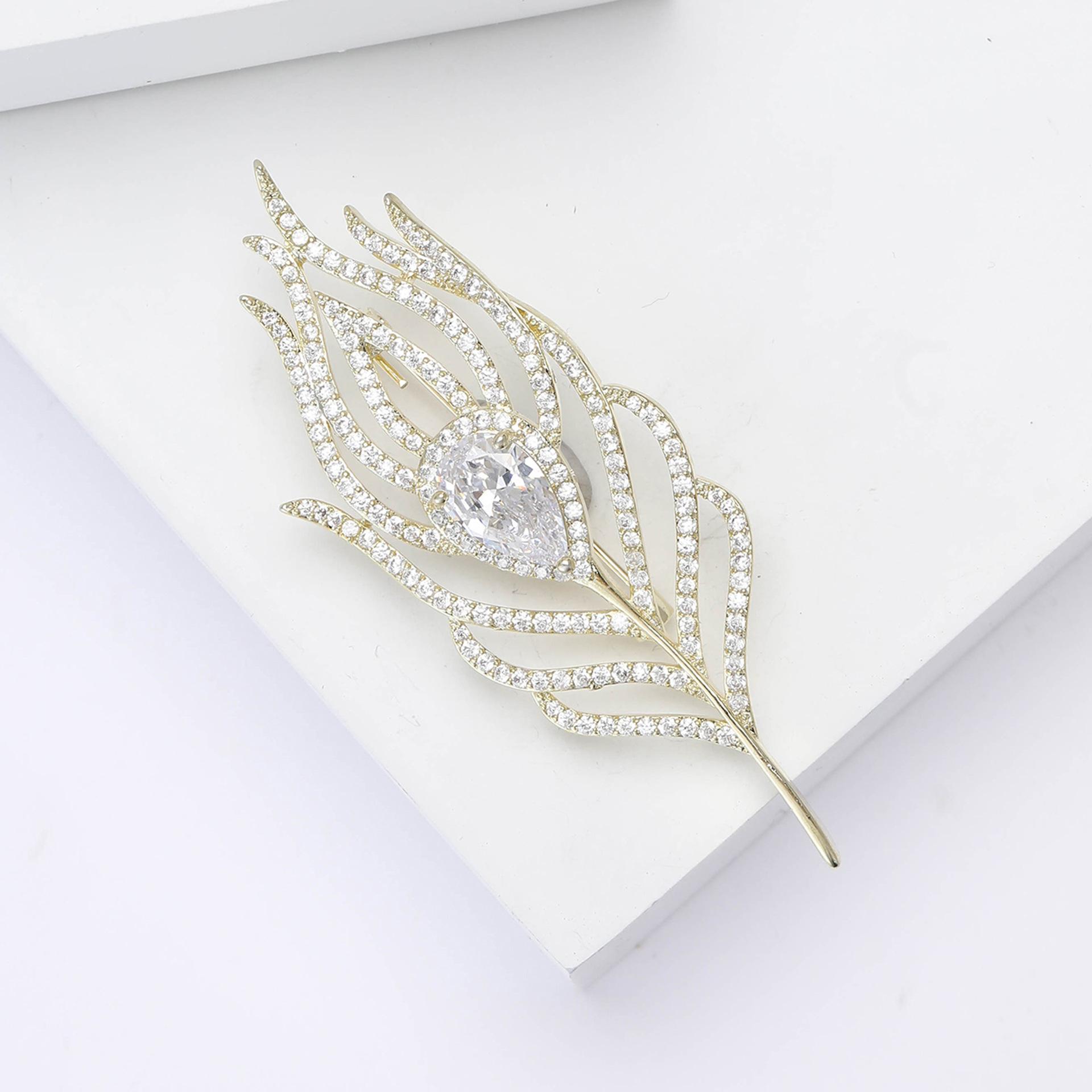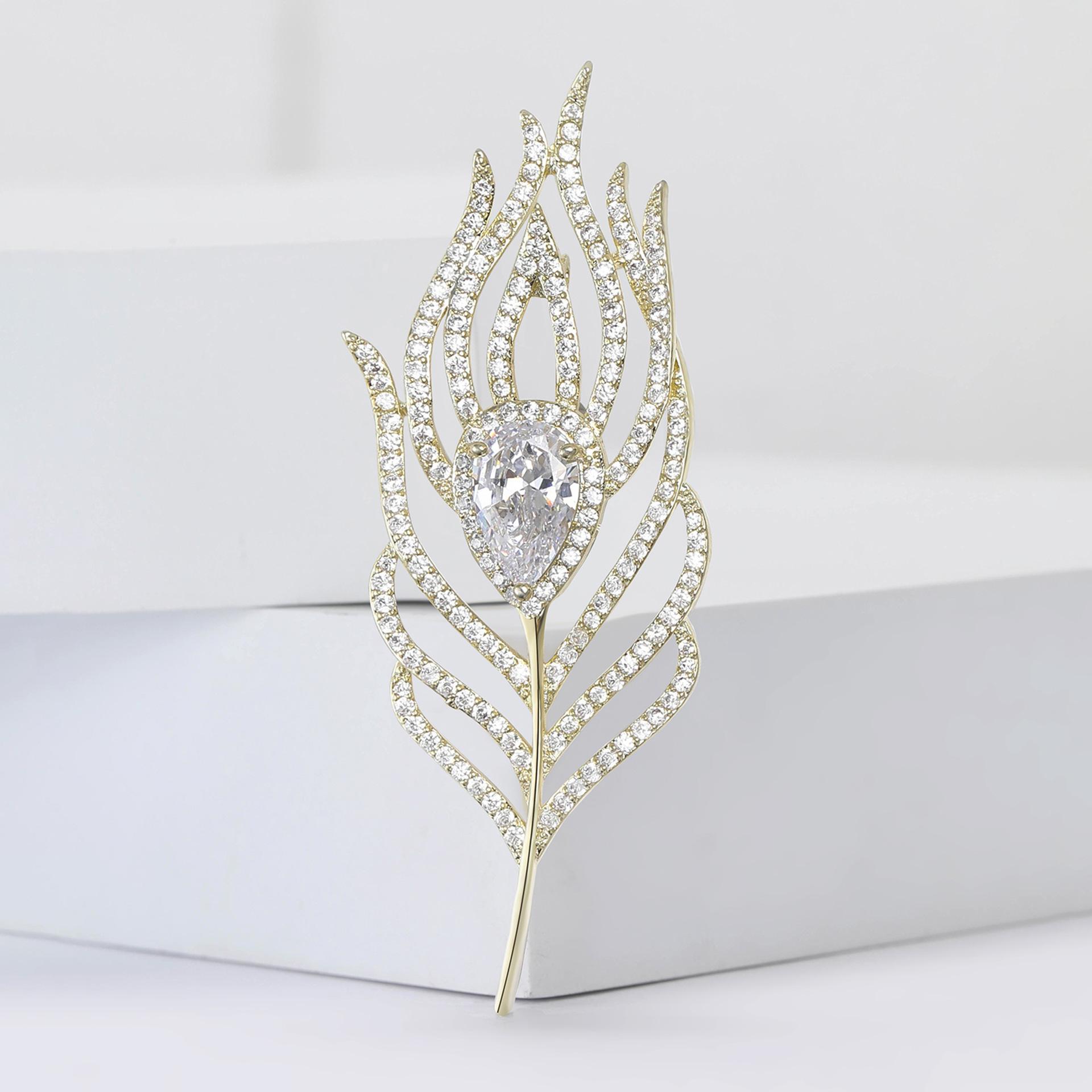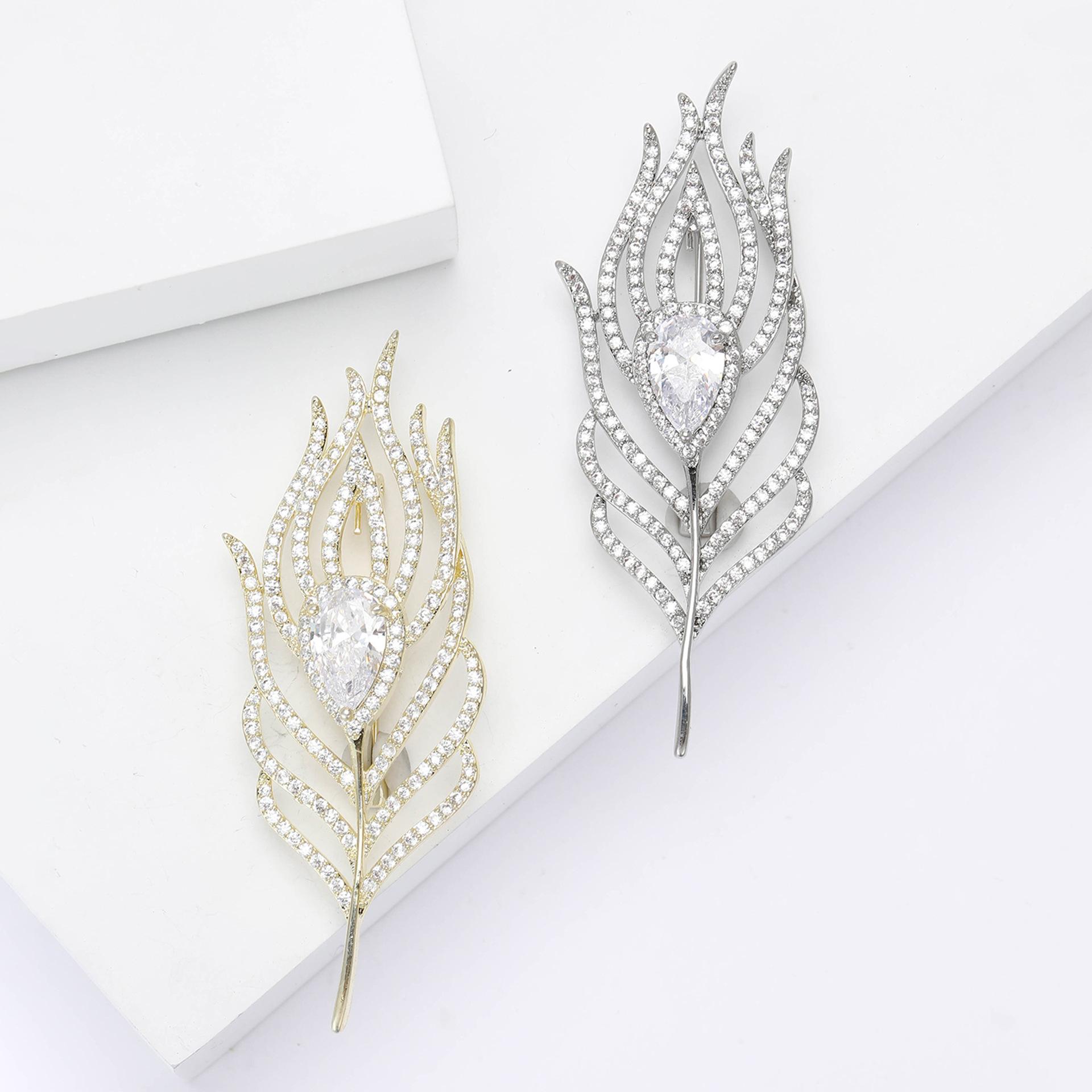 Broche de plumas de circón de cobre con microincrustaciones, elegante, de estilo coreano, ligero, de lujo, de alta gama, para mujer, con ramillete, joyería