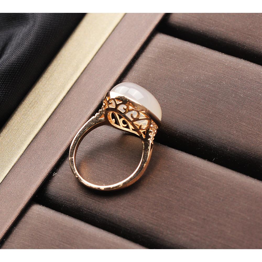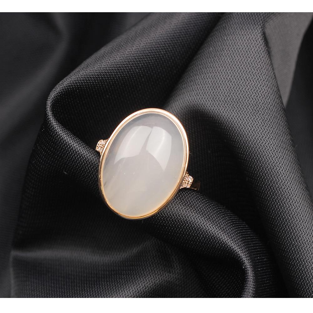 Nuevo anillo de calcedonia ovalada retro, costoso anillo de dedo de gas para mujer, anillo de oro rosa con micro incrustaciones, una generación de cabello