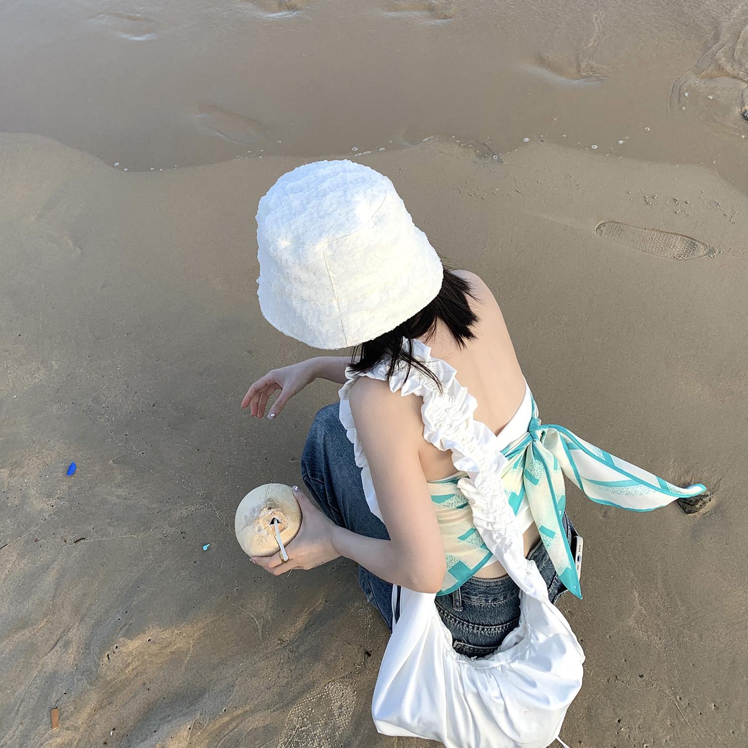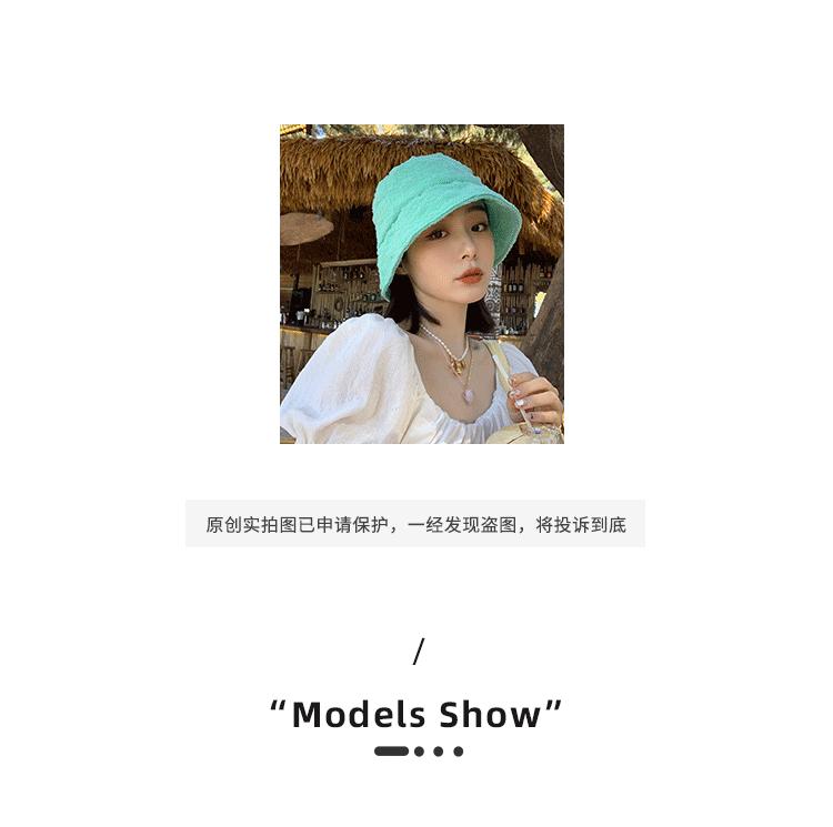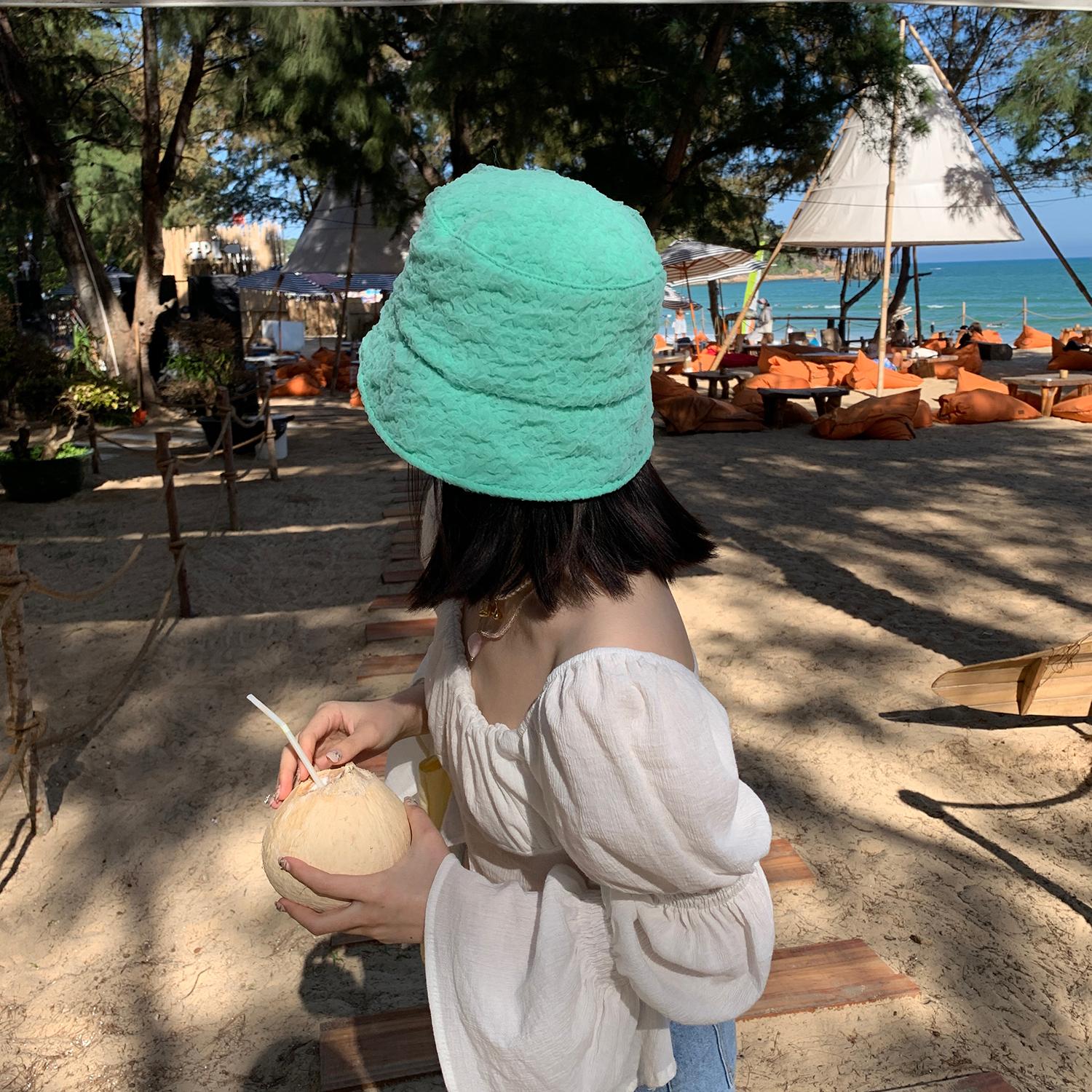 Sombrero de pescador plisado de seersucker para mujer, moda de celebridades de Internet, sombrero de pescador con protección solar japonés de verano para mujer