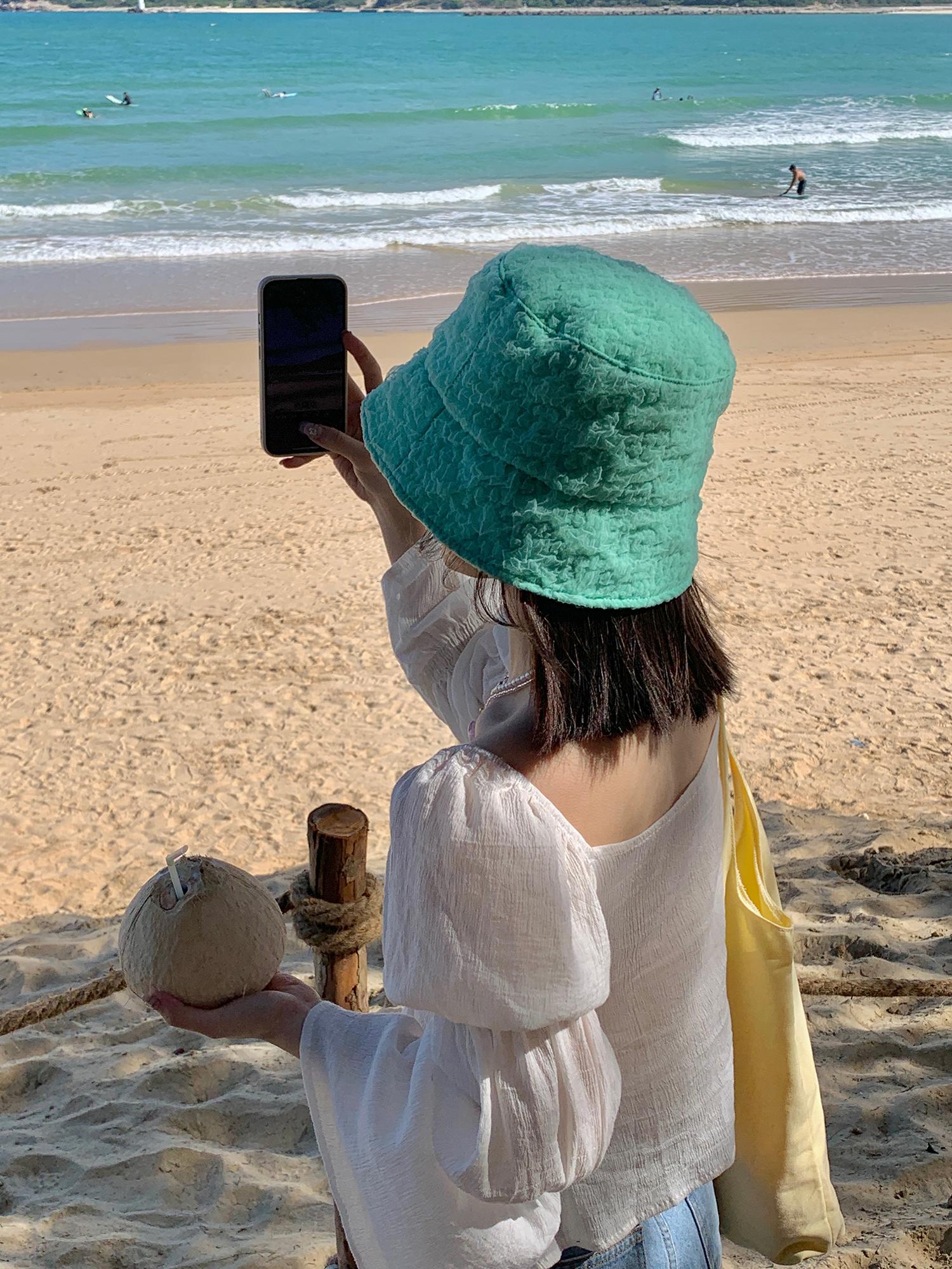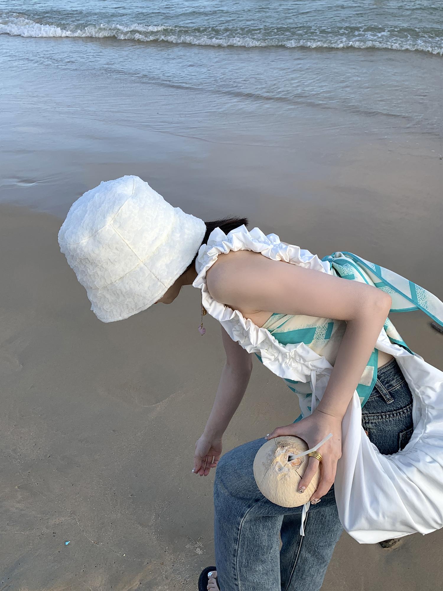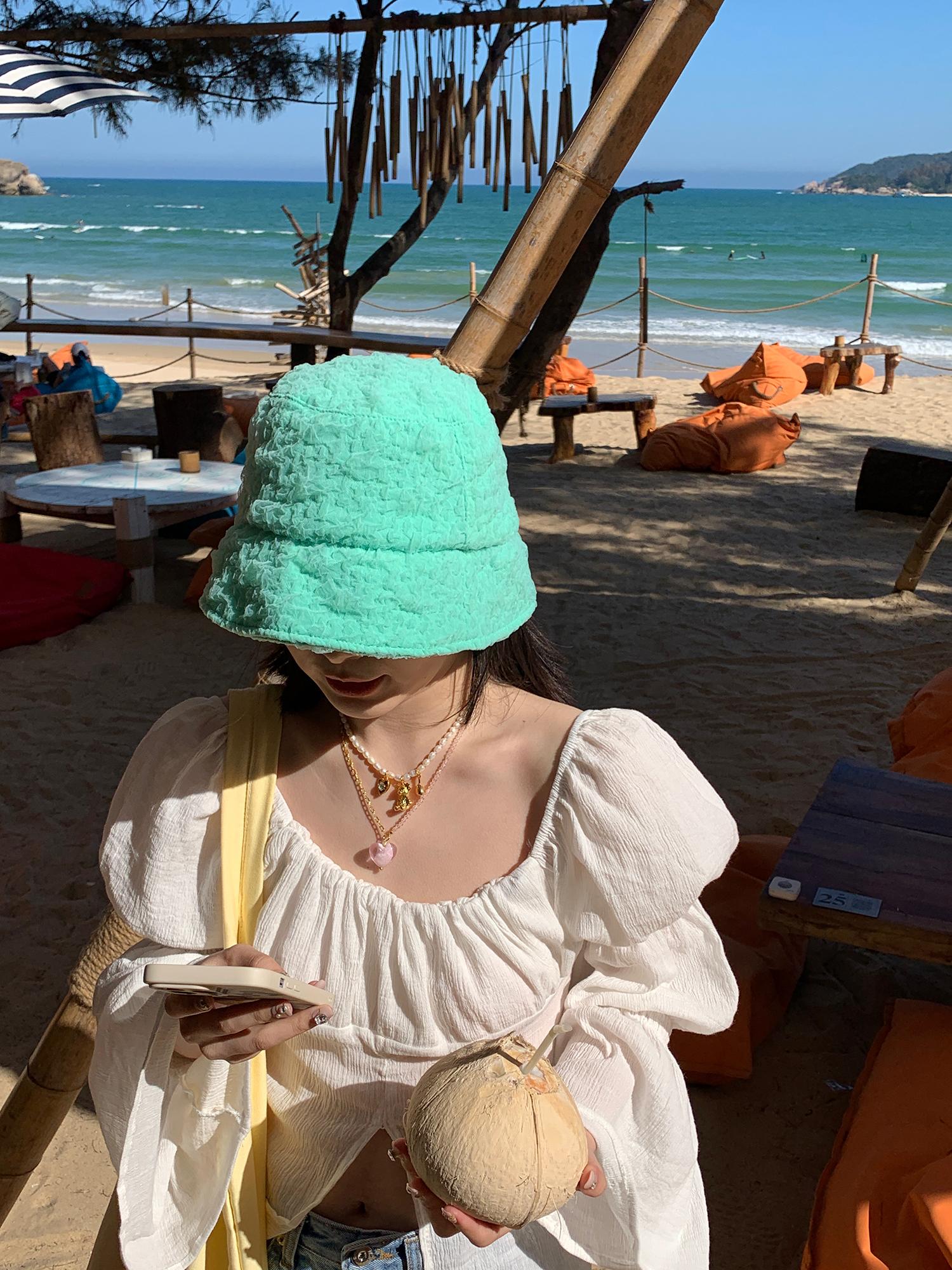 Sombrero de pescador plisado de seersucker para mujer, moda de celebridades de Internet, sombrero de pescador con protección solar japonés de verano para mujer
