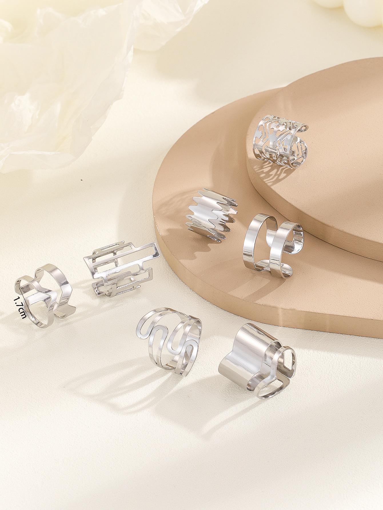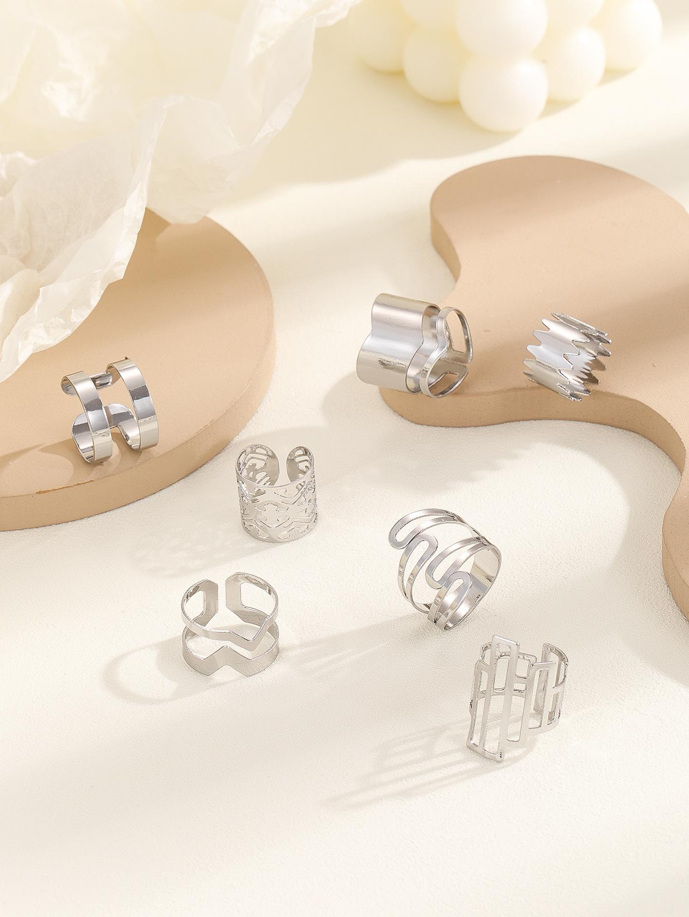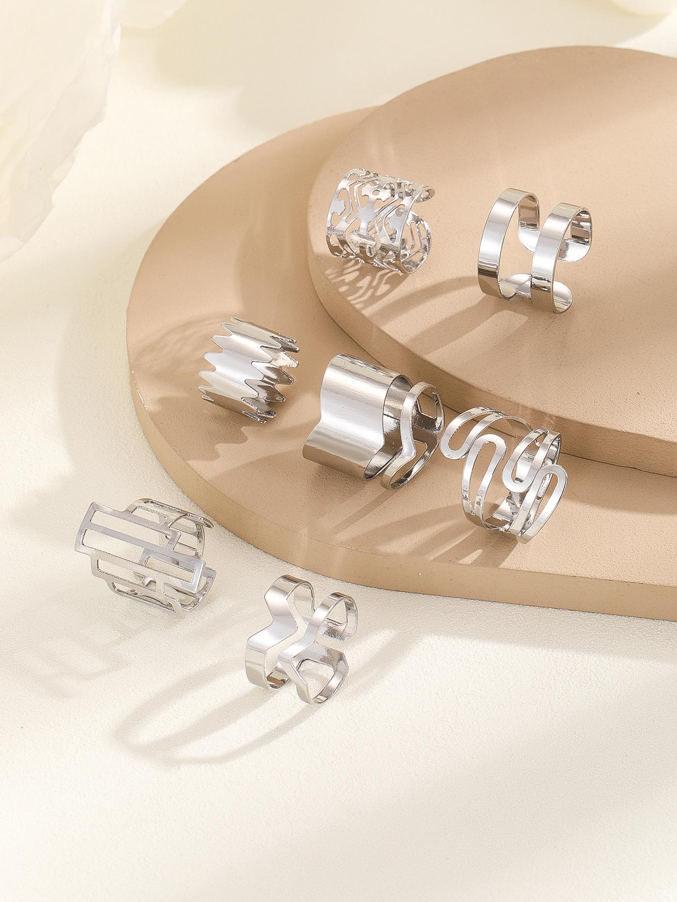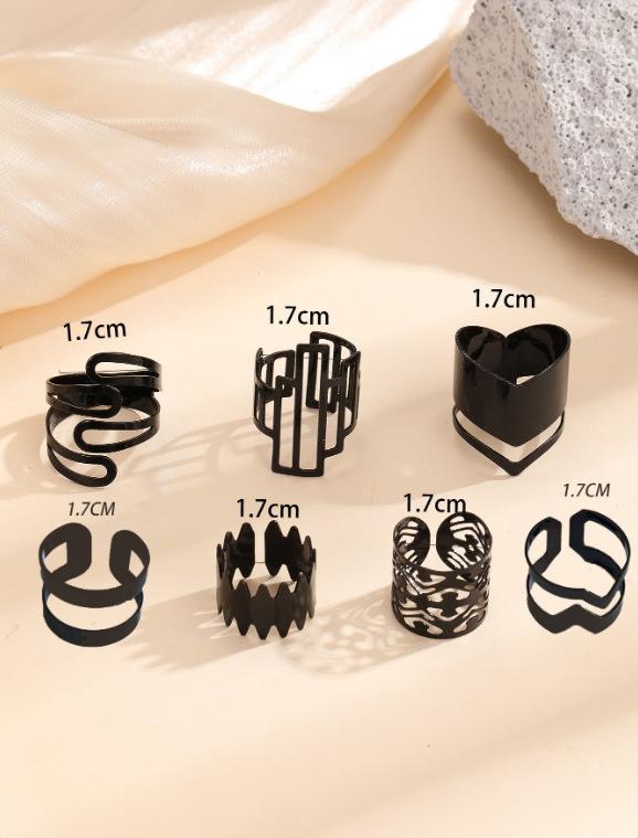Popular moda estilo oscuro serie 7 piezas anillo geométrico hueco