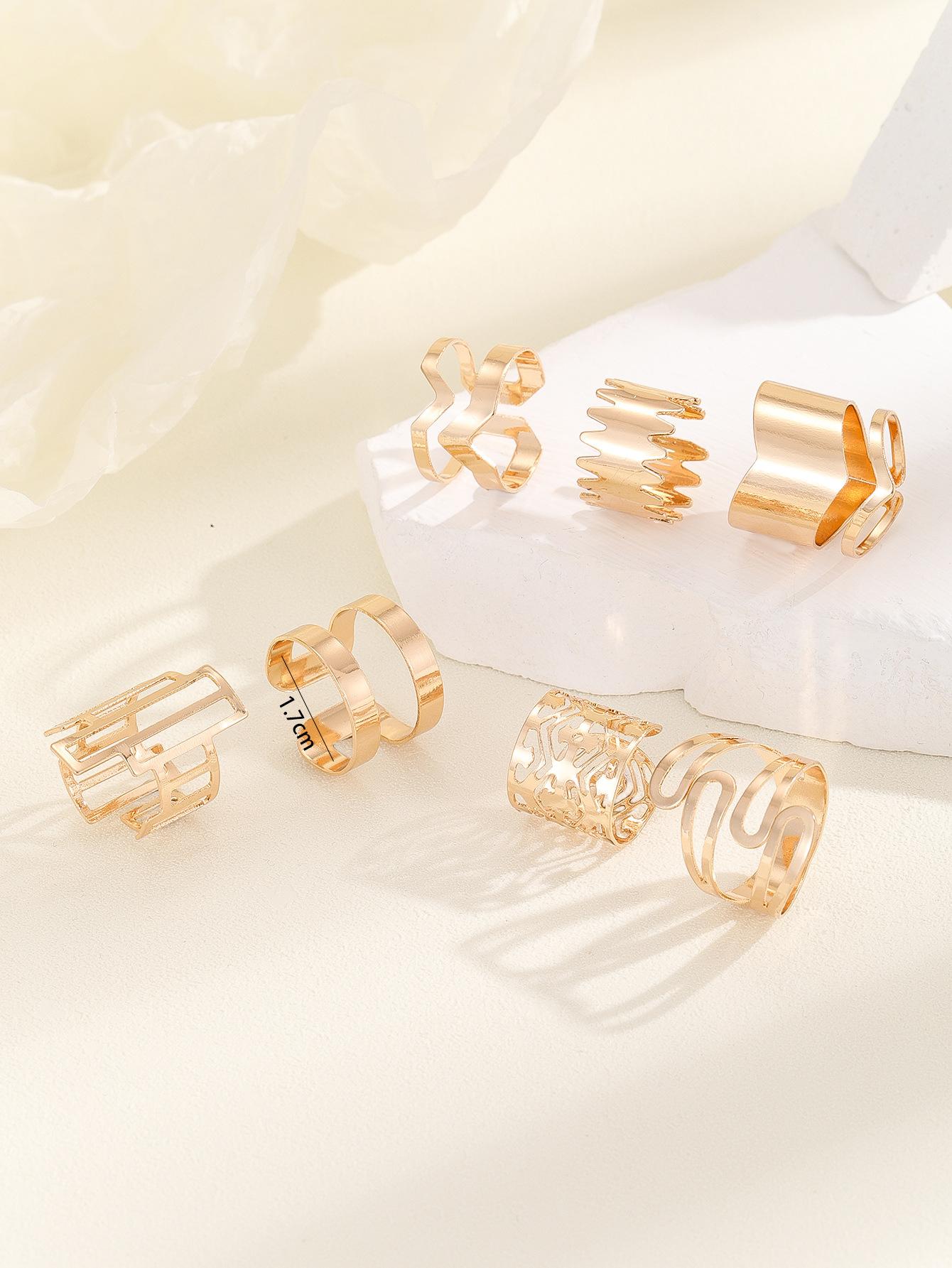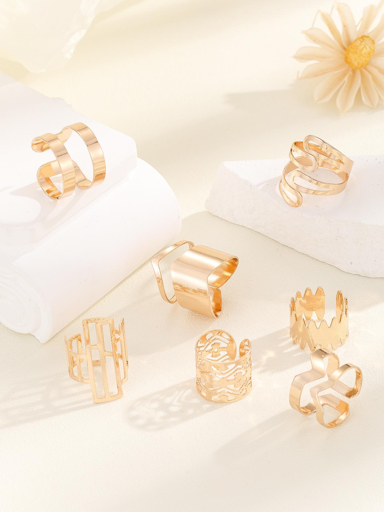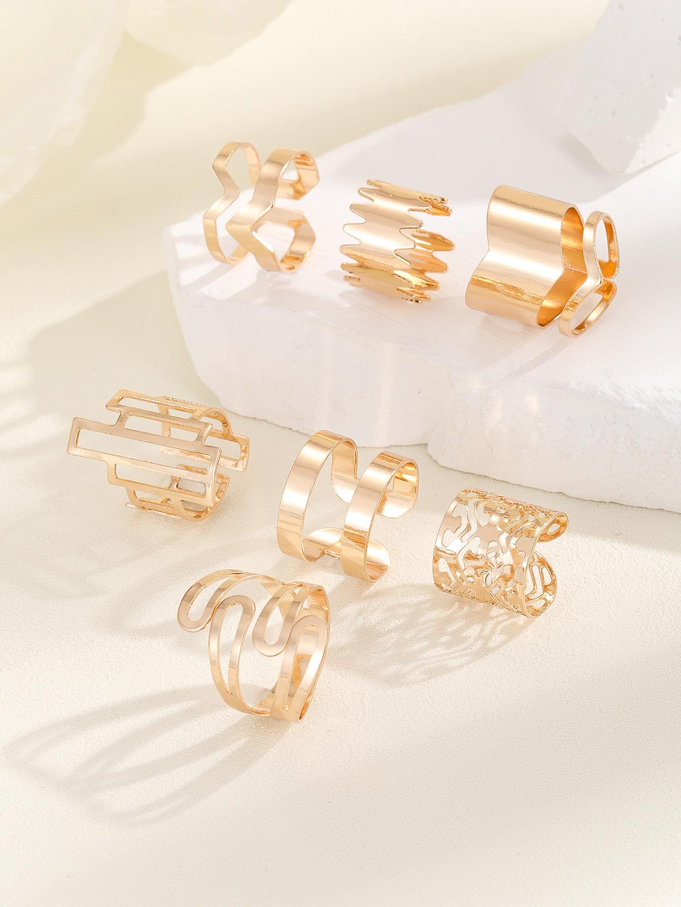 Popular moda estilo oscuro serie 7 piezas anillo geométrico hueco