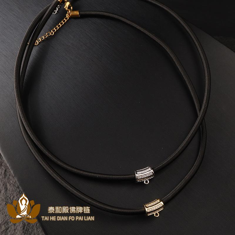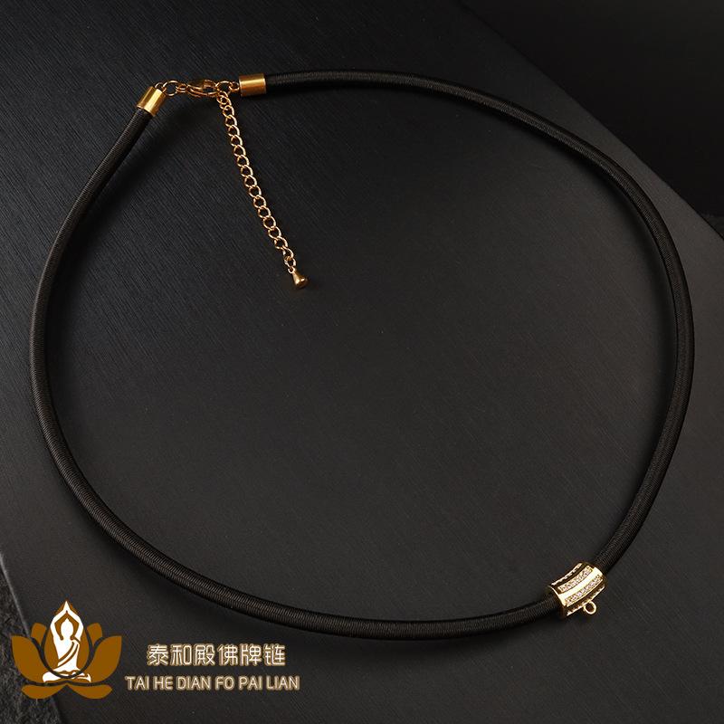 Collar Amuleto Tailandés, Cadena Clavicular, 4 mm de Grosor, Chapado en Oro, Micropavé de Diamantes, Collar de Cordón Elástico