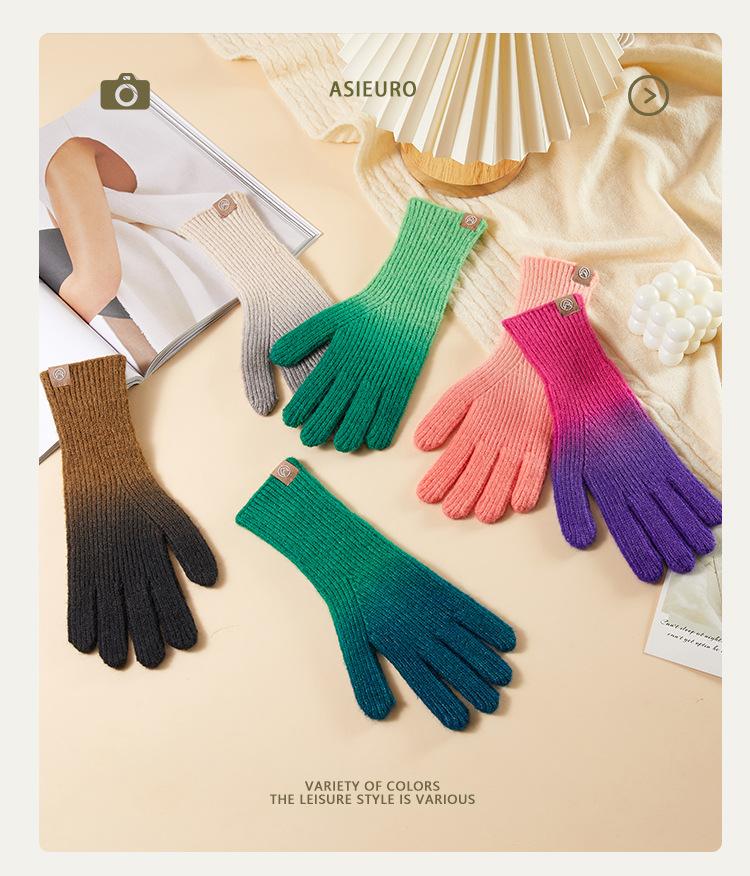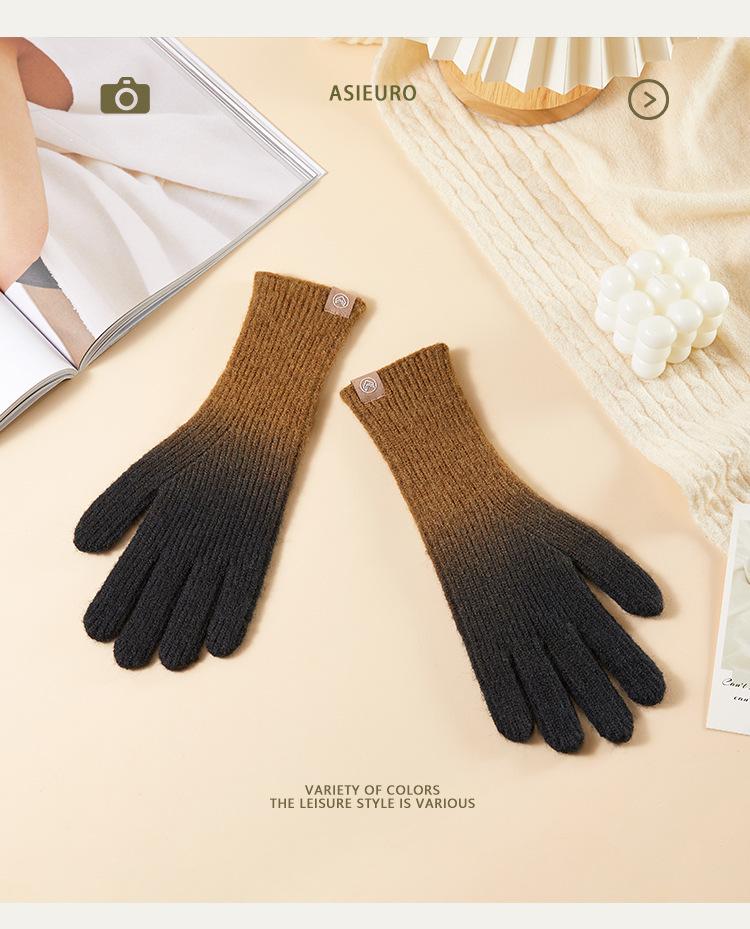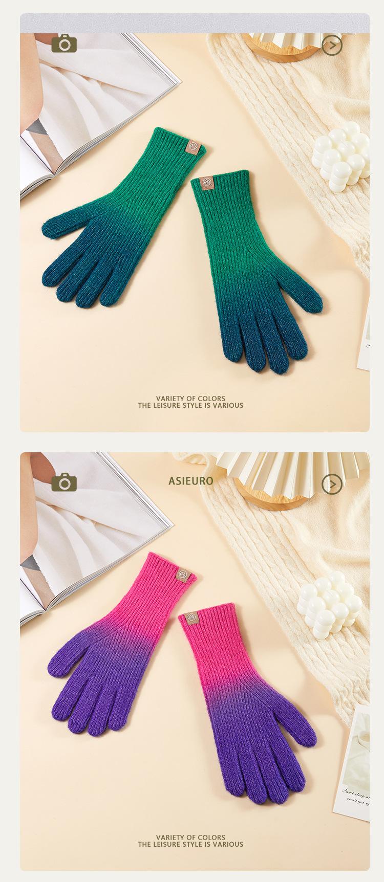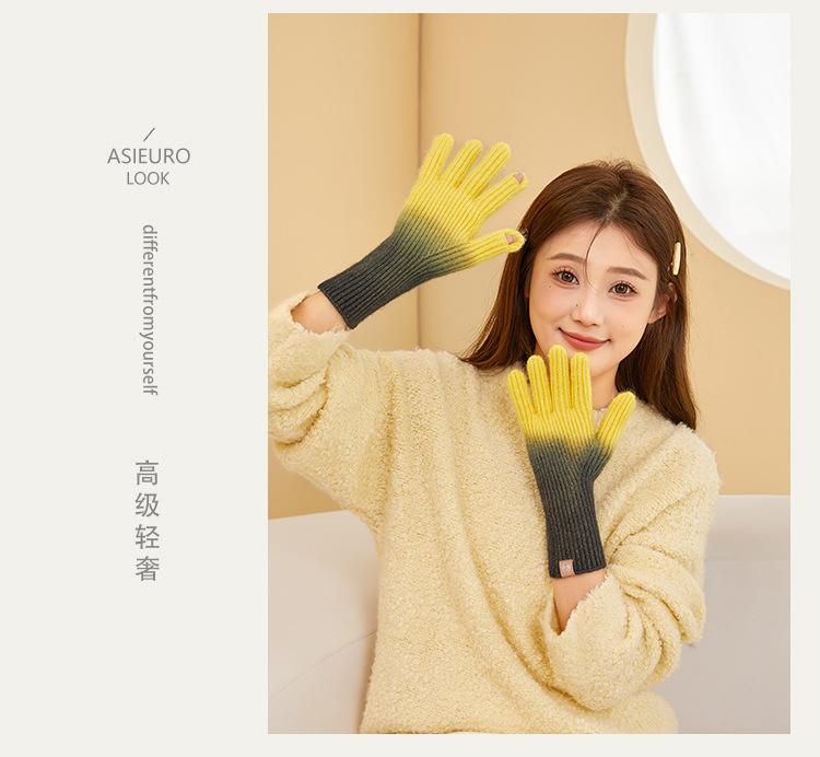 Guantes de punto cálidos con forro polar de Corea del Sur para mujer, venta al por mayor, con pantalla táctil, color degradado, estilo coreano, guantes largos con dedos abiertos