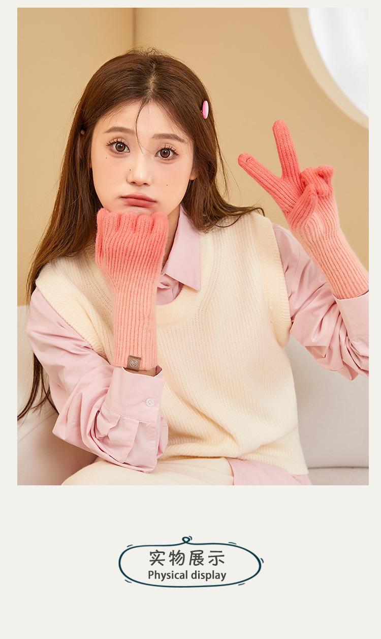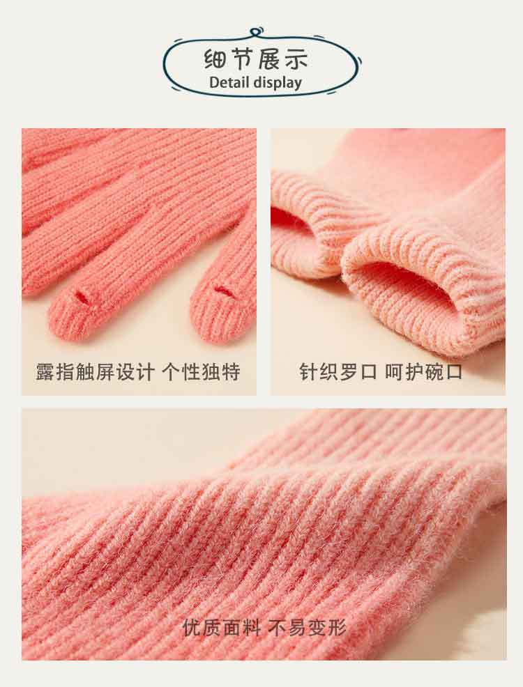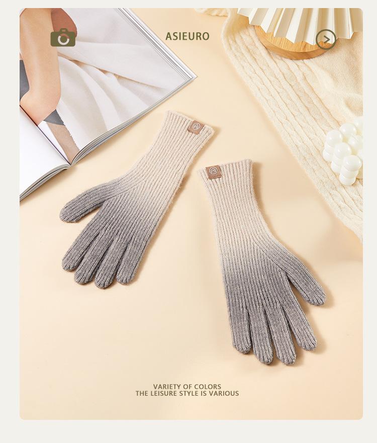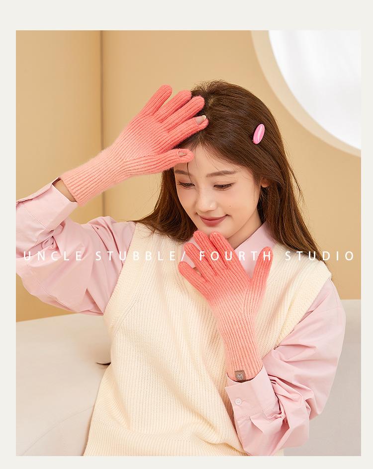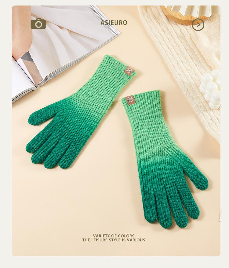 Guantes de punto cálidos con forro polar de Corea del Sur para mujer, venta al por mayor, con pantalla táctil, color degradado, estilo coreano, guantes largos con dedos abiertos