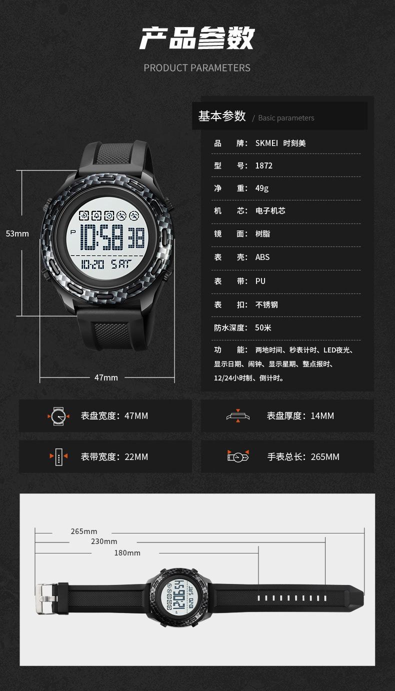 Reloj deportivo para hombre de la marca de moda SKMEI, multifuncional para exteriores, reloj electrónico para hombre de secundaria 1872