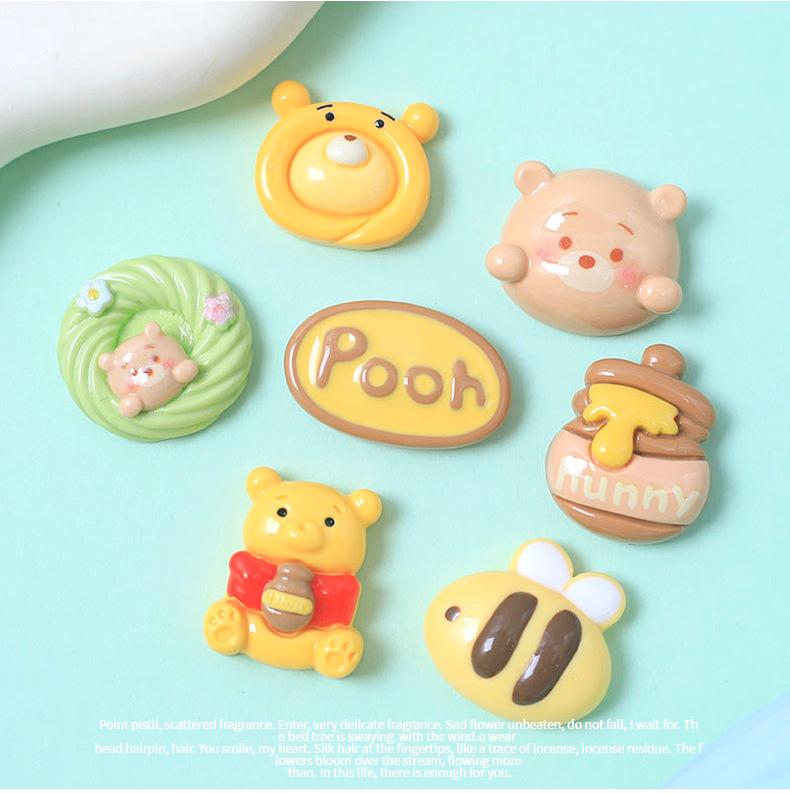 Pegamento en crema, joyería de dibujos animados, material hecho a mano, lindo parche de oso Pooh, funda para teléfono, accesorios de resina de oso