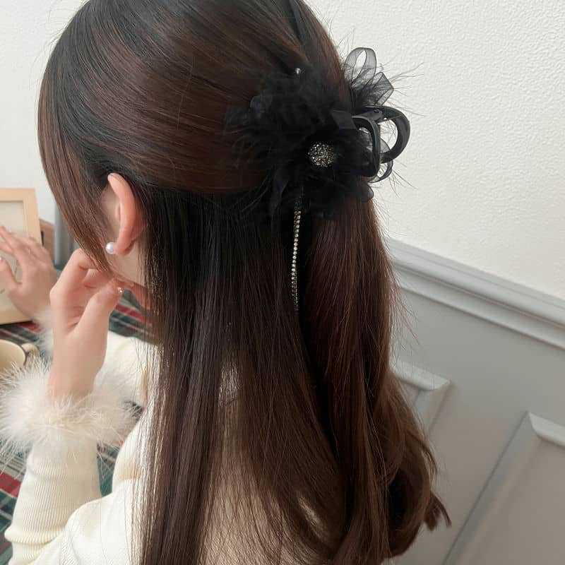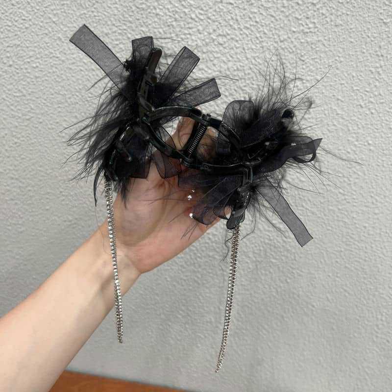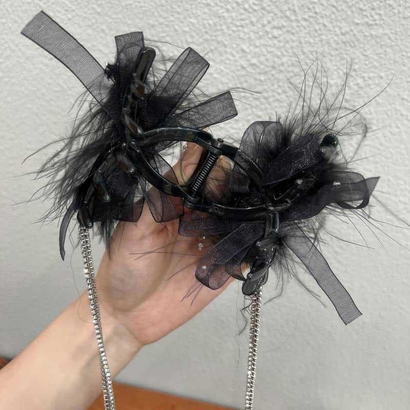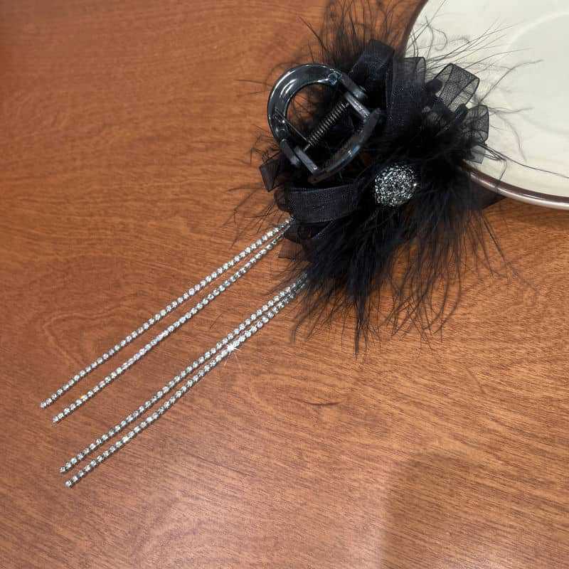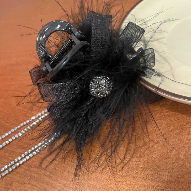 Horquilla de plumas con borla de lazo de cinta de alta calidad para mujer 2023 nuevo clip para el cabello para moño en la parte posterior de la cabeza, clip de tiburón