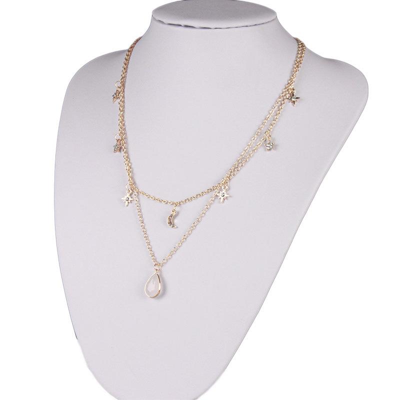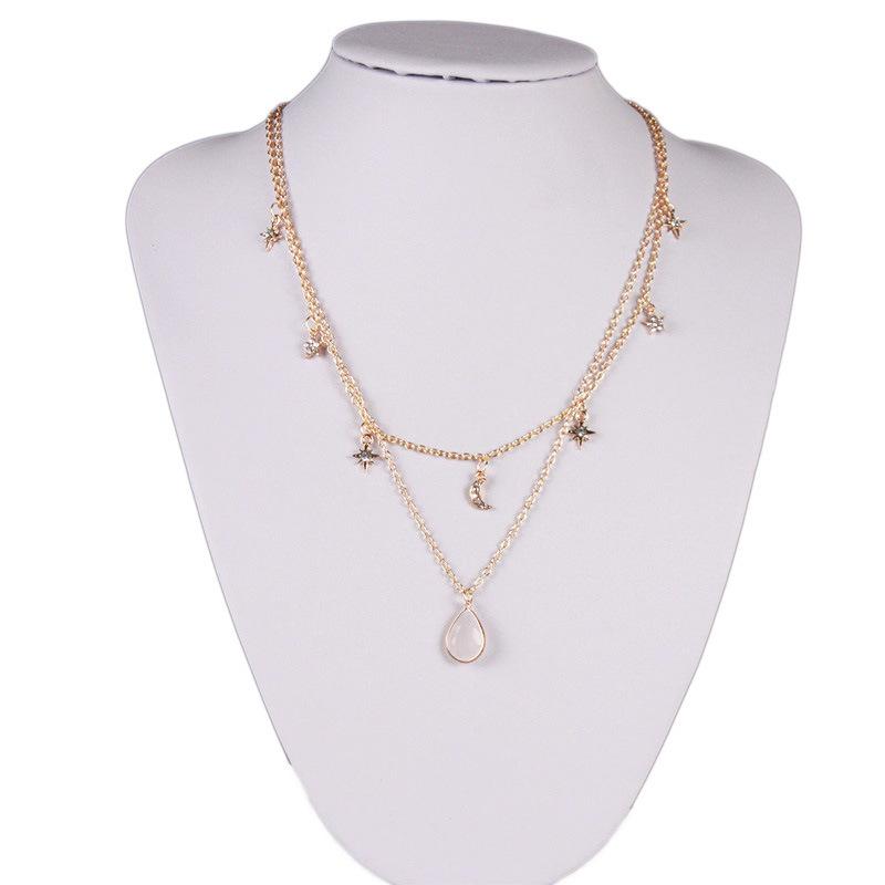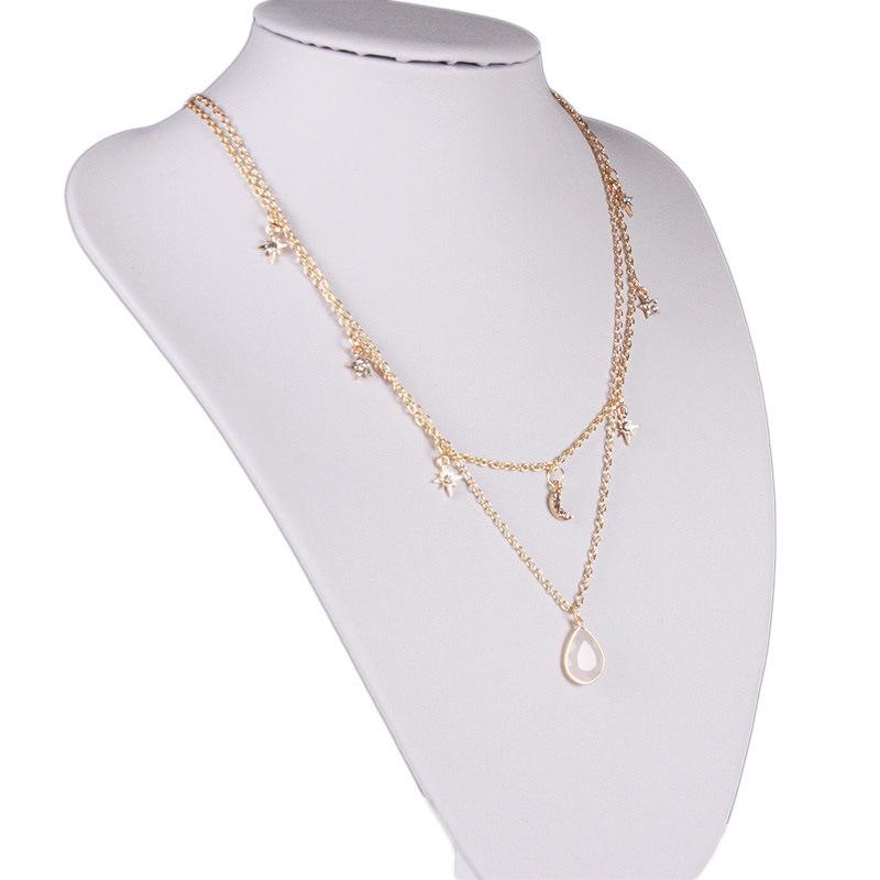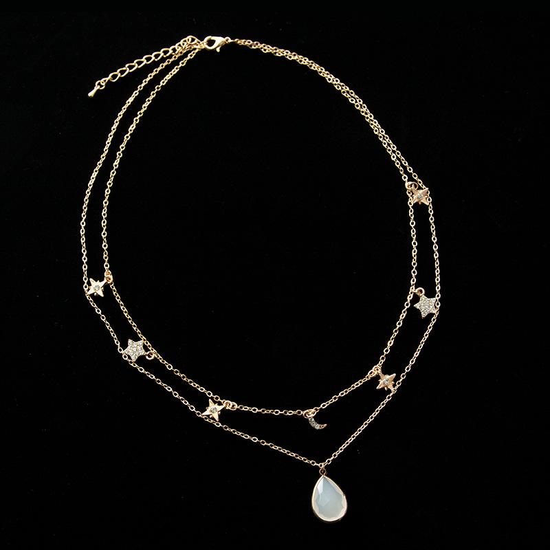 Moda europea y americana personalizada estrella de cinco puntas gema con incrustaciones de diamantes doble capa nicho de temperamento de lujo ligero collar de alta gama al por mayor