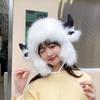 Gorro Mao Lei Feng con diseño de vaca negra grande y cuerno de alce, para hombre y mujer, cálido, de invierno, con protección auditiva, personalizado, resistente al viento y al frío, de algodón.