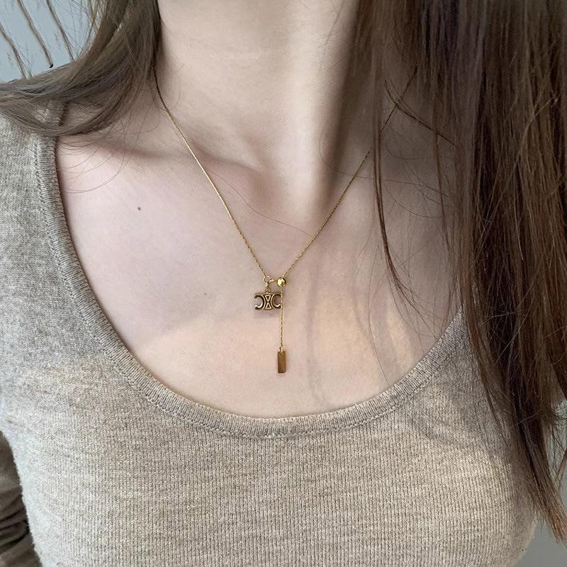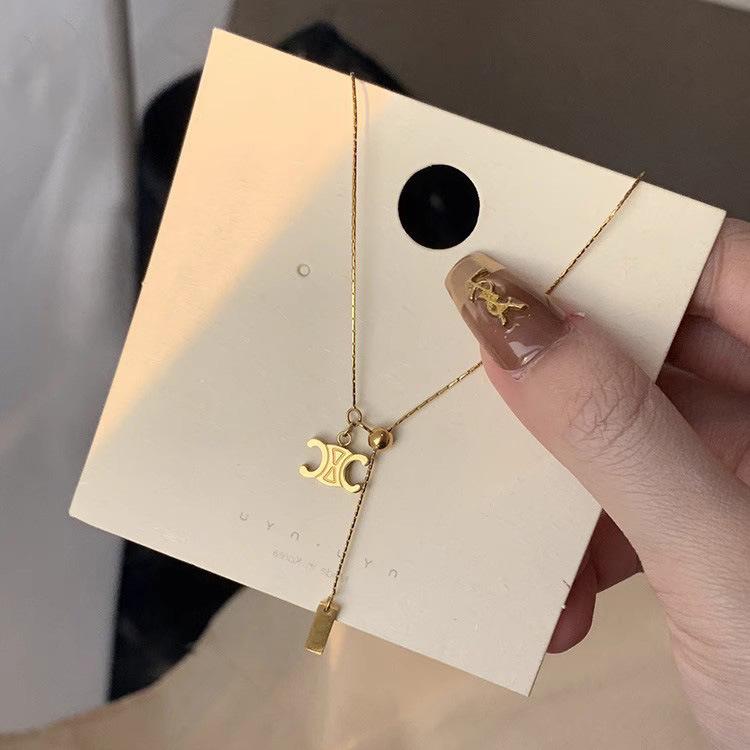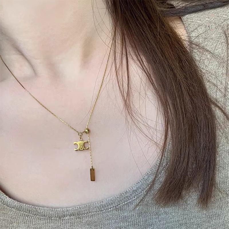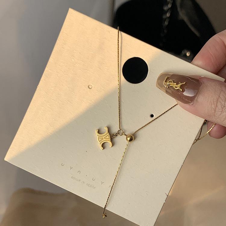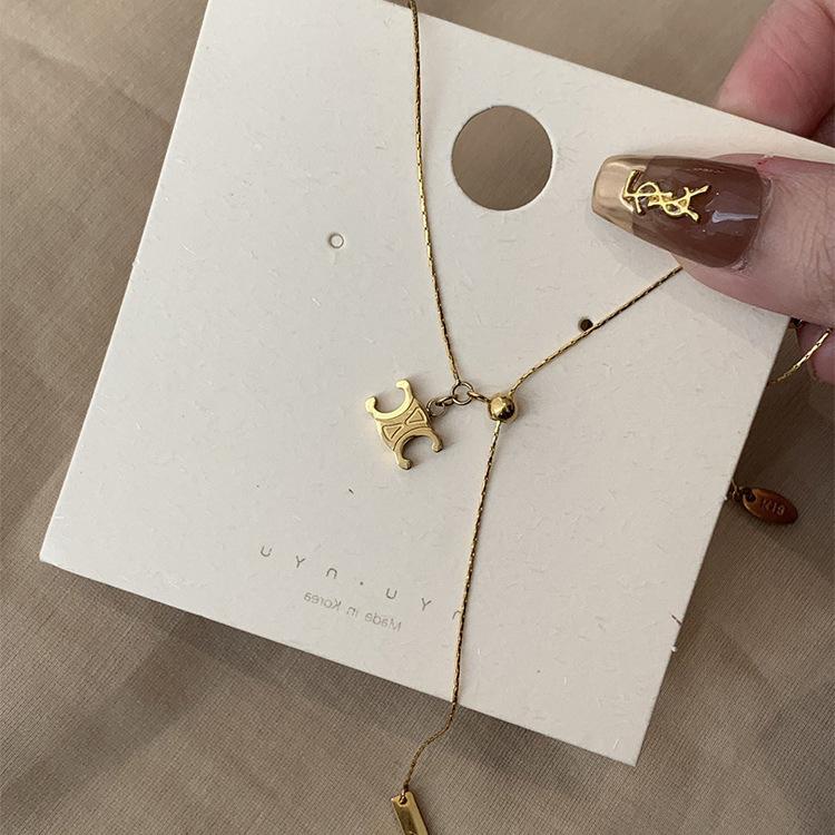 Collar con colgante de Arco del Triunfo de una celebridad de Internet, chapado en oro de 18 quilates, cadena de clavícula, regalo de cumpleaños para novia.