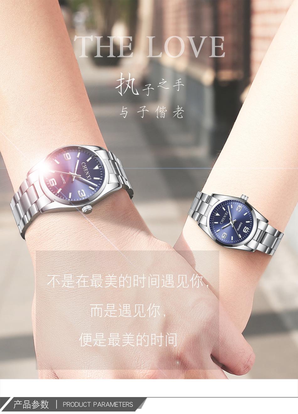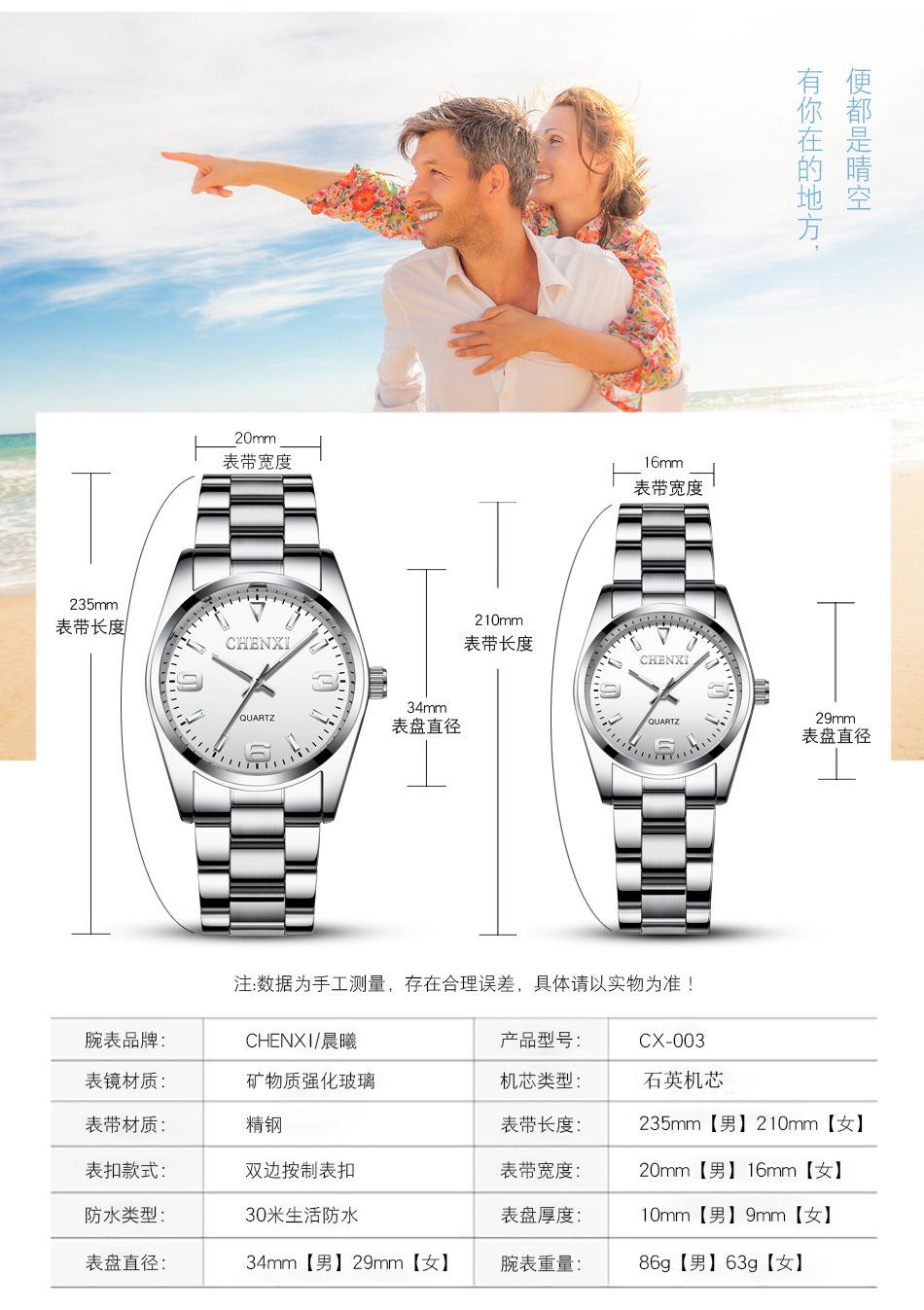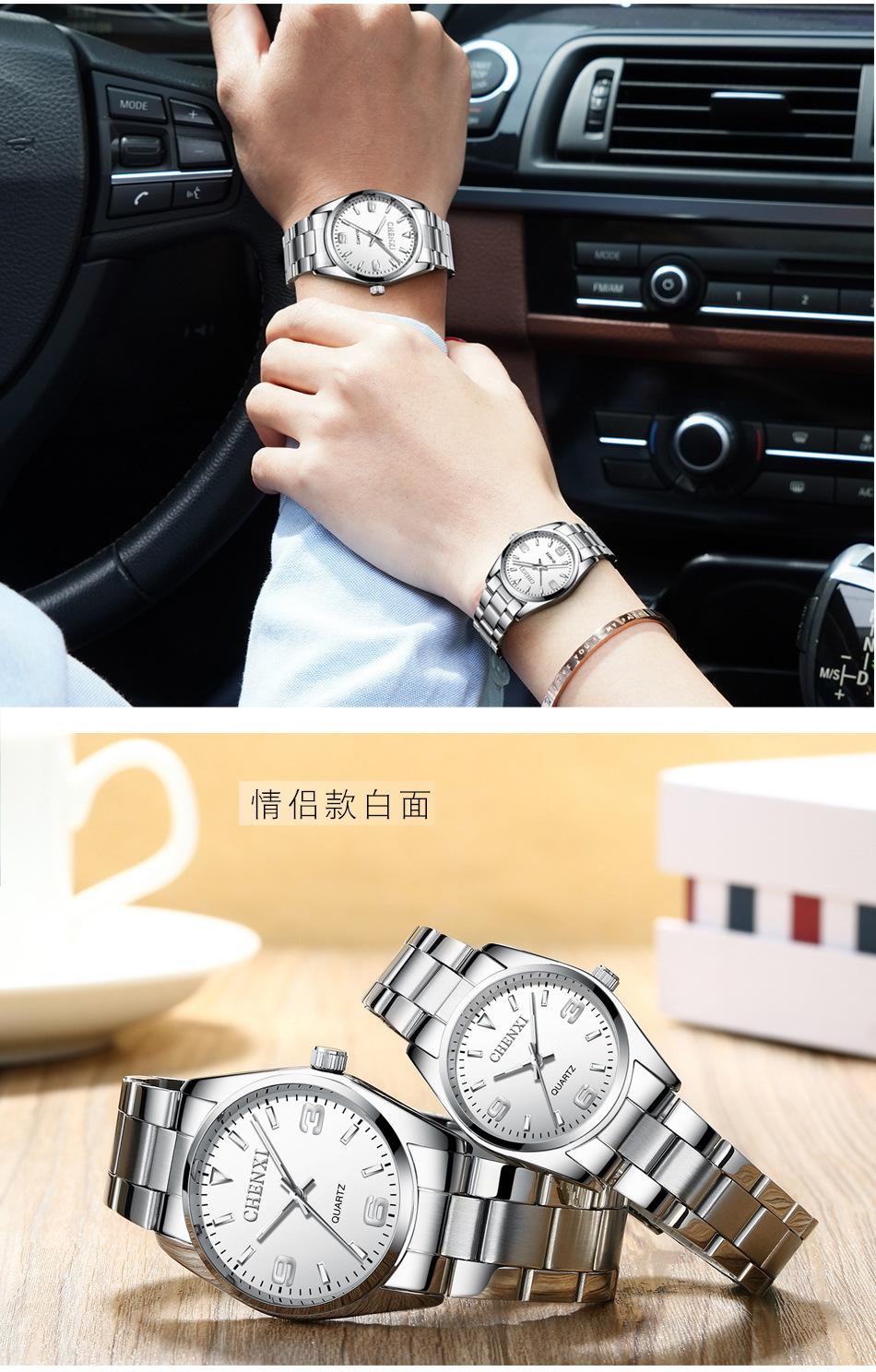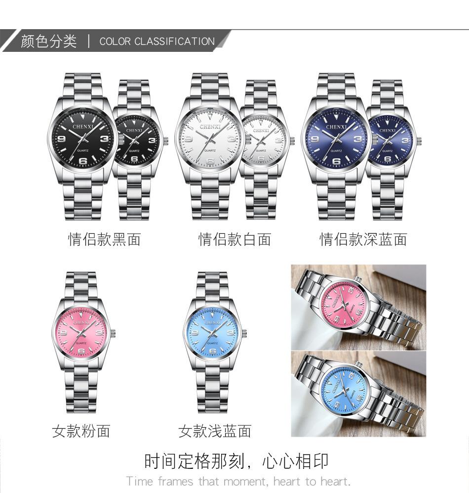 Reloj de pareja Dawn CHENXI, venta al por mayor, para hombre y mujer, con correa de acero y puntero de cuarzo, 003A