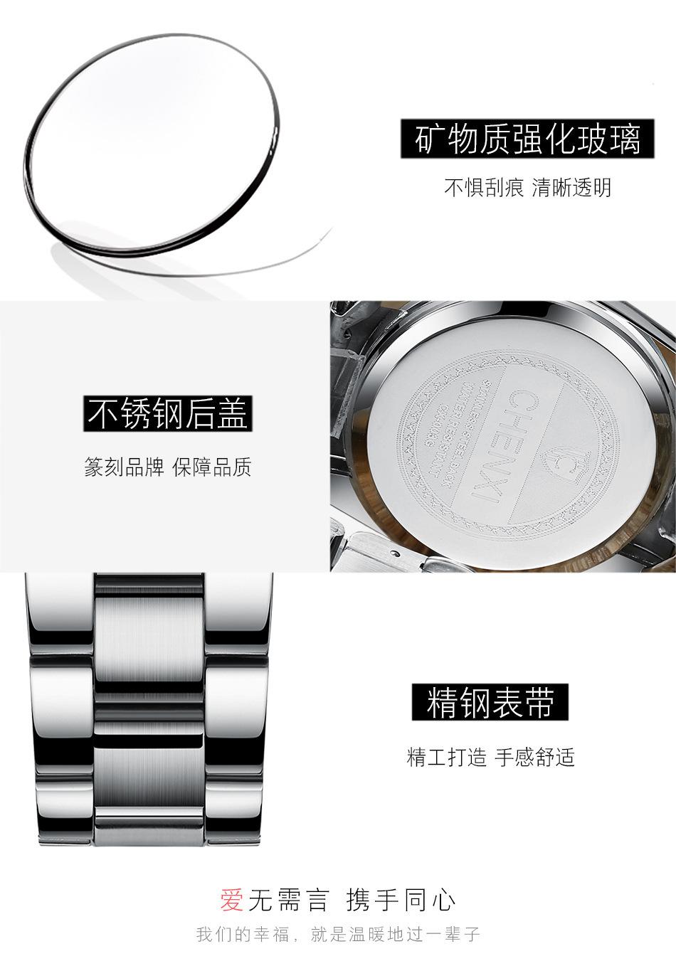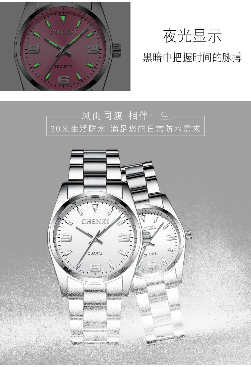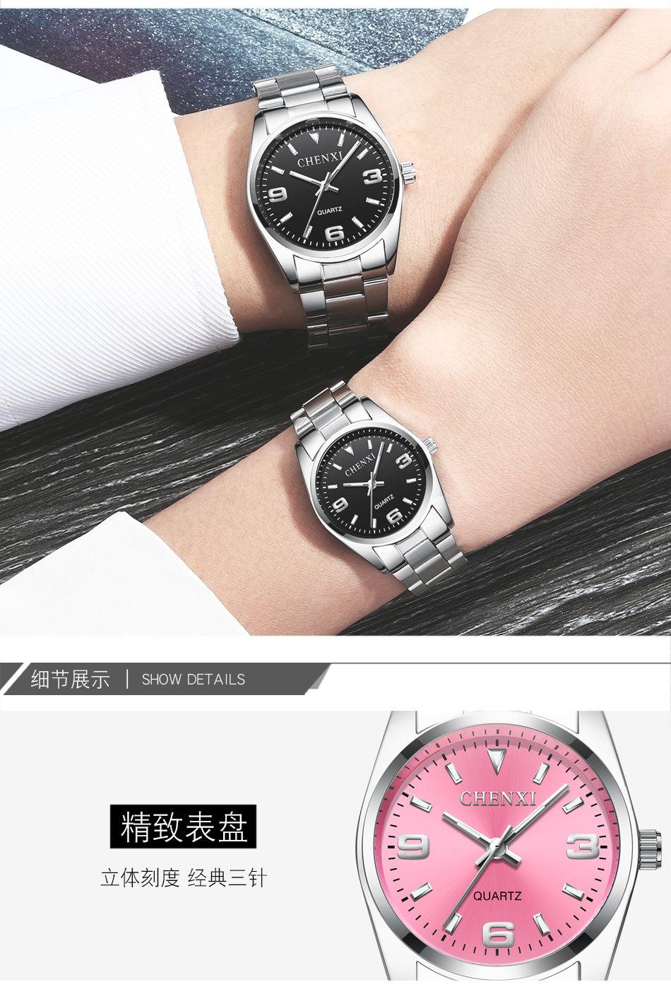 Reloj de pareja Dawn CHENXI, venta al por mayor, para hombre y mujer, con correa de acero y puntero de cuarzo, 003A