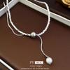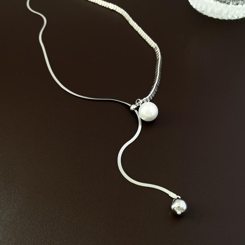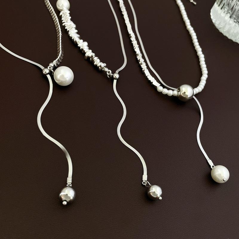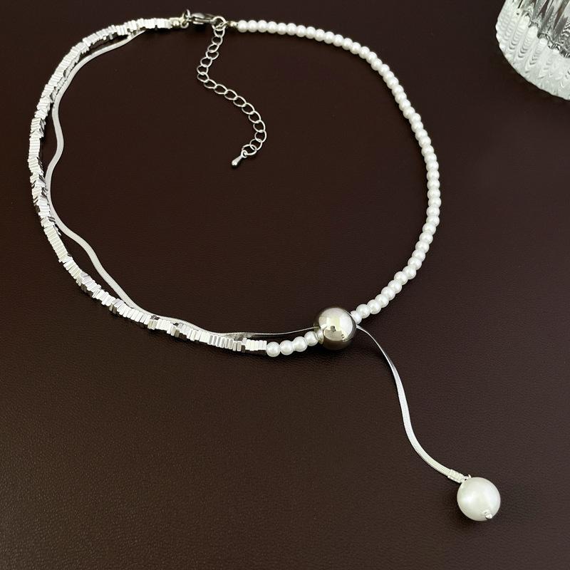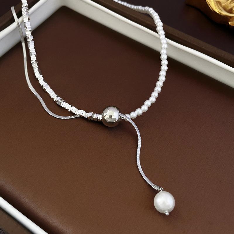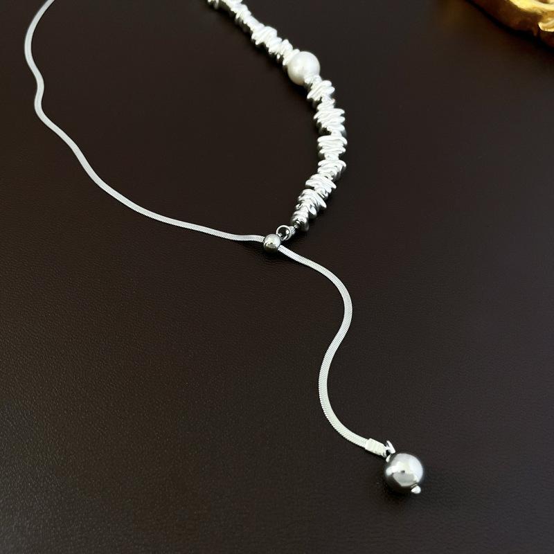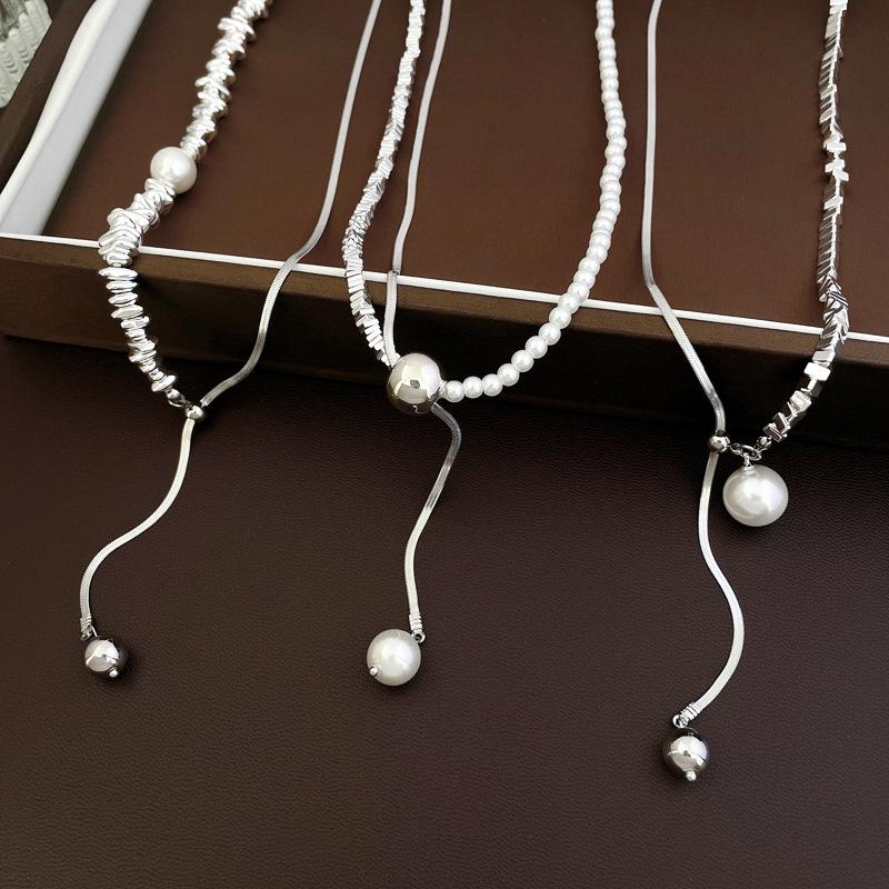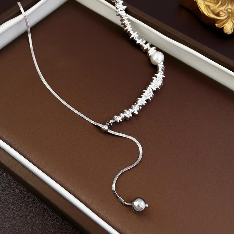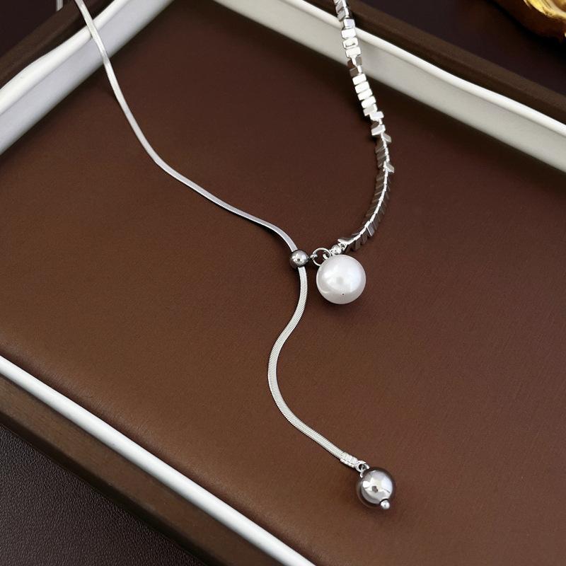 Collar con colgante de perla con costuras de plata rota francesa, estilo frío, estilo nicho, cadena de clavícula, collar sencillo y elegante.