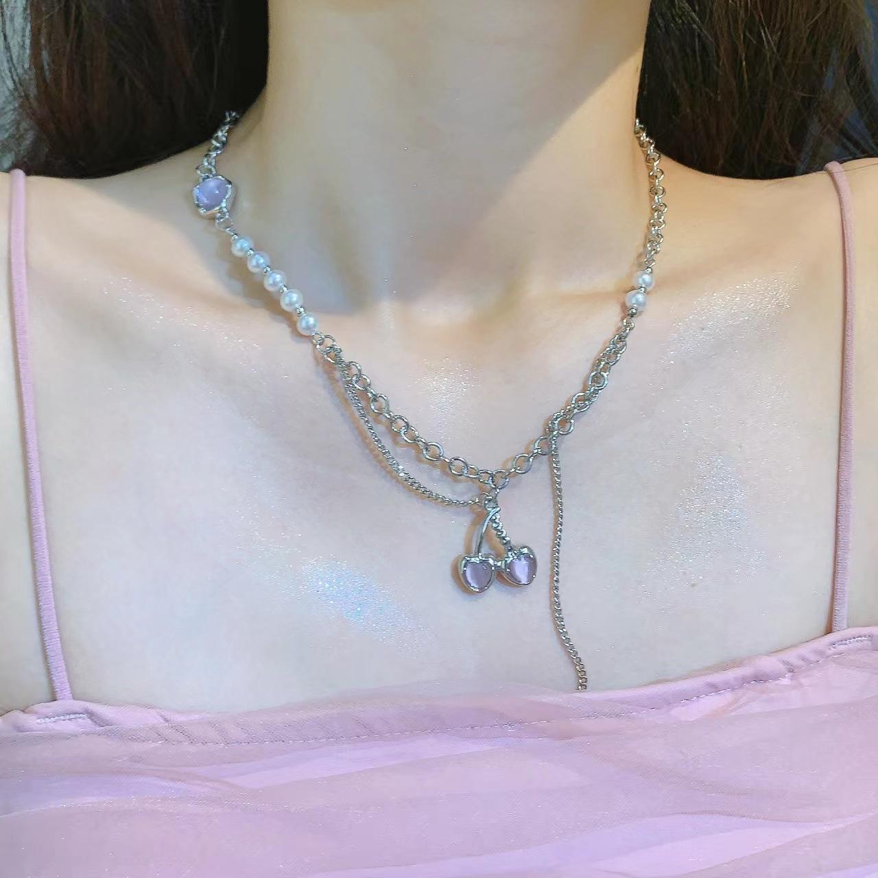 Collar Coreano Nuevo Estilo Cherry Girl Perla Metal Costuras Verano Dulce Estilo Cool ins Aretes Spice Girls Lujo Ligero Nicho