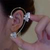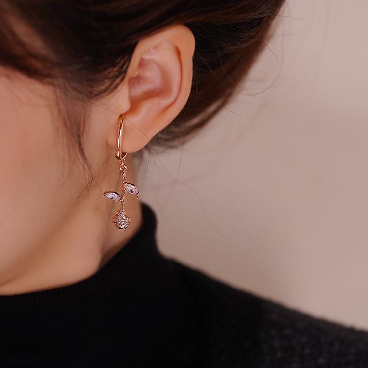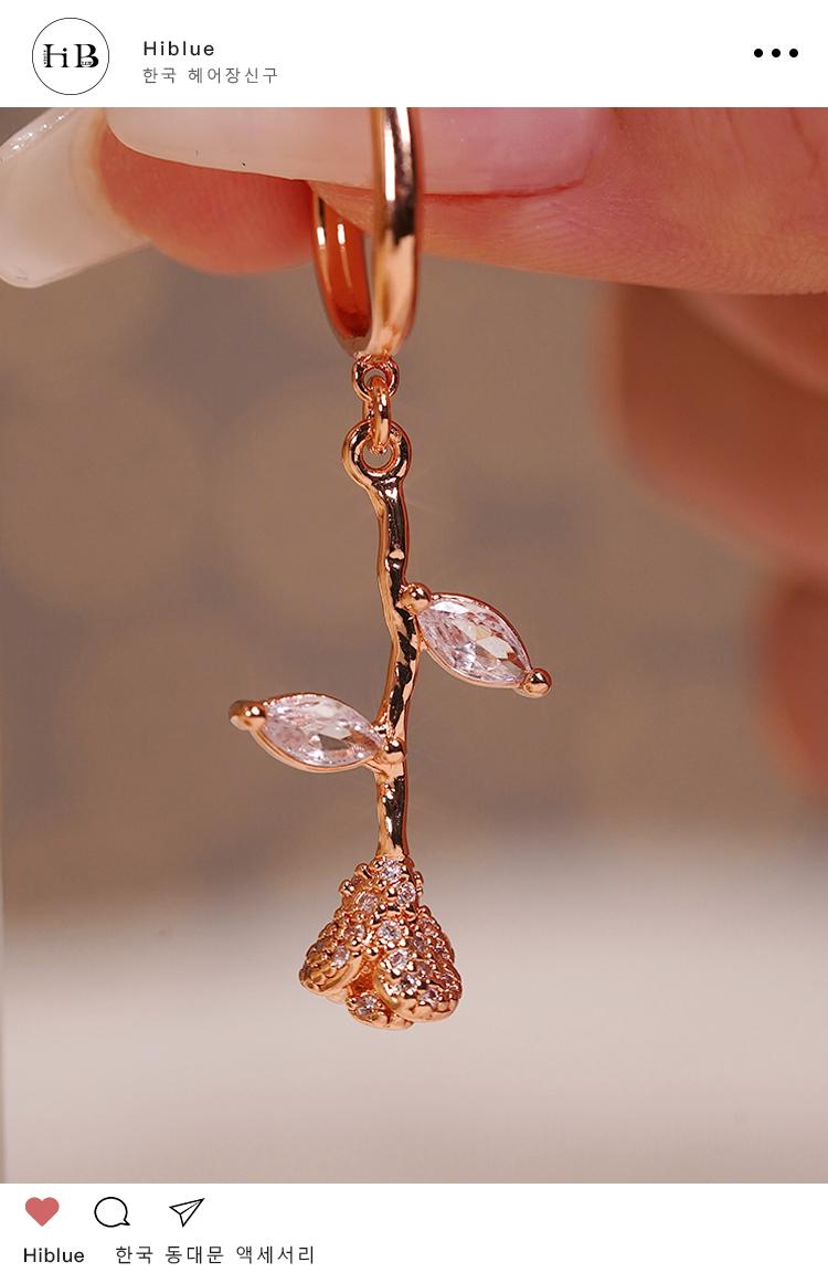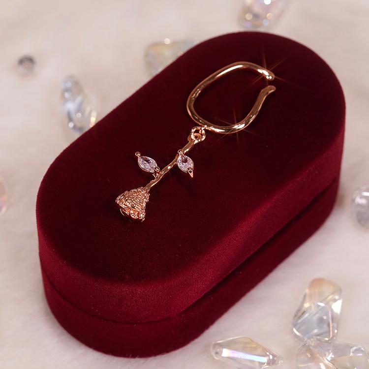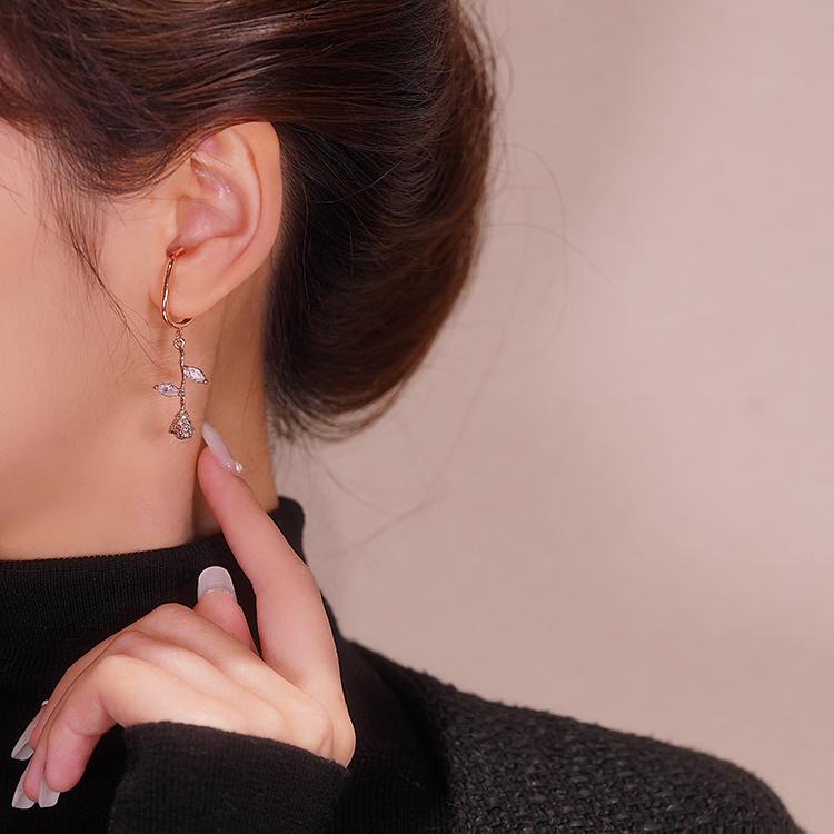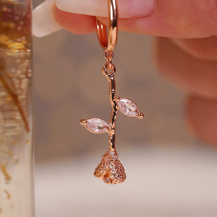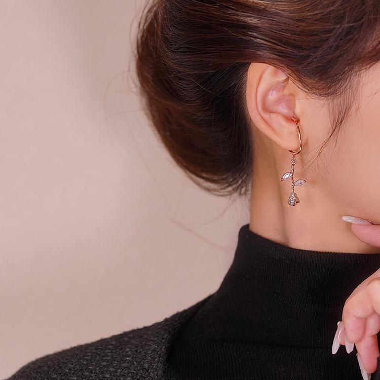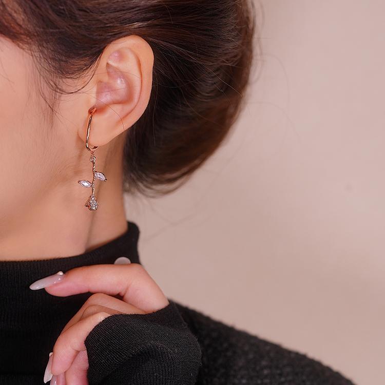 Clip para orejas de rosa larga con borlas del mismo estilo de TikTok para mujer, accesorios de lujo ligeros de alta gama, diseño de nicho, clip para orejas de hueso