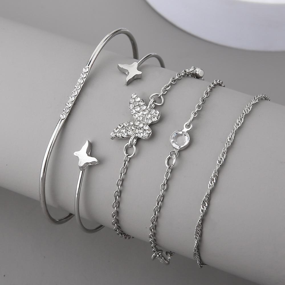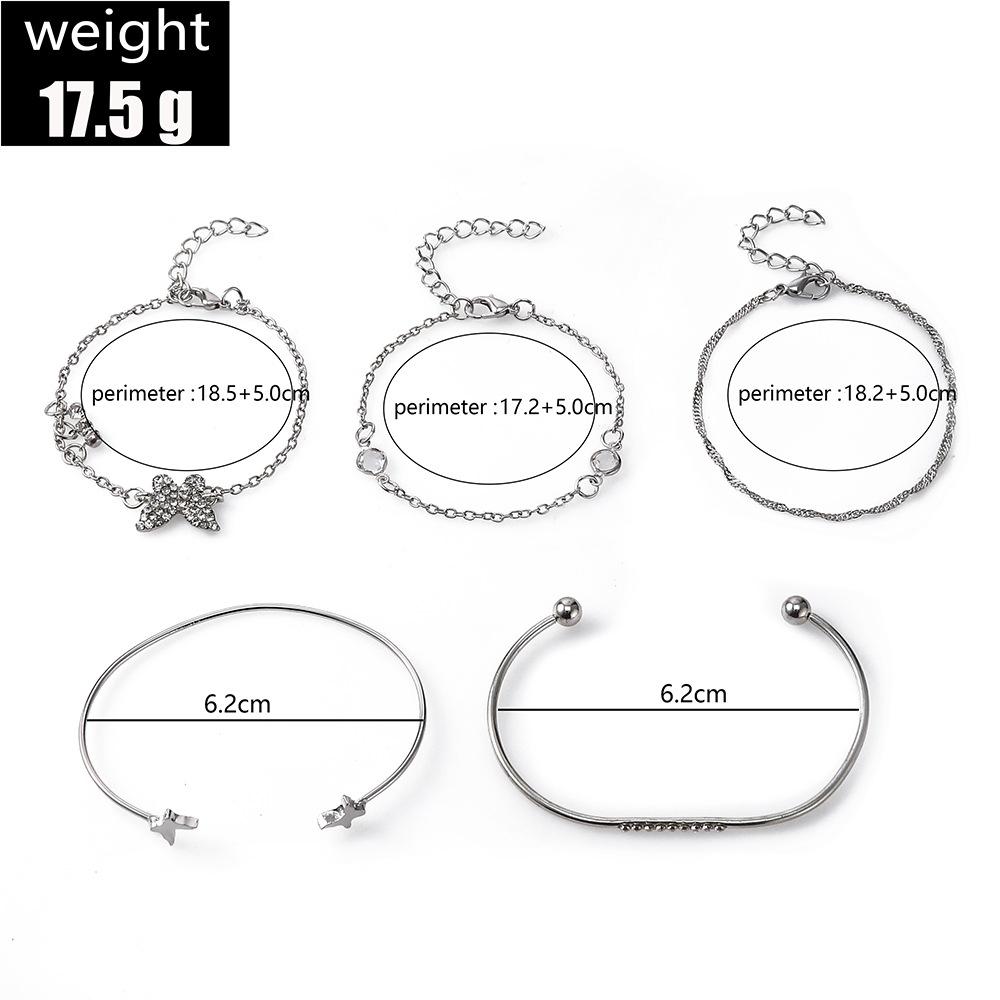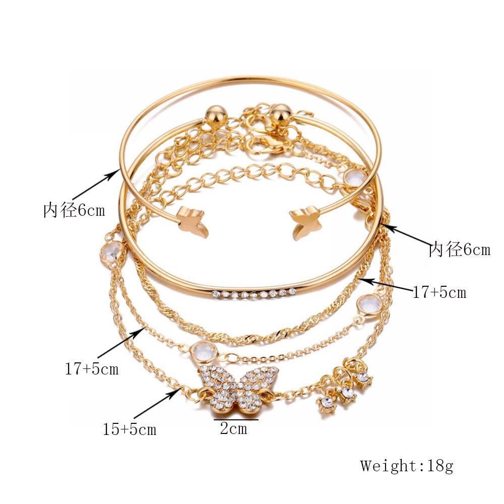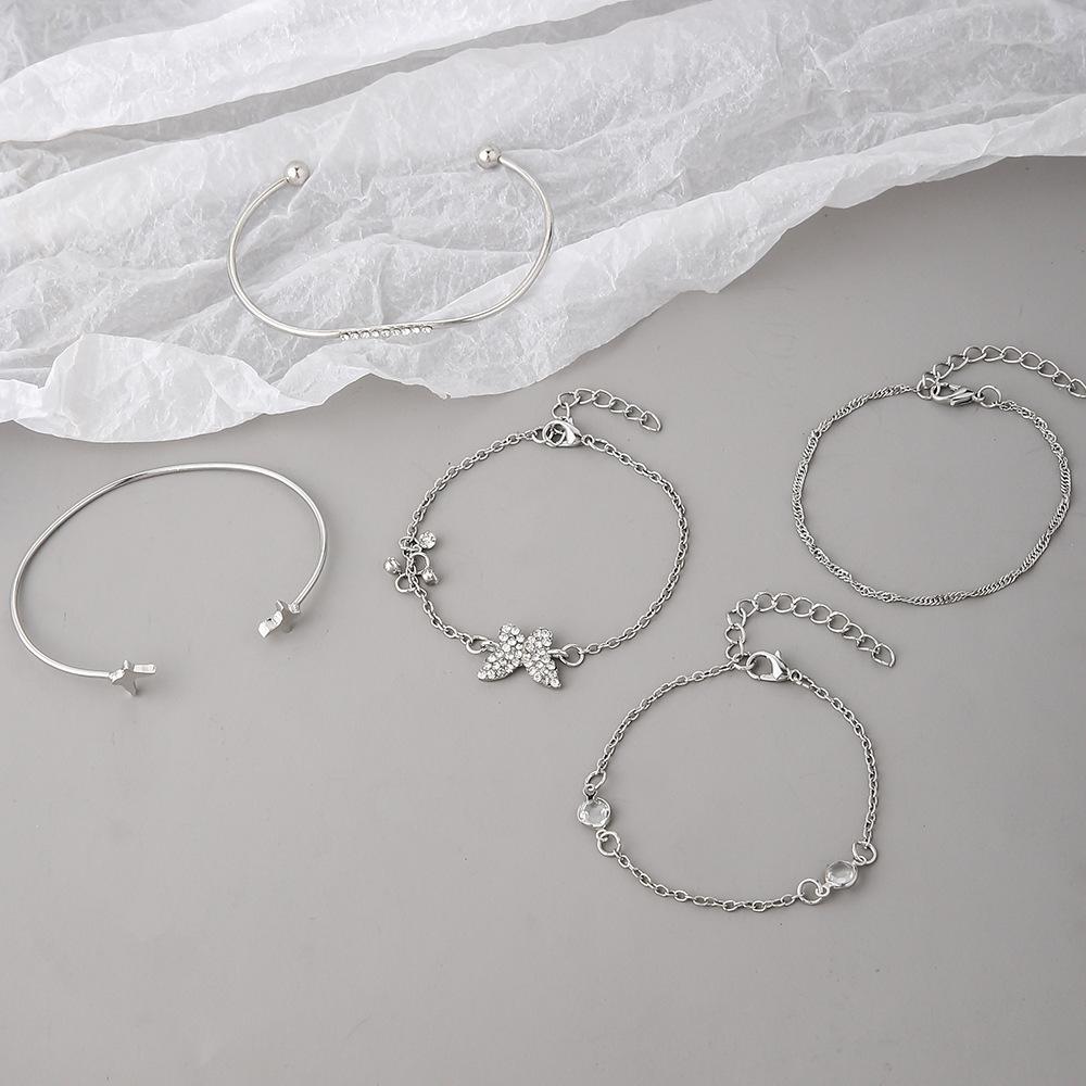 Pulsera Transfronteriza de Amazon Joyería Simple Mariposa Apertura Diamante Cristal Pulsera de 5 piezas para Mujer