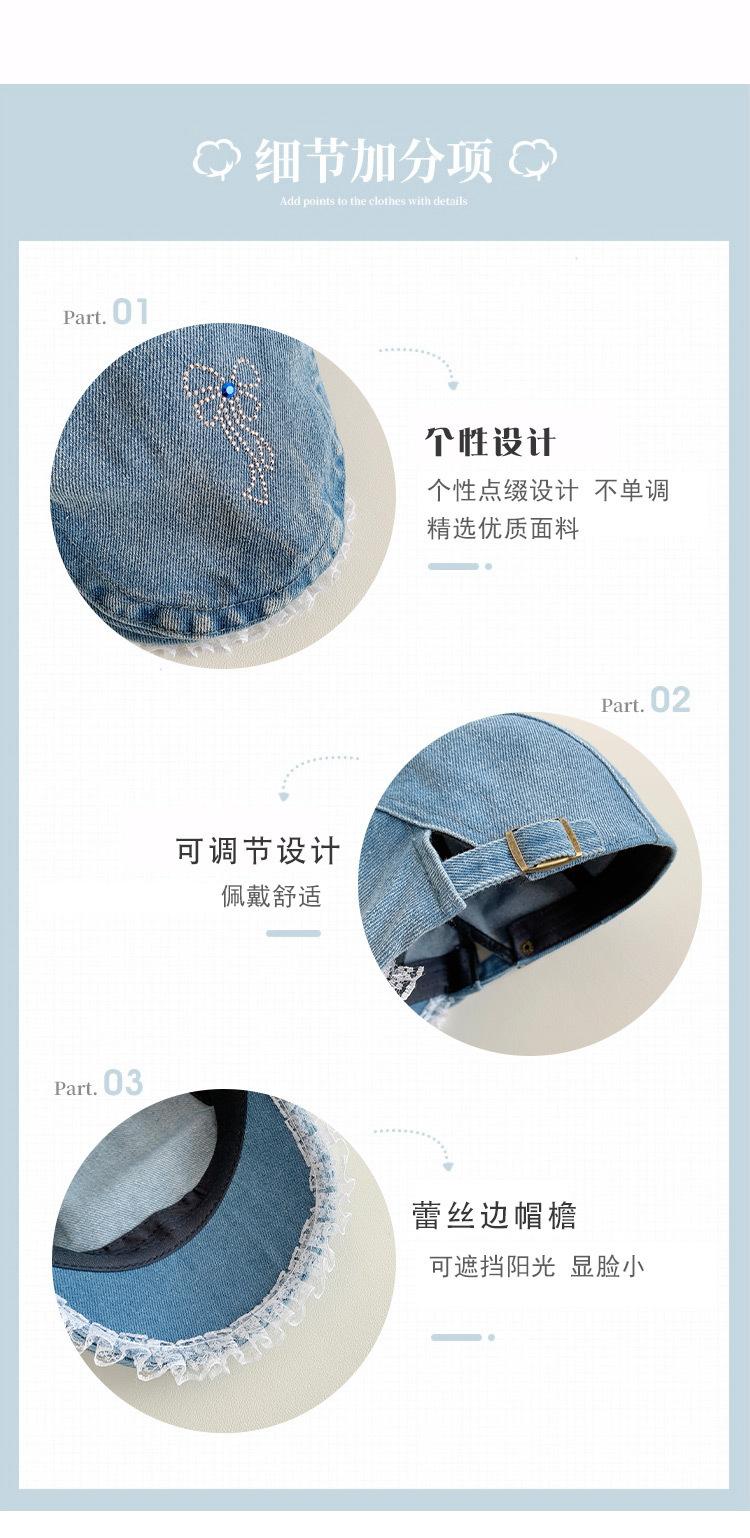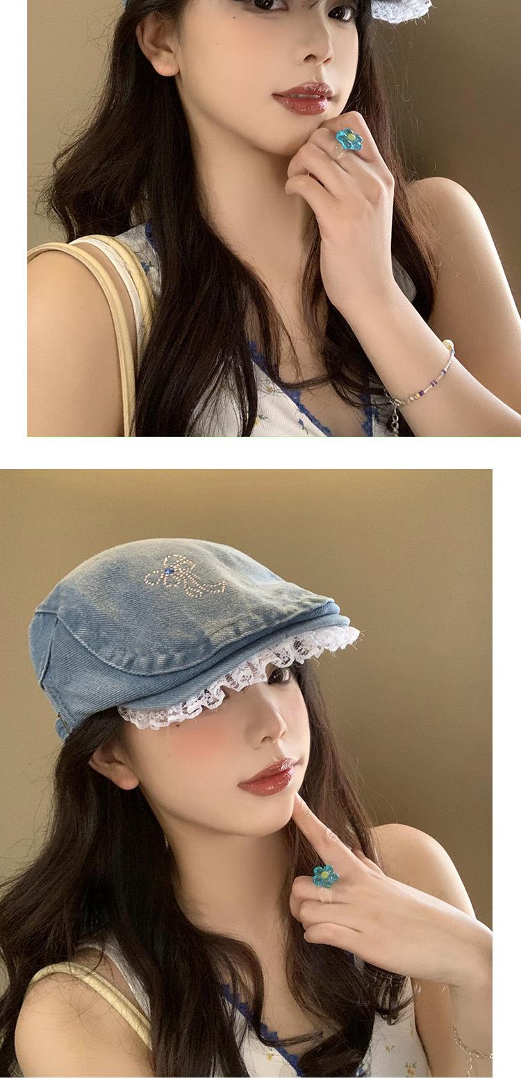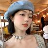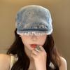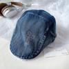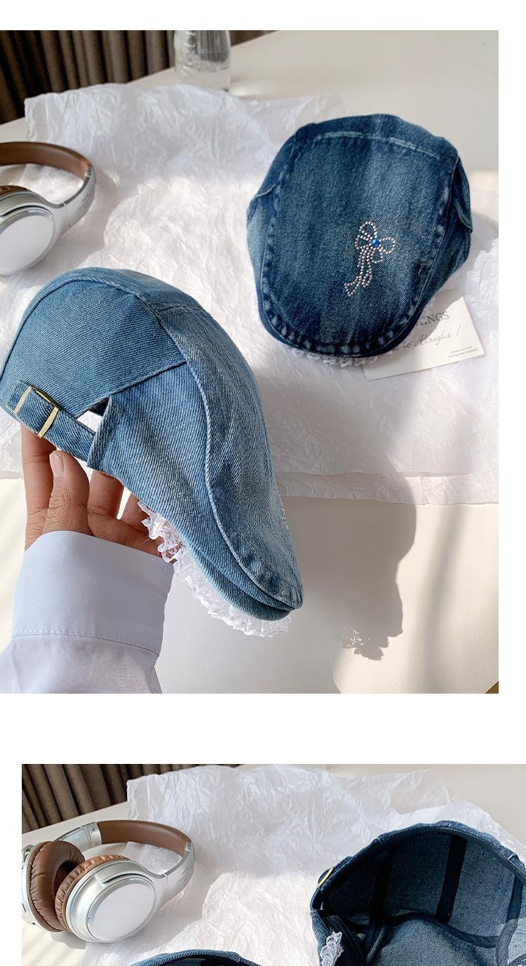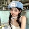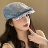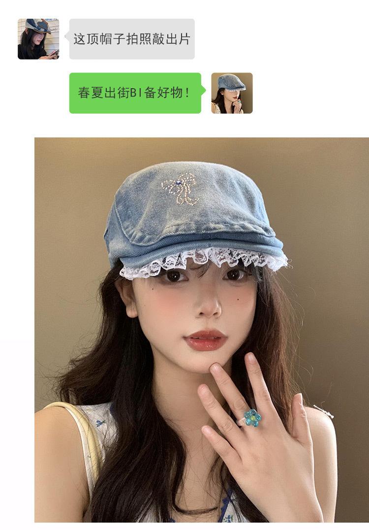 Boina de mezclilla pequeña con lazo, borde de encaje, para mujer, estilo coreano, gorra adelantada, circunferencia de cabeza grande, sombrero de pintor