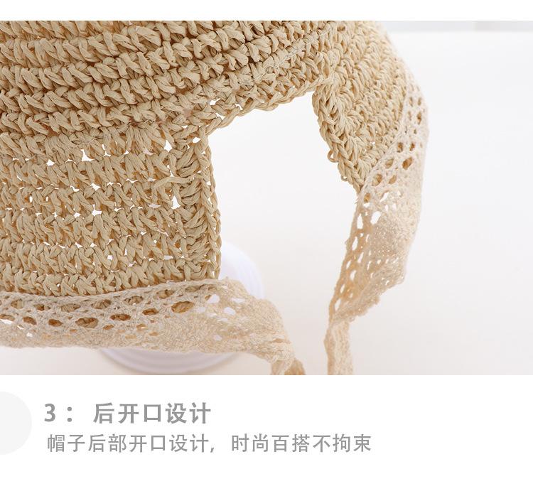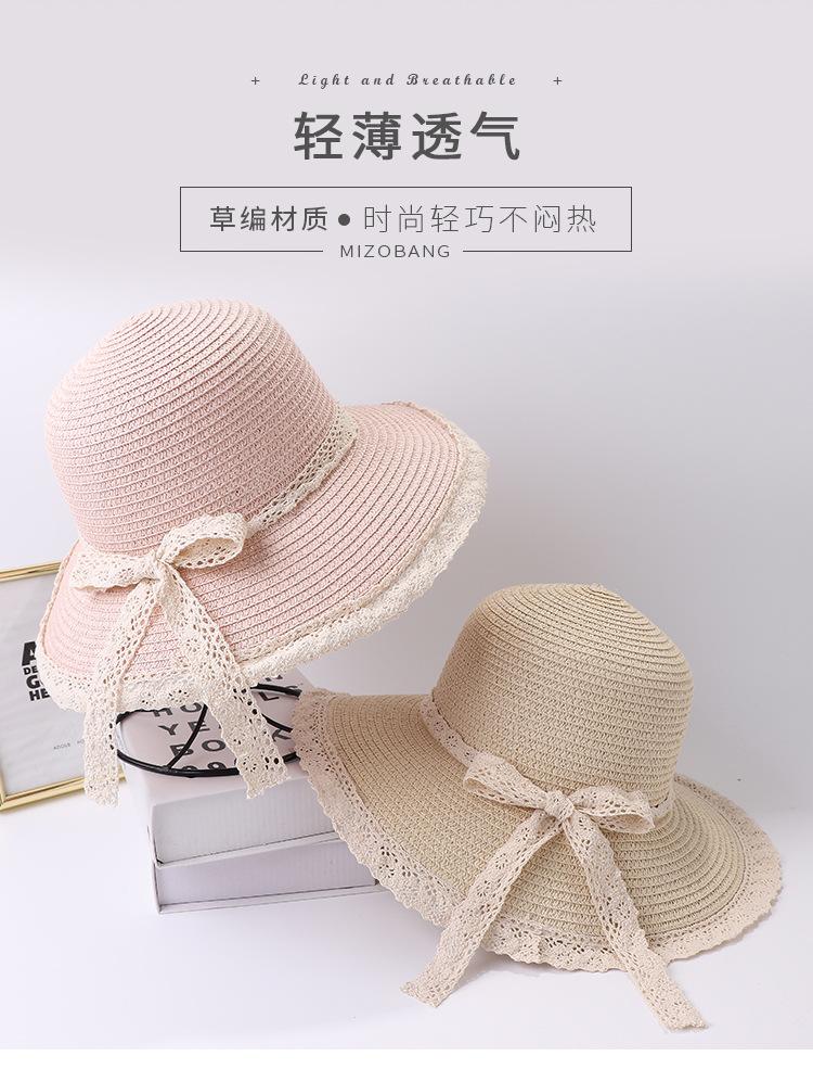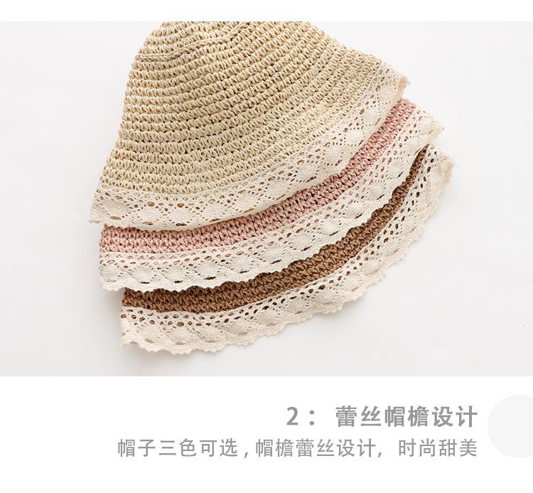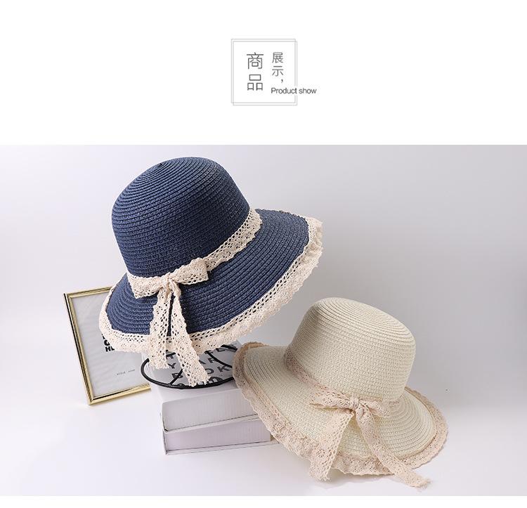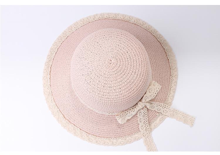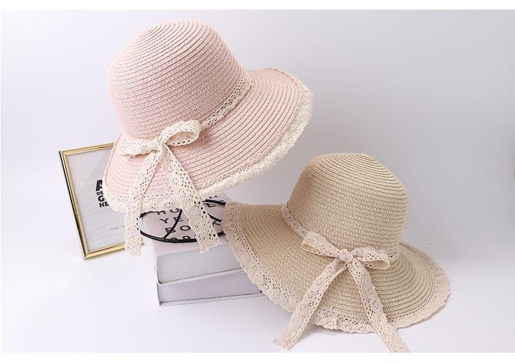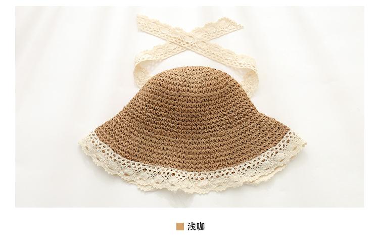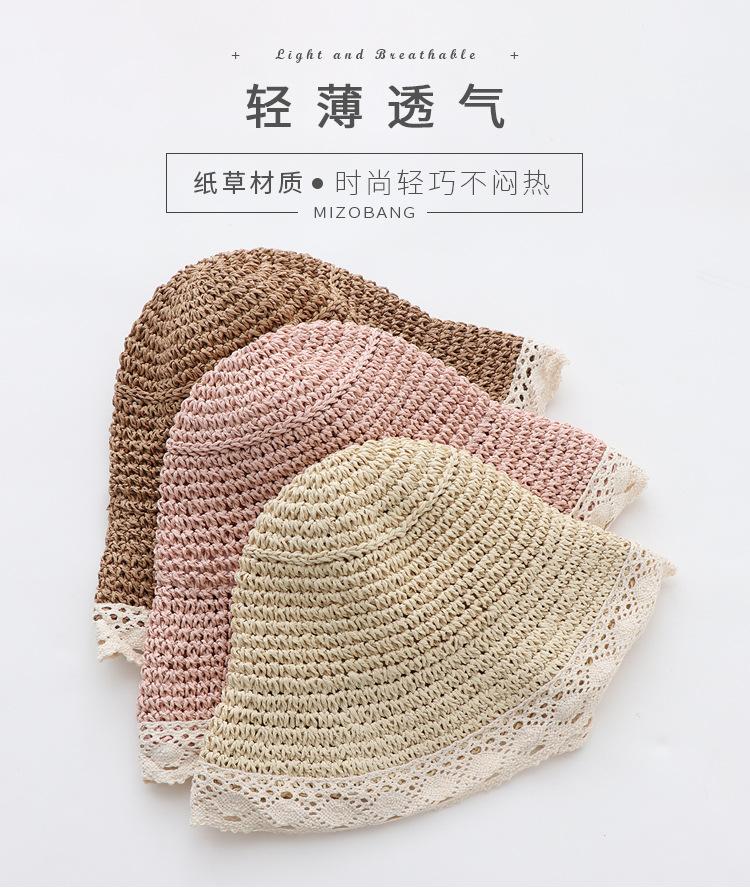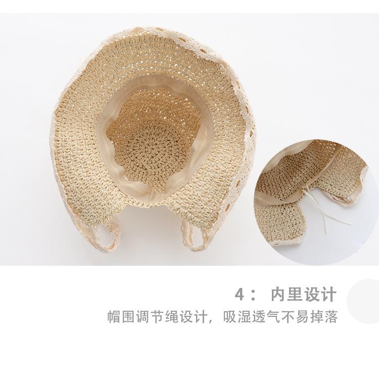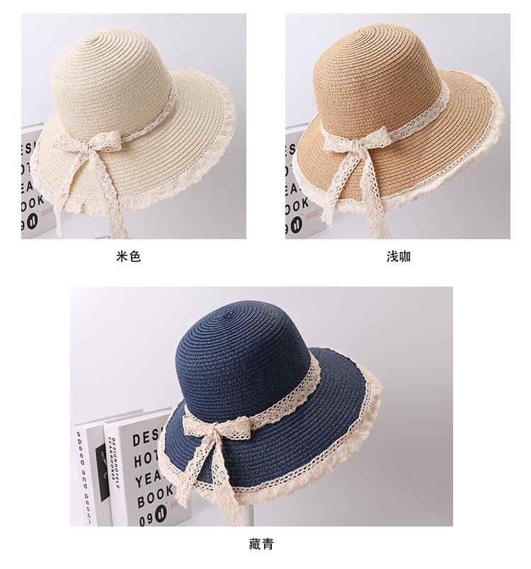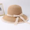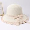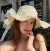 Sombrero de Sol Sombrero de Paja Plegable de Verano para Mujer Sombrero de Playa para la Orilla del Mar Estilo Coreano Encaje Lazo Sombrero de Pescador