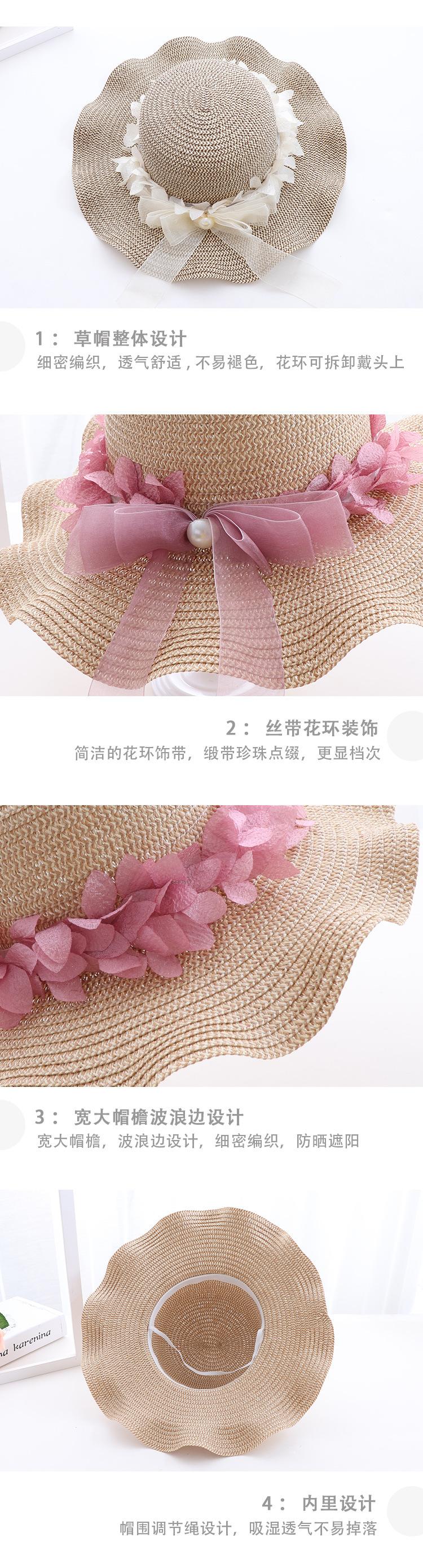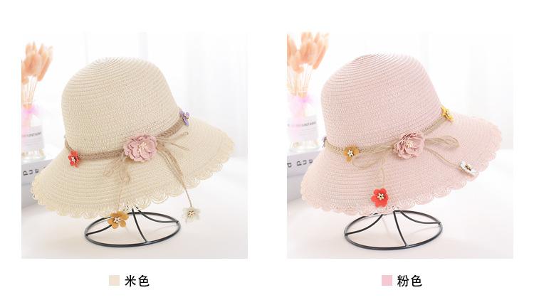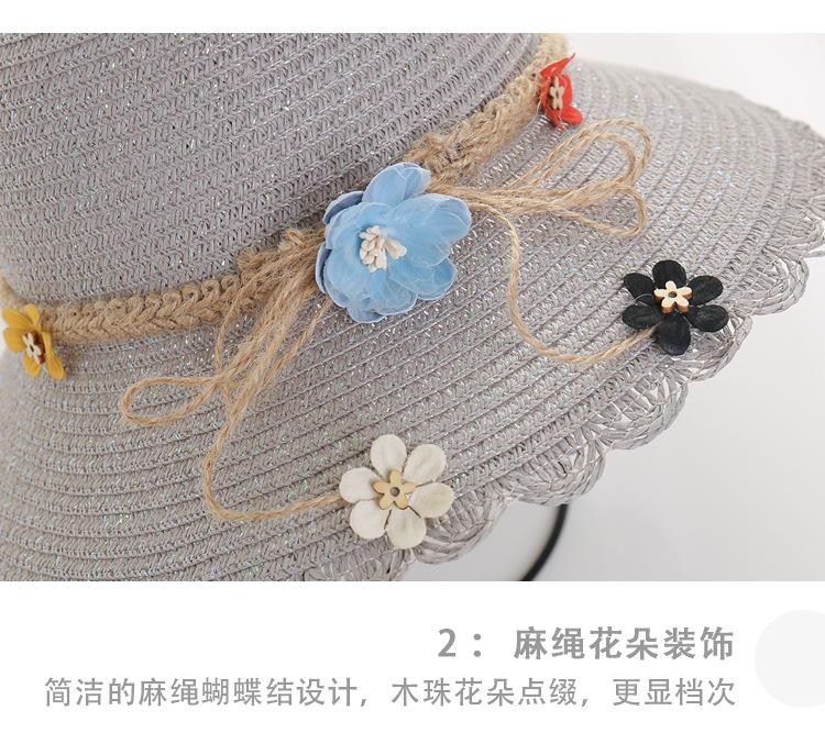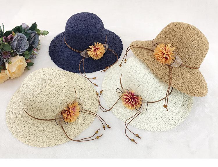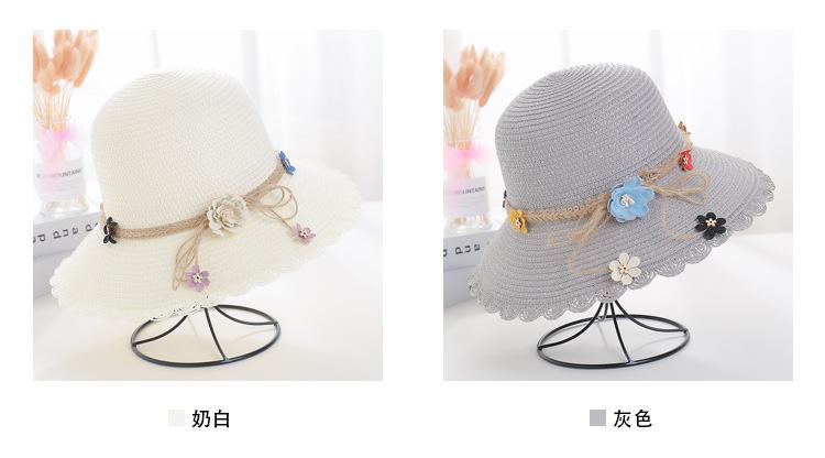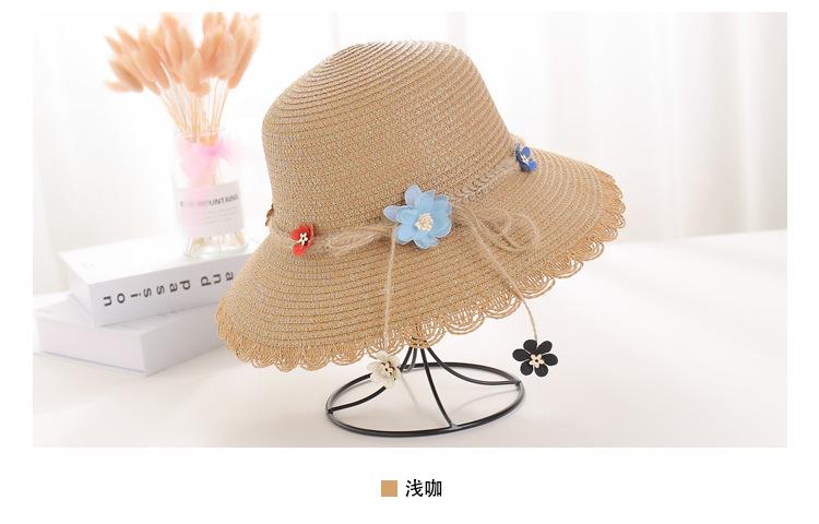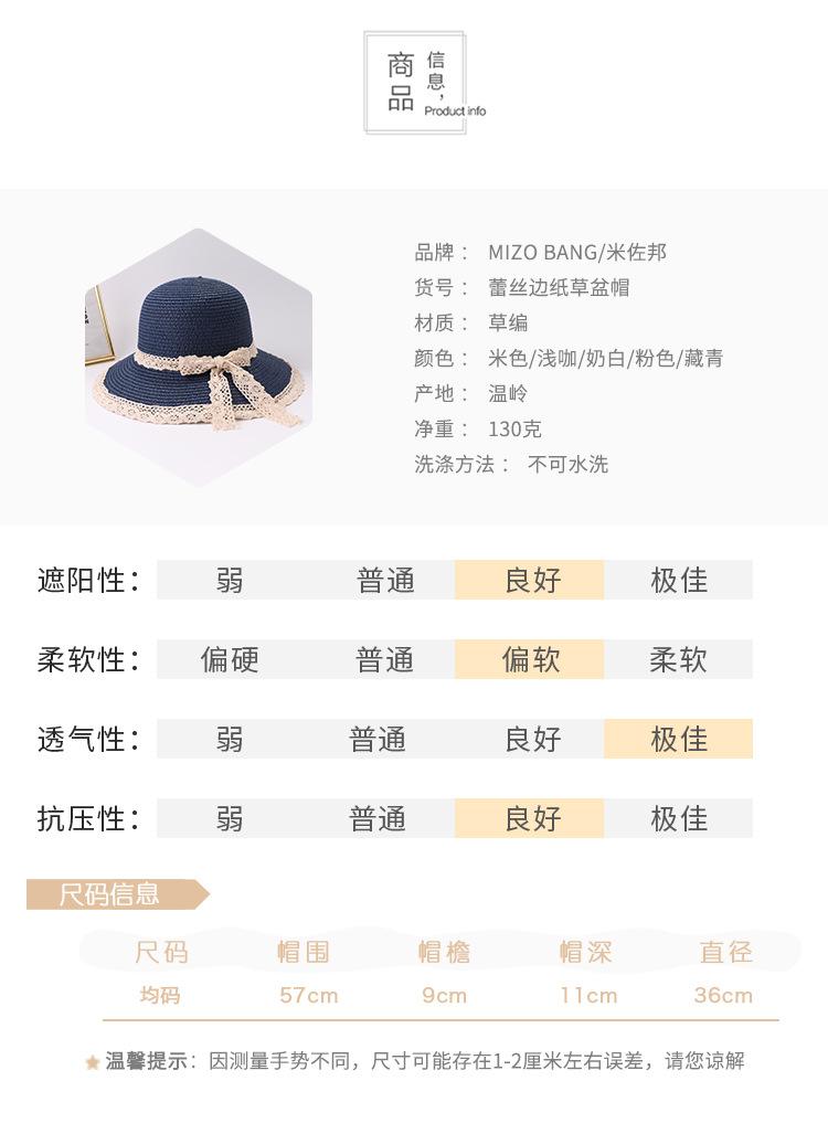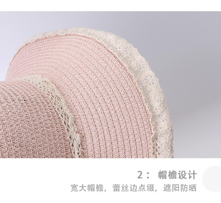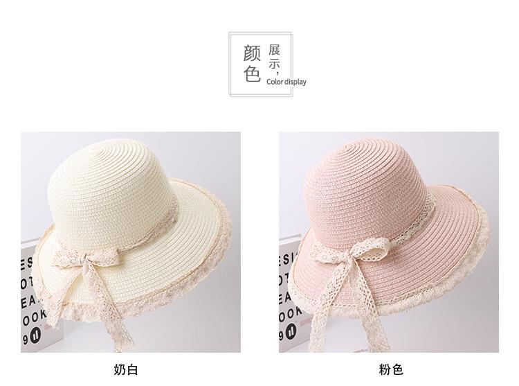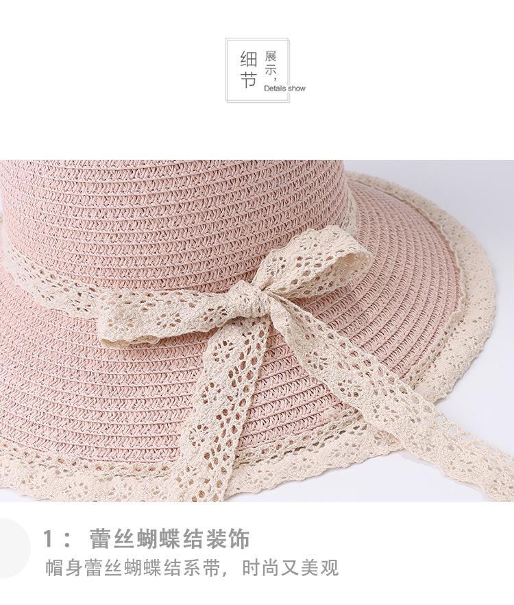 Sombrero de Sol Sombrero de Paja Plegable de Verano para Mujer Sombrero de Playa para la Orilla del Mar Estilo Coreano Encaje Lazo Sombrero de Pescador