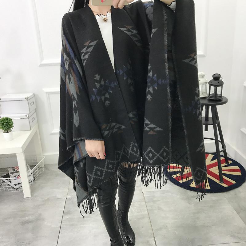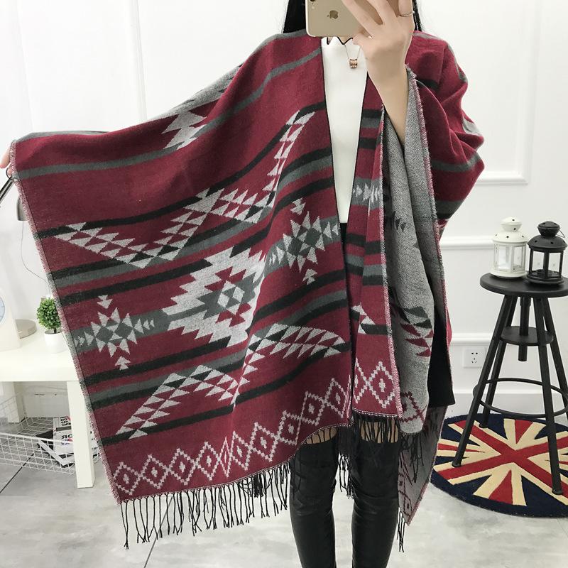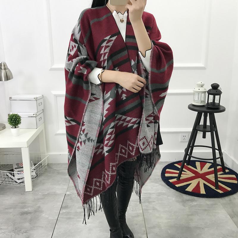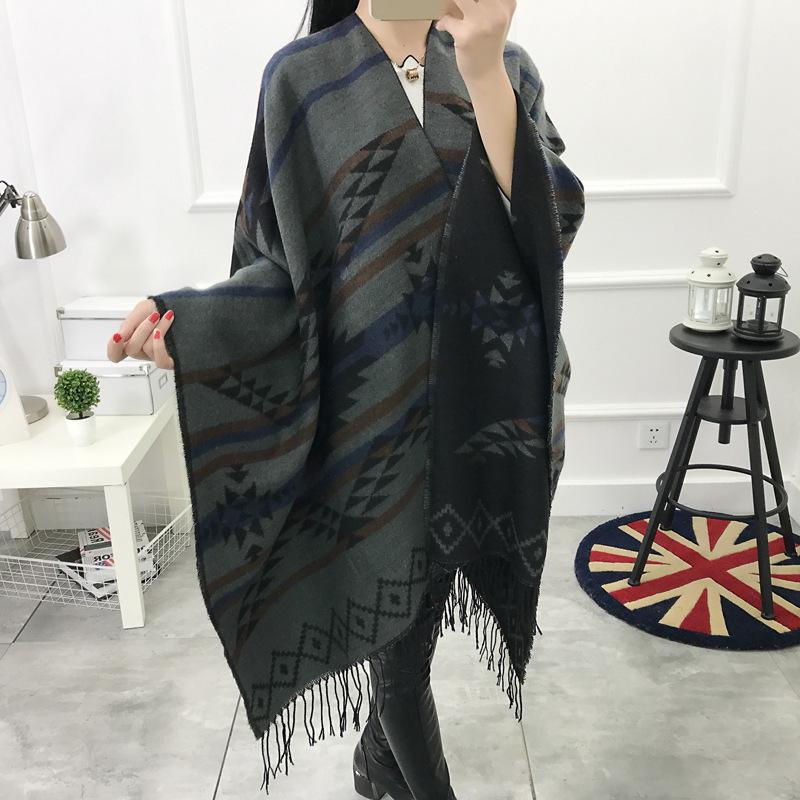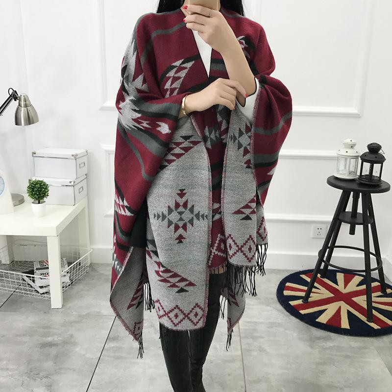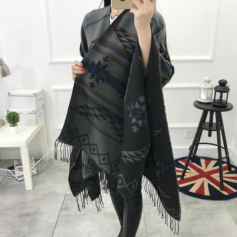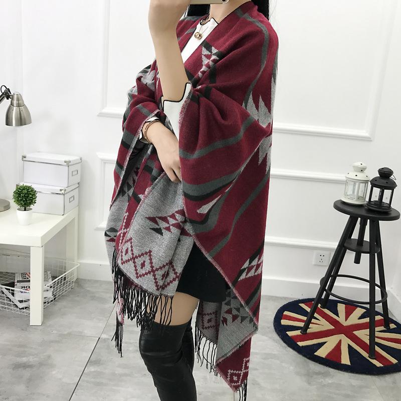 Chal grande y cálido de otoño e invierno con tejido de rombos geométricos, chal dividido, chal cálido para viajes callejeros europeos y americanos.