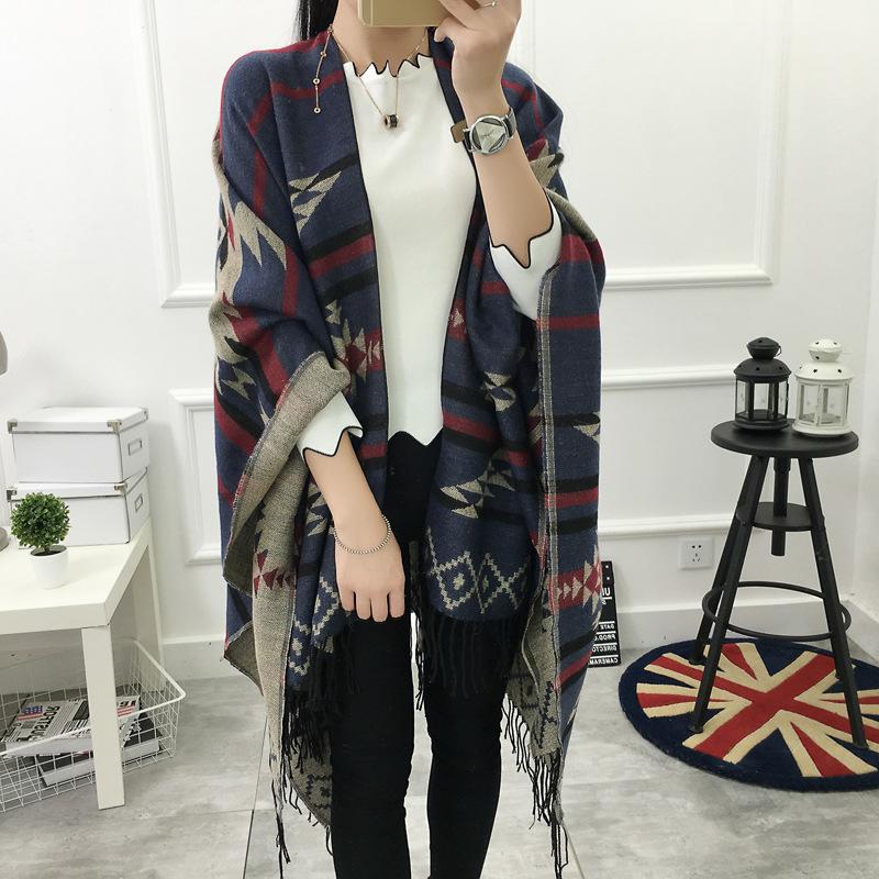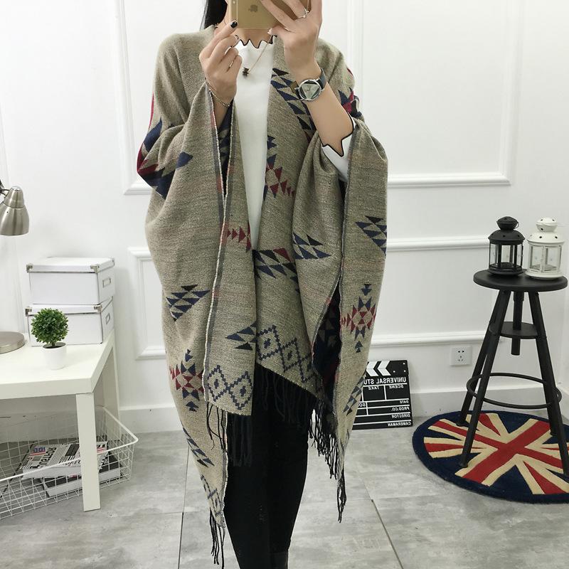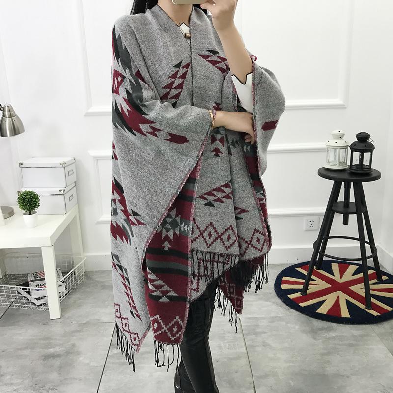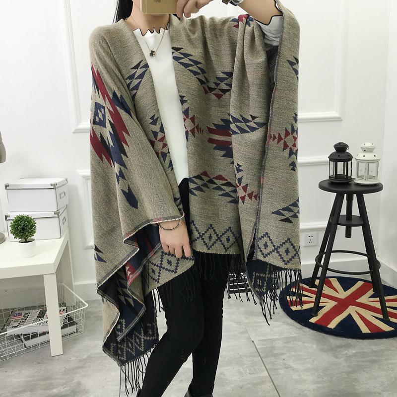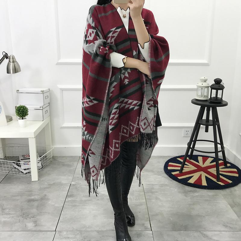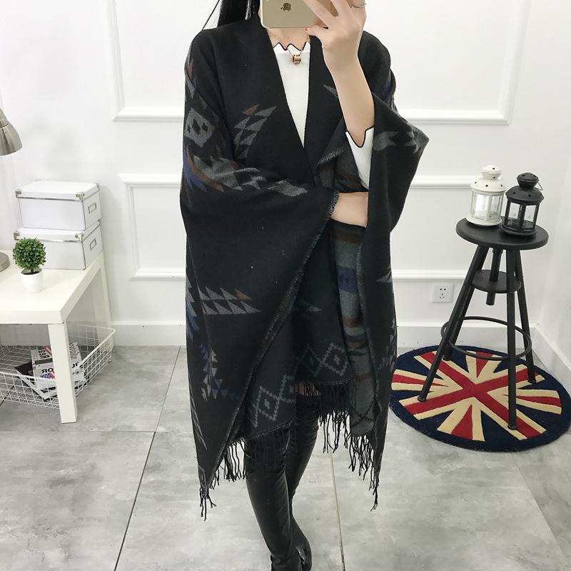 Chal grande y cálido de otoño e invierno con tejido de rombos geométricos, chal dividido, chal cálido para viajes callejeros europeos y americanos.