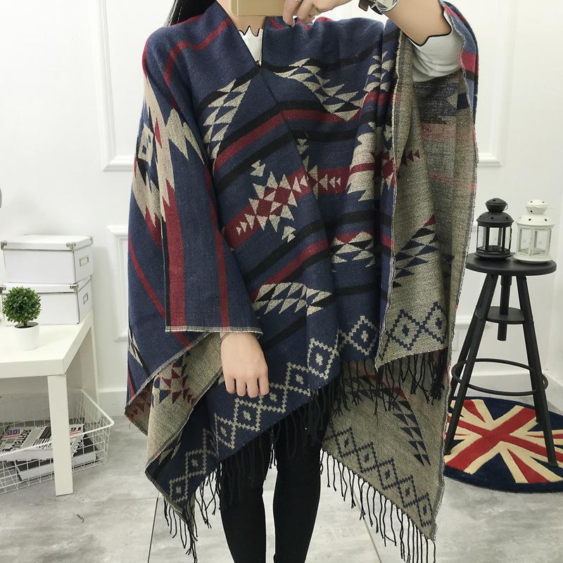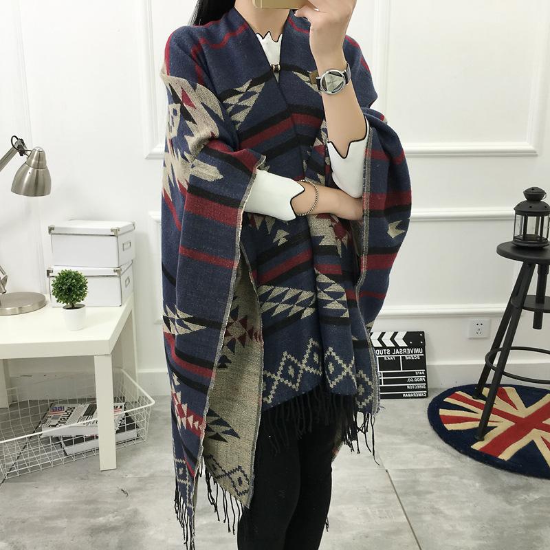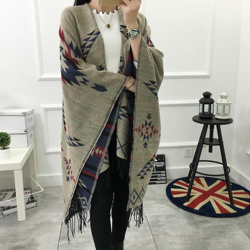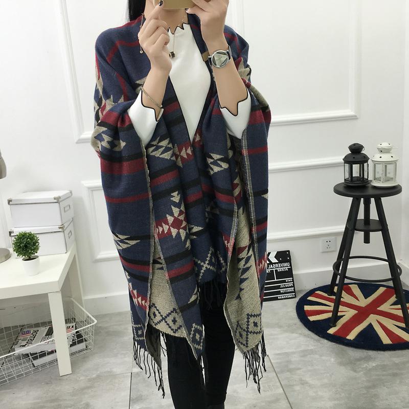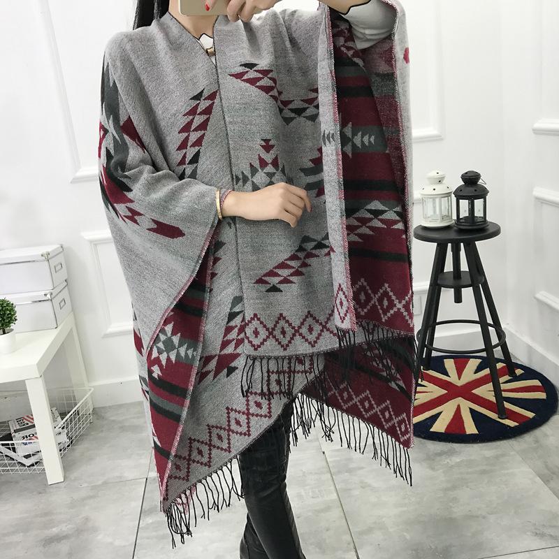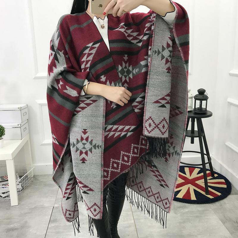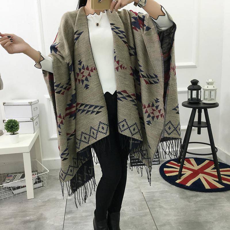 Chal grande y cálido de otoño e invierno con tejido de rombos geométricos, chal dividido, chal cálido para viajes callejeros europeos y americanos.